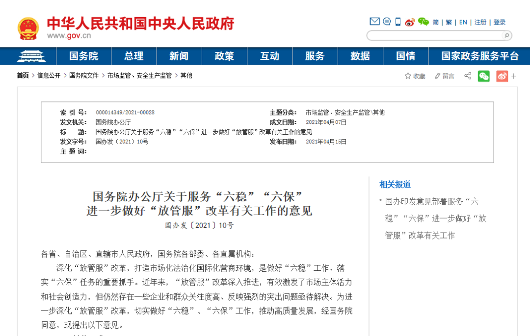 國務(wù)院辦公廳關(guān)于服務(wù)“六穩(wěn)”“六?!?/span>