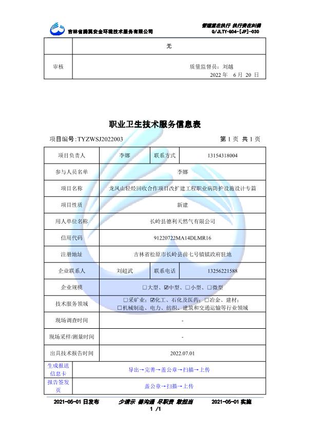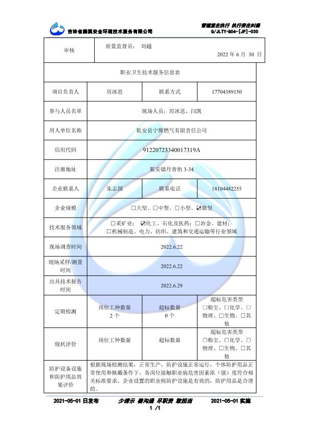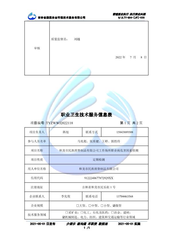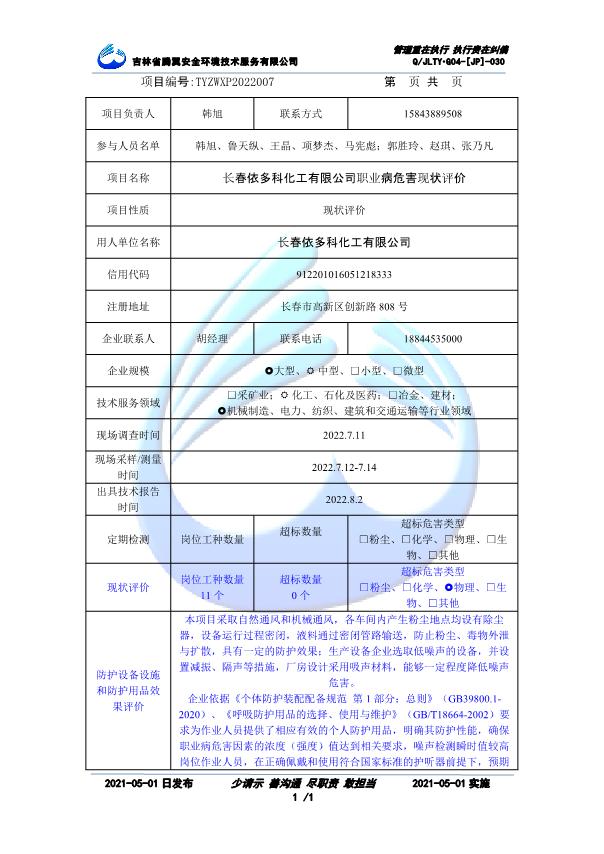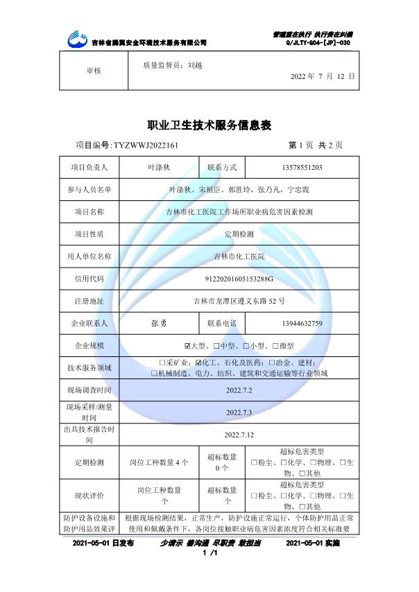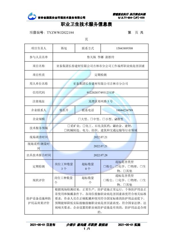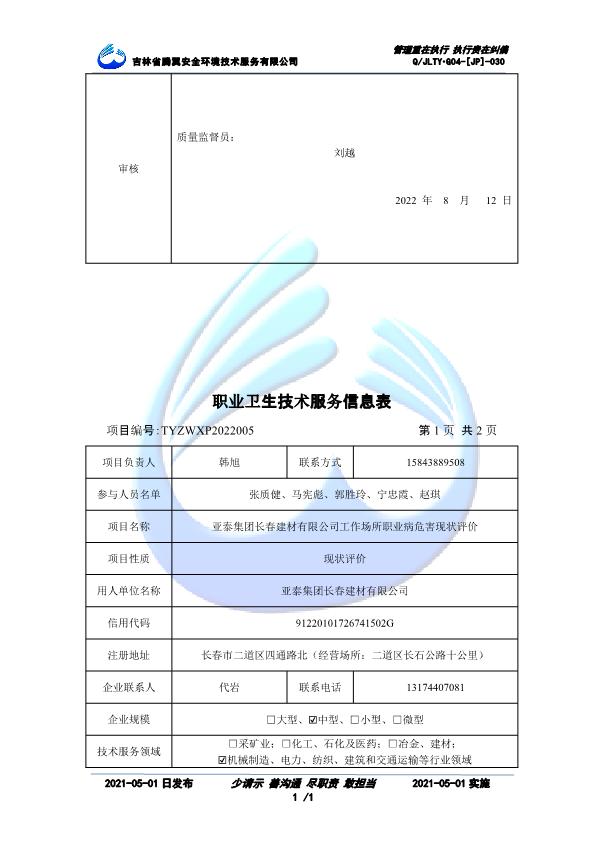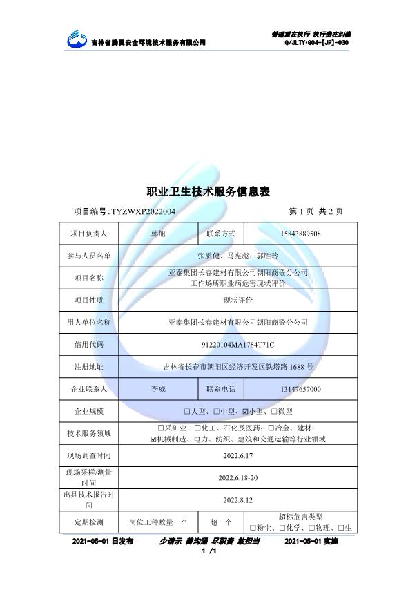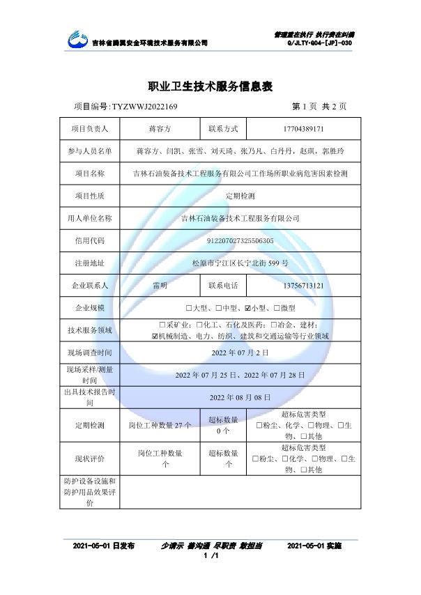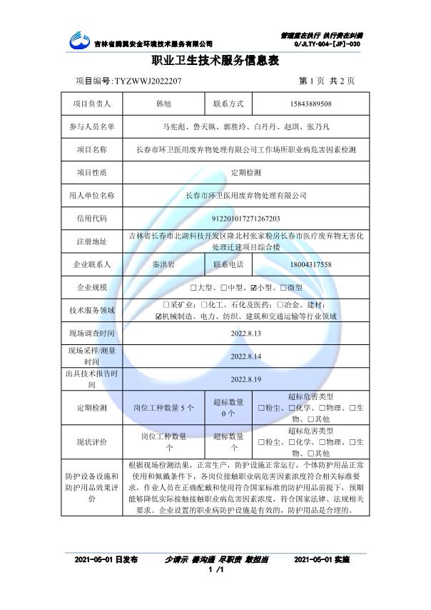 吉林省騰翼安全環(huán)境技術(shù)服務(wù)有限公司于2007年10月30日在松原市注冊(cè)成立,現(xiàn)總部位于長(zhǎng)春北湖科技園,2008年6月3日取得安全評(píng)價(jià)機(jī)構(gòu)乙級(jí)資質(zhì),2017年1月5日取得職業(yè)衛(wèi)生技術(shù)服務(wù)機(jī)構(gòu)乙級(jí)資質(zhì),自相繼獲取安評(píng)和職評(píng)資質(zhì)至2020年間,公司以打造“中國(guó)首屈一指的安全生產(chǎn)、職業(yè)健康、生態(tài)環(huán)保一站式綜合服務(wù)體”為發(fā)展目標(biāo)。目前,公司可為各類委托方提供安全與職業(yè)衛(wèi)生評(píng)價(jià),職業(yè)衛(wèi)生與...