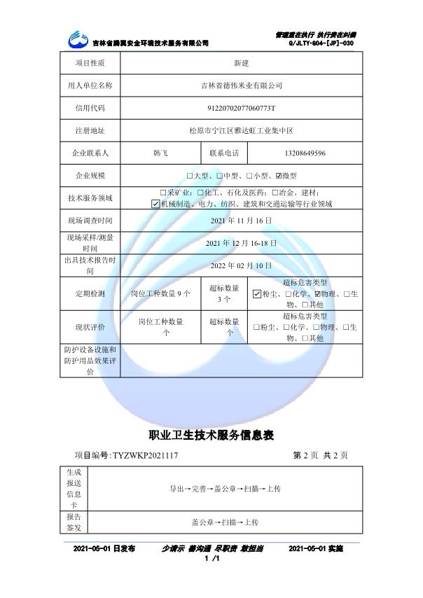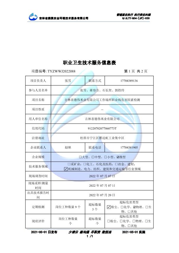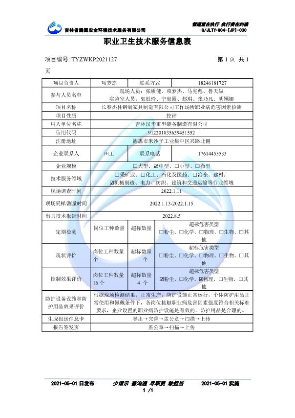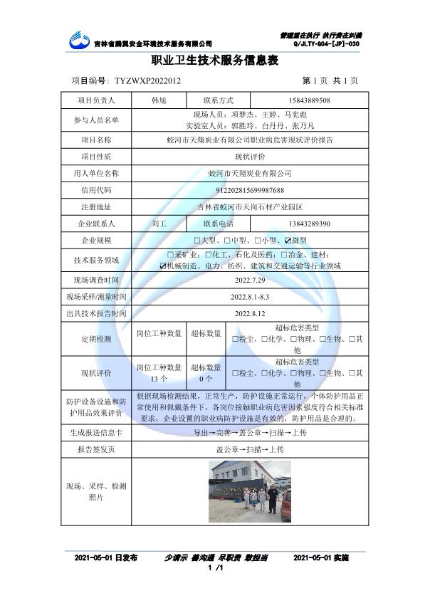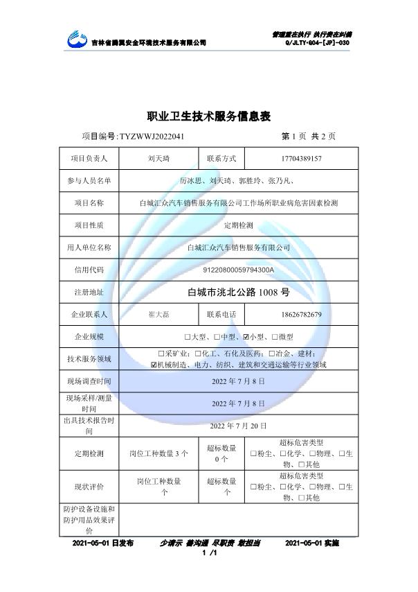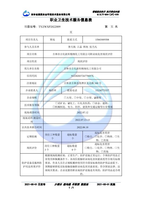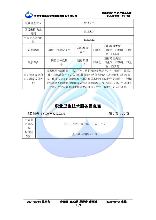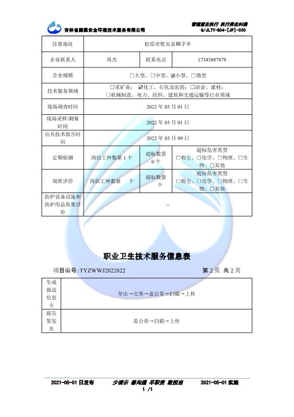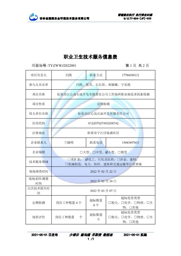 吉林省騰翼安全環(huán)境技術(shù)服務(wù)有限公司于2007年10月30日在松原市注冊(cè)成立,現(xiàn)總部位于長(zhǎng)春北湖科技園,2008年6月3日取得安全評(píng)價(jià)機(jī)構(gòu)乙級(jí)資質(zhì),2017年1月5日取得職業(yè)衛(wèi)生技術(shù)服務(wù)機(jī)構(gòu)乙級(jí)資質(zhì),自相繼獲取安評(píng)和職評(píng)資質(zhì)至2020年間,公司以打造“中國(guó)首屈一指的安全生產(chǎn)、職業(yè)健康、生態(tài)環(huán)保一站式綜合服務(wù)體”為發(fā)展目標(biāo)。目前,公司可為各類委托方提供安全與職業(yè)衛(wèi)生評(píng)價(jià),職業(yè)衛(wèi)生與...