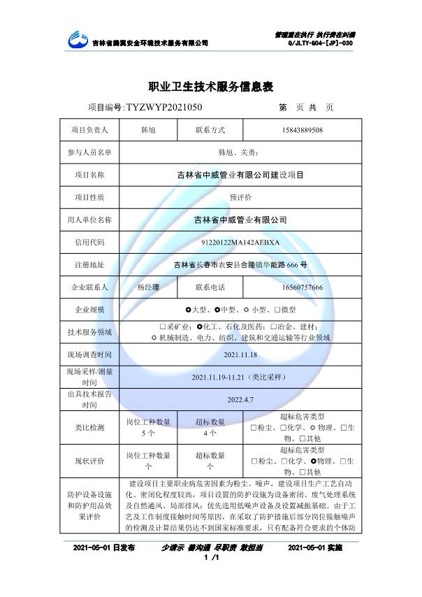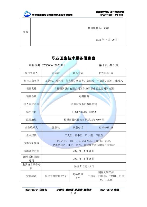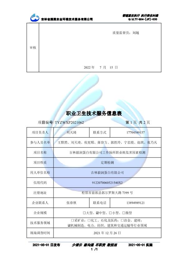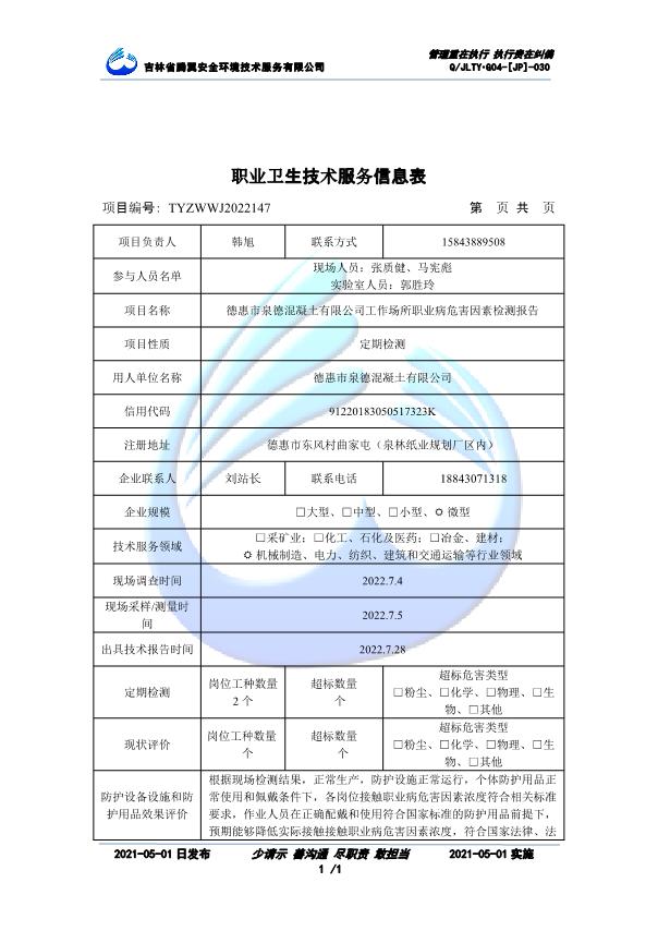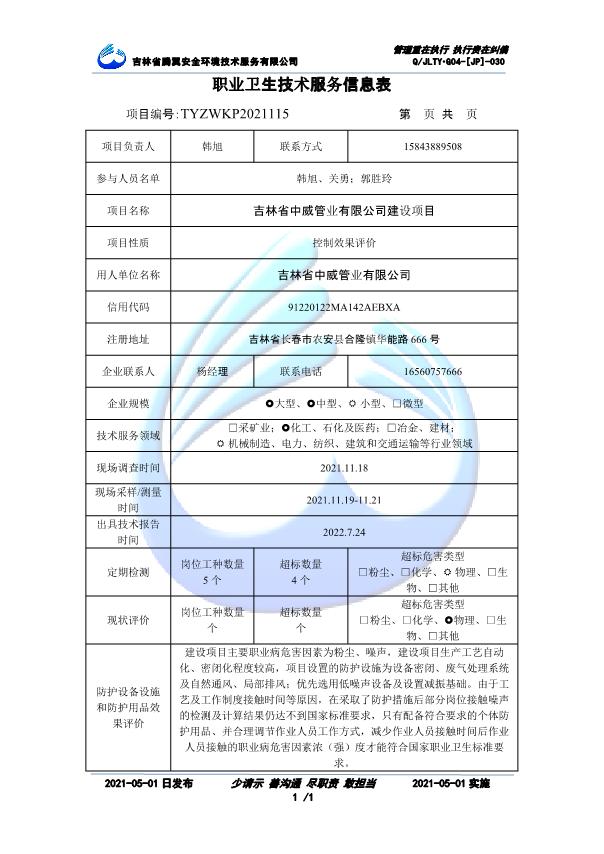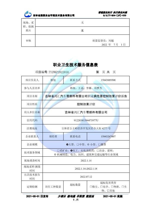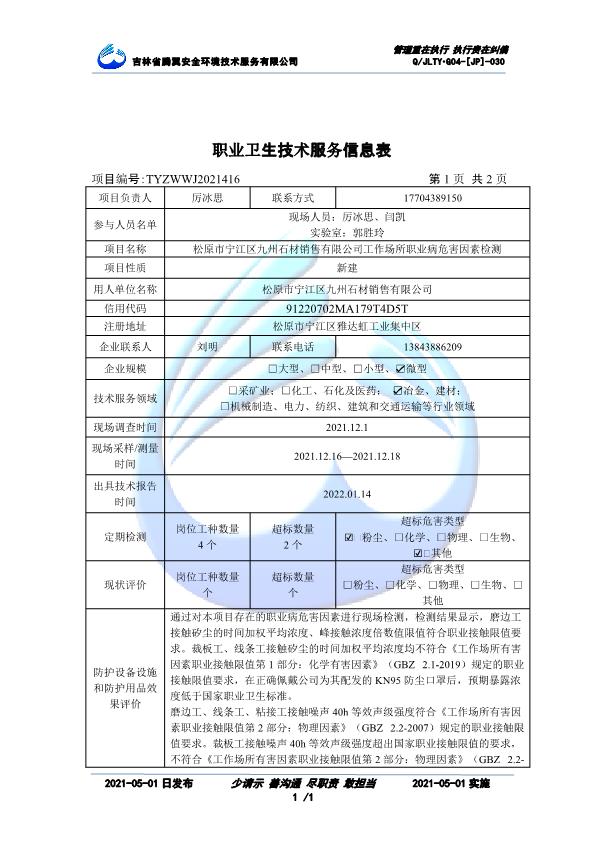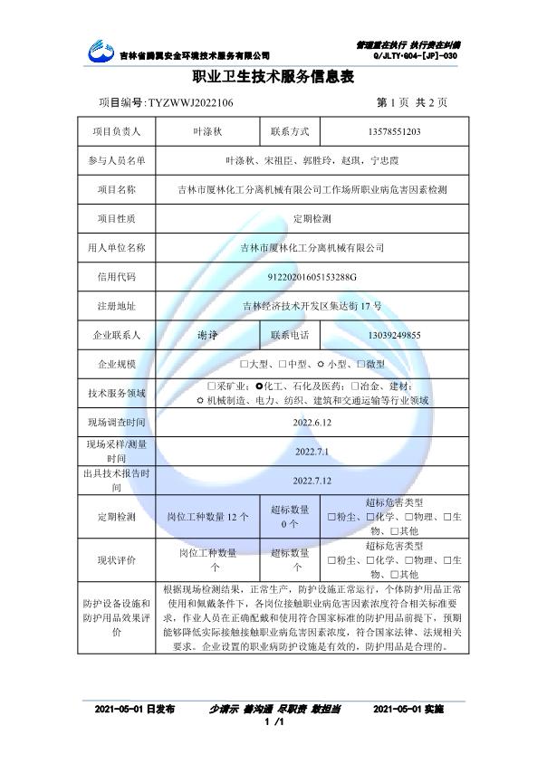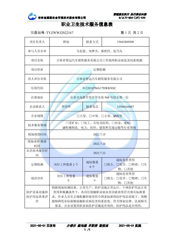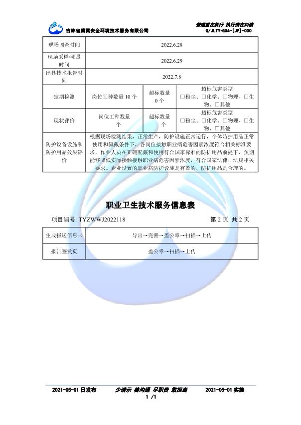吉林省騰翼安全環(huán)境技術(shù)服務(wù)有限公司于2007年10月30日在松原市注冊(cè)成立,現(xiàn)總部位于長(zhǎng)春北湖科技園,2008年6月3日取得安全評(píng)價(jià)機(jī)構(gòu)乙級(jí)資質(zhì),2017年1月5日取得職業(yè)衛(wèi)生技術(shù)服務(wù)機(jī)構(gòu)乙級(jí)資質(zhì),自相繼獲取安評(píng)和職評(píng)資質(zhì)至2020年間,公司以打造“中國(guó)首屈一指的安全生產(chǎn)、職業(yè)健康、生態(tài)環(huán)保一站式綜合服務(wù)體”為發(fā)展目標(biāo)。目前,公司可為各類委托方提供安全與職業(yè)衛(wèi)生評(píng)價(jià),職業(yè)衛(wèi)生與...