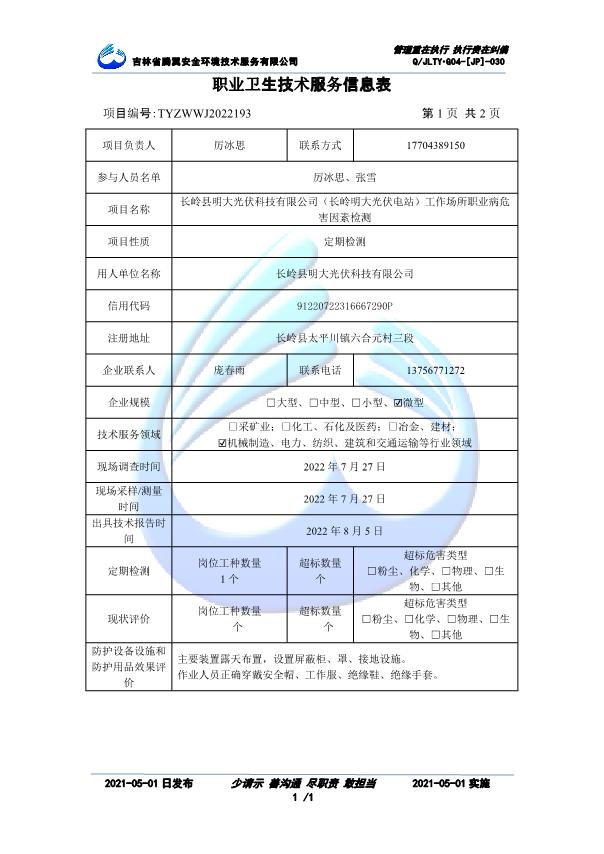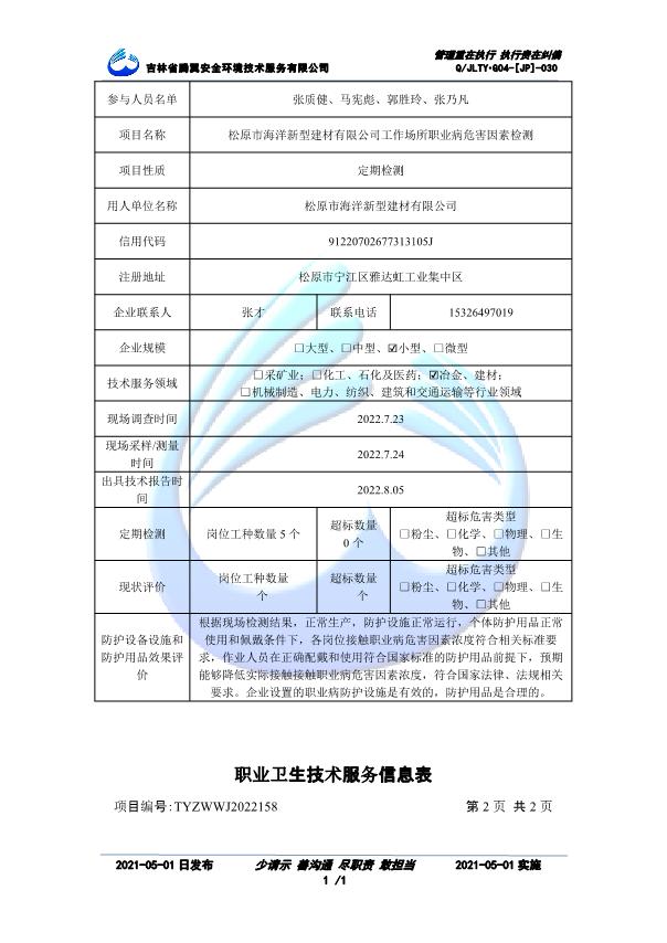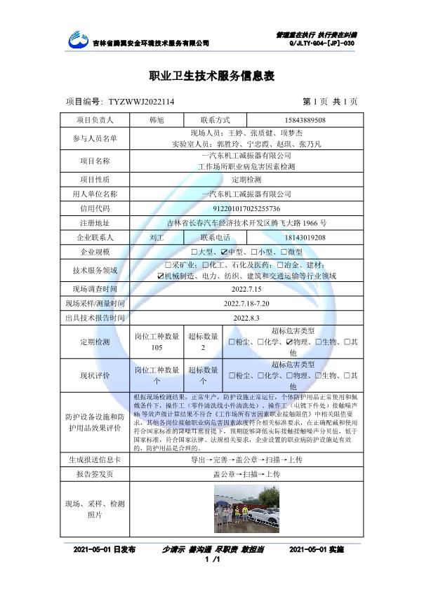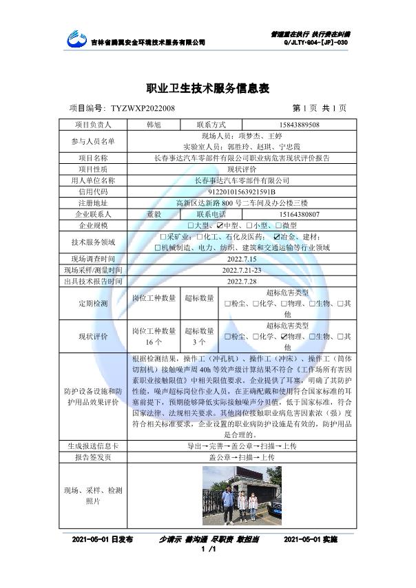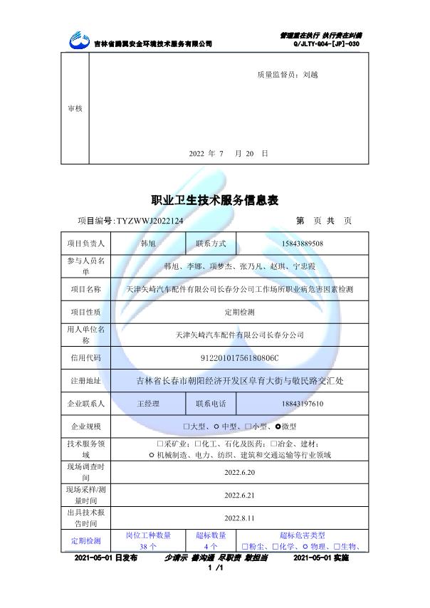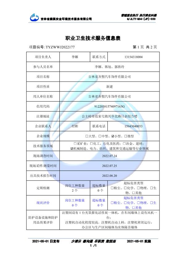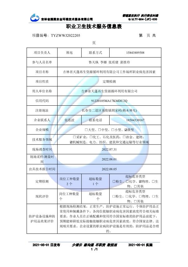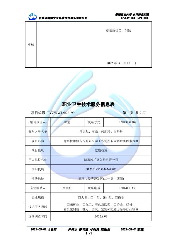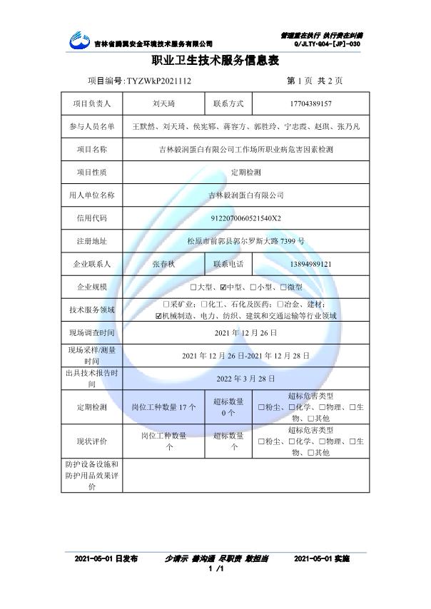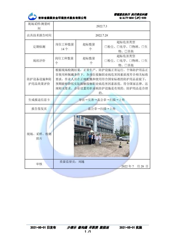 吉林省騰翼安全環(huán)境技術(shù)服務(wù)有限公司于2007年10月30日在松原市注冊(cè)成立,現(xiàn)總部位于長(zhǎng)春北湖科技園,2008年6月3日取得安全評(píng)價(jià)機(jī)構(gòu)乙級(jí)資質(zhì),2017年1月5日取得職業(yè)衛(wèi)生技術(shù)服務(wù)機(jī)構(gòu)乙級(jí)資質(zhì),自相繼獲取安評(píng)和職評(píng)資質(zhì)至2020年間,公司以打造“中國(guó)首屈一指的安全生產(chǎn)、職業(yè)健康、生態(tài)環(huán)保一站式綜合服務(wù)體”為發(fā)展目標(biāo)。目前,公司可為各類委托方提供安全與職業(yè)衛(wèi)生評(píng)價(jià),職業(yè)衛(wèi)生與...