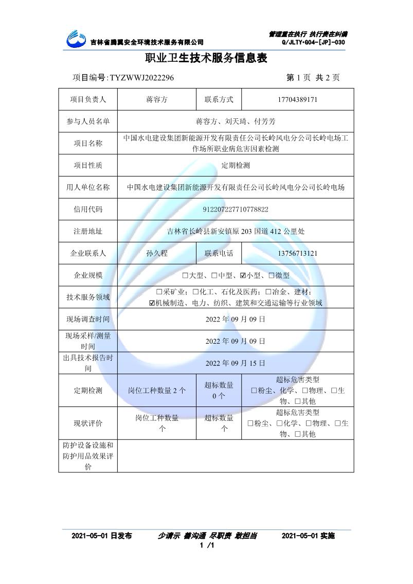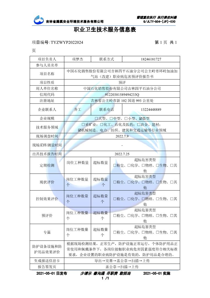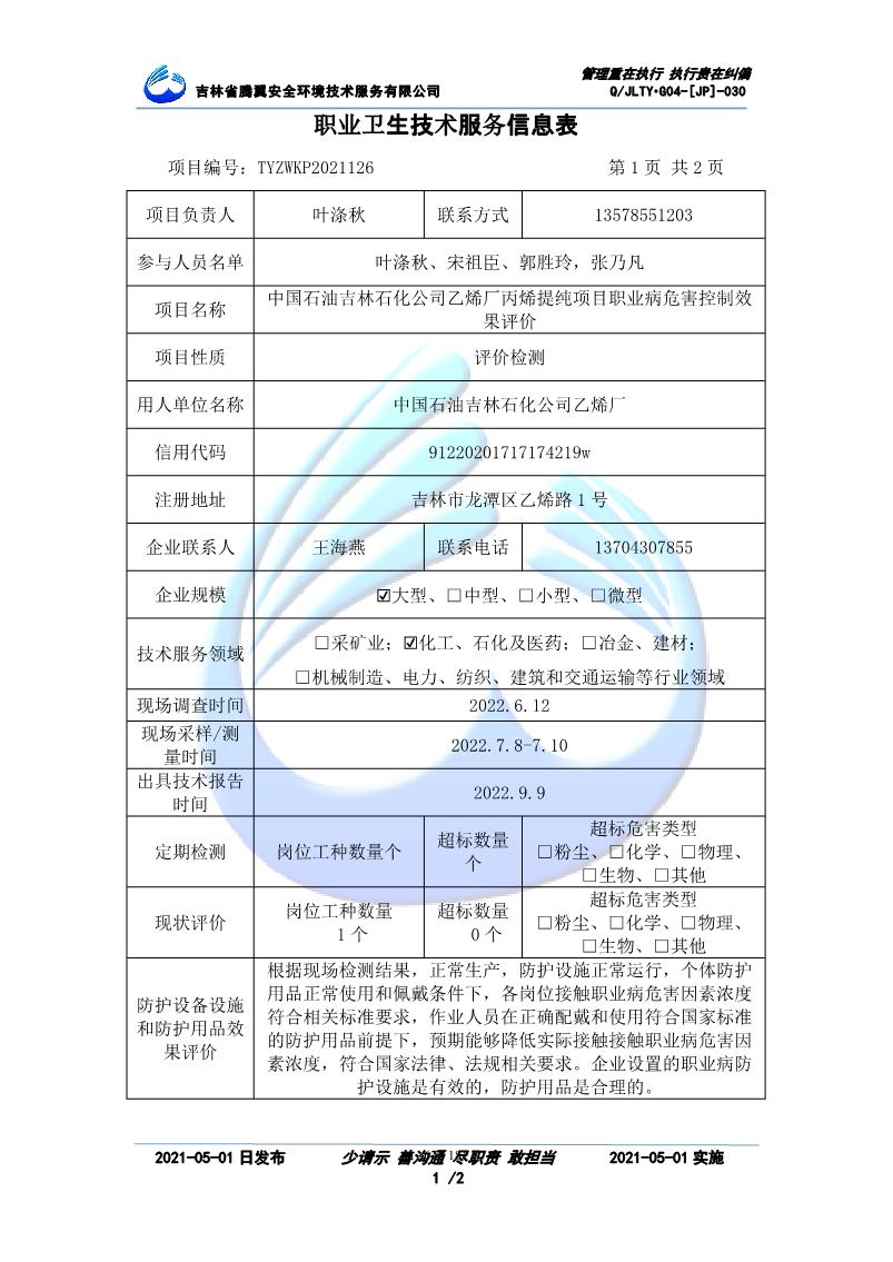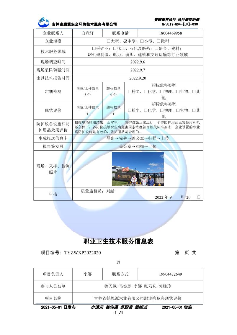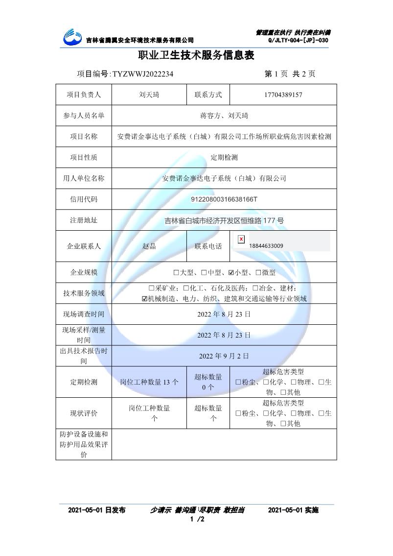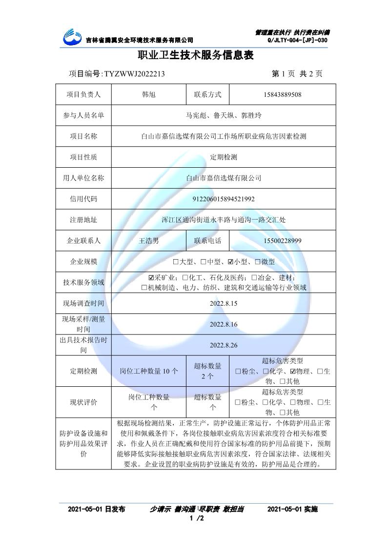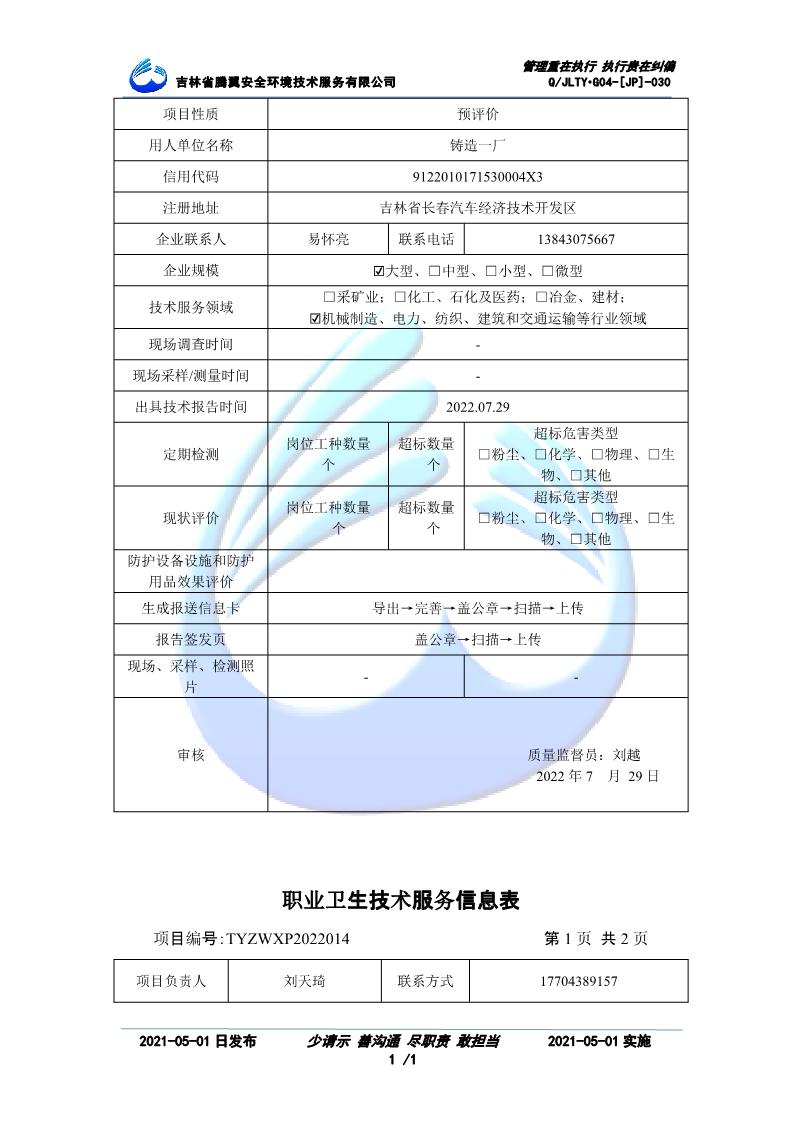 吉林省騰翼安全環(huán)境技術(shù)服務(wù)有限公司于2007年10月30日在松原市注冊(cè)成立,現(xiàn)總部位于長春北湖科技園,2008年6月3日取得安全評(píng)價(jià)機(jī)構(gòu)乙級(jí)資質(zhì),2017年1月5日取得職業(yè)衛(wèi)生技術(shù)服務(wù)機(jī)構(gòu)乙級(jí)資質(zhì),自相繼獲取安評(píng)和職評(píng)資質(zhì)至2020年間,公司以打造“中國首屈一指的安全生產(chǎn)、職業(yè)健康、生態(tài)環(huán)保一站式綜合服務(wù)體”為發(fā)展目標(biāo)。目前,公司可為各類委托方提供安全與職業(yè)衛(wèi)生評(píng)價(jià),職業(yè)衛(wèi)生與...