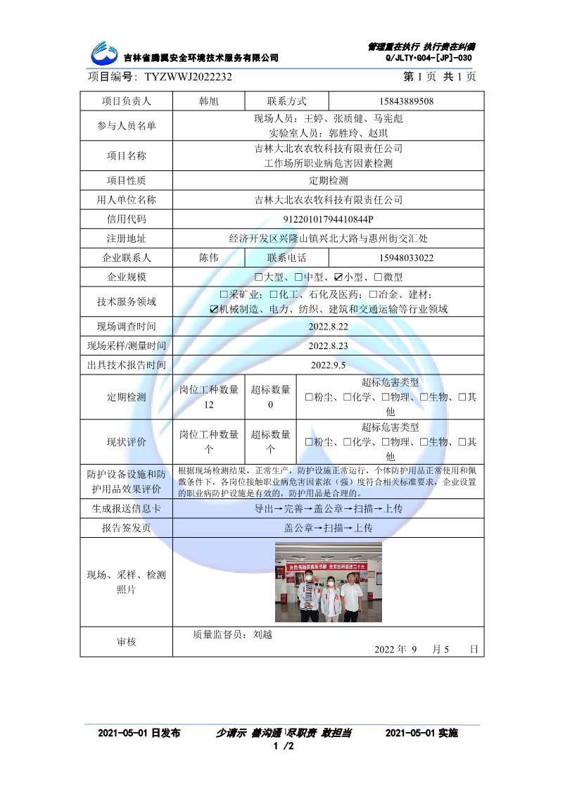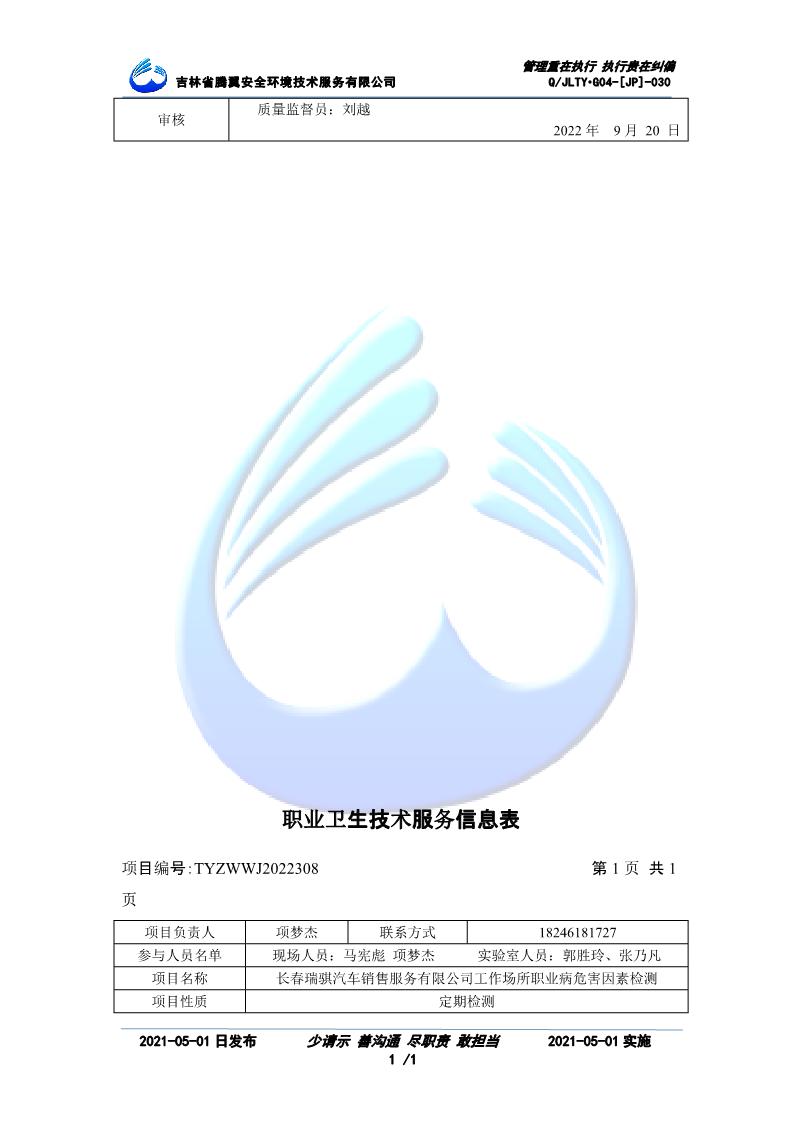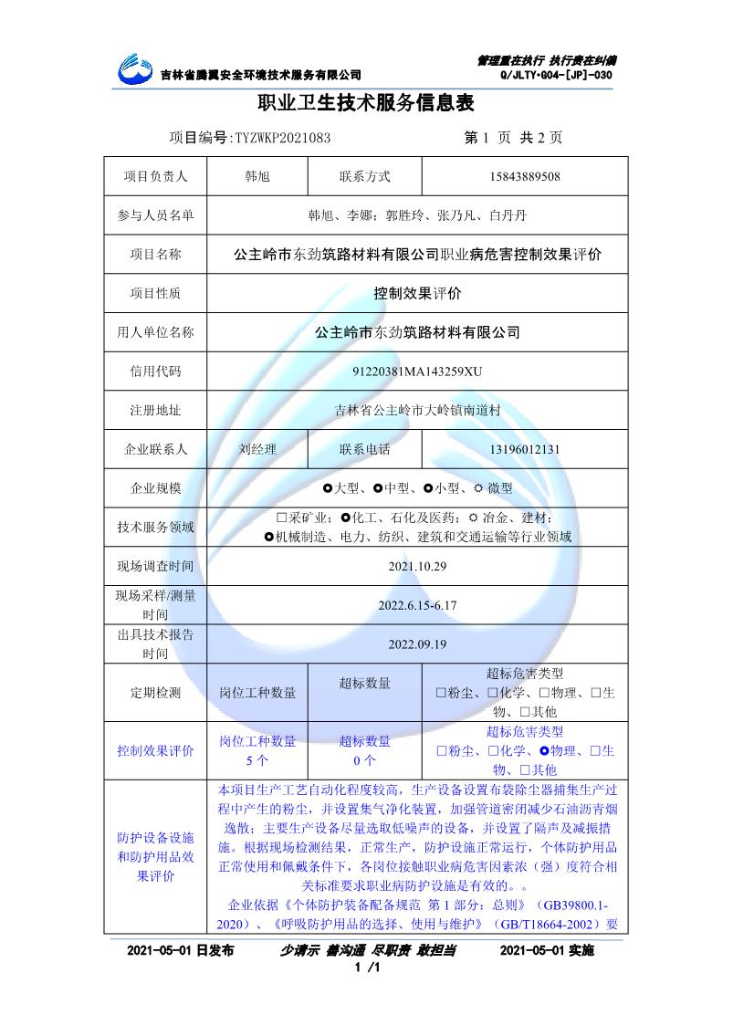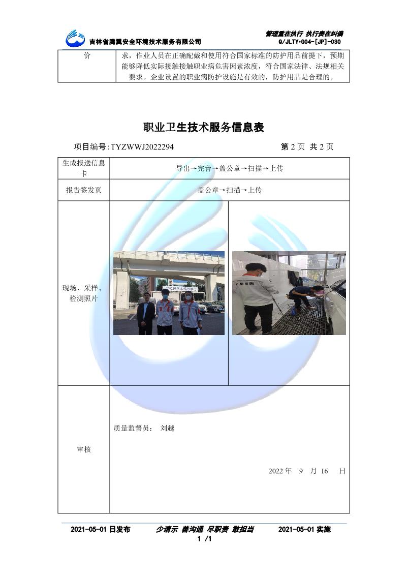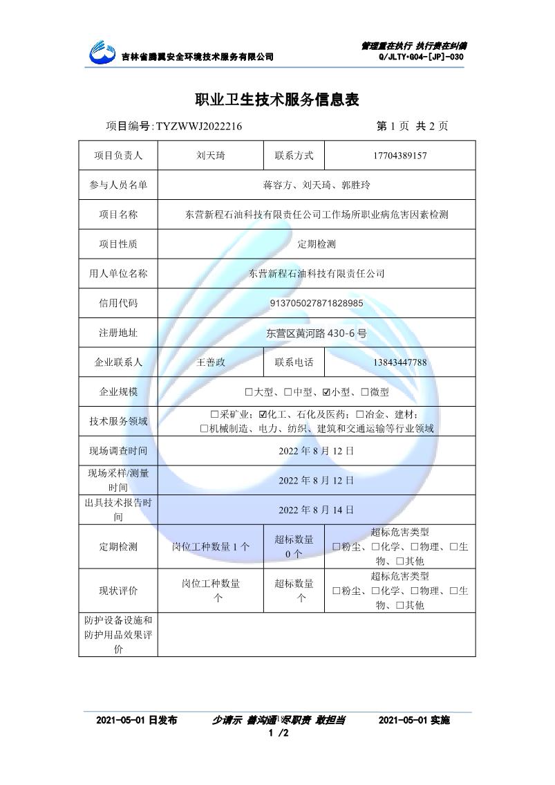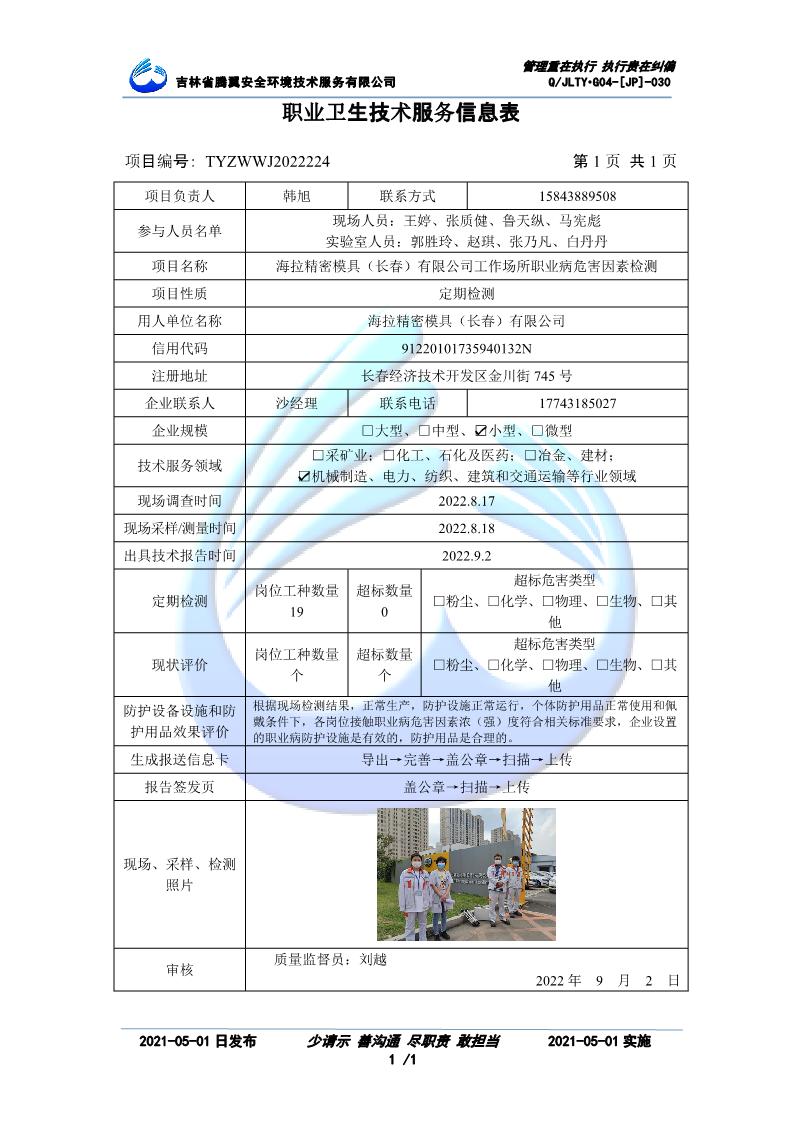 吉林省騰翼安全環(huán)境技術(shù)服務(wù)有限公司于2007年10月30日在松原市注冊(cè)成立,現(xiàn)總部位于長春北湖科技園,2008年6月3日取得安全評(píng)價(jià)機(jī)構(gòu)乙級(jí)資質(zhì),2017年1月5日取得職業(yè)衛(wèi)生技術(shù)服務(wù)機(jī)構(gòu)乙級(jí)資質(zhì),自相繼獲取安評(píng)和職評(píng)資質(zhì)至2020年間,公司以打造“中國首屈一指的安全生產(chǎn)、職業(yè)健康、生態(tài)環(huán)保一站式綜合服務(wù)體”為發(fā)展目標(biāo)。目前,公司可為各類委托方提供安全與職業(yè)衛(wèi)生評(píng)價(jià),職業(yè)衛(wèi)生與...