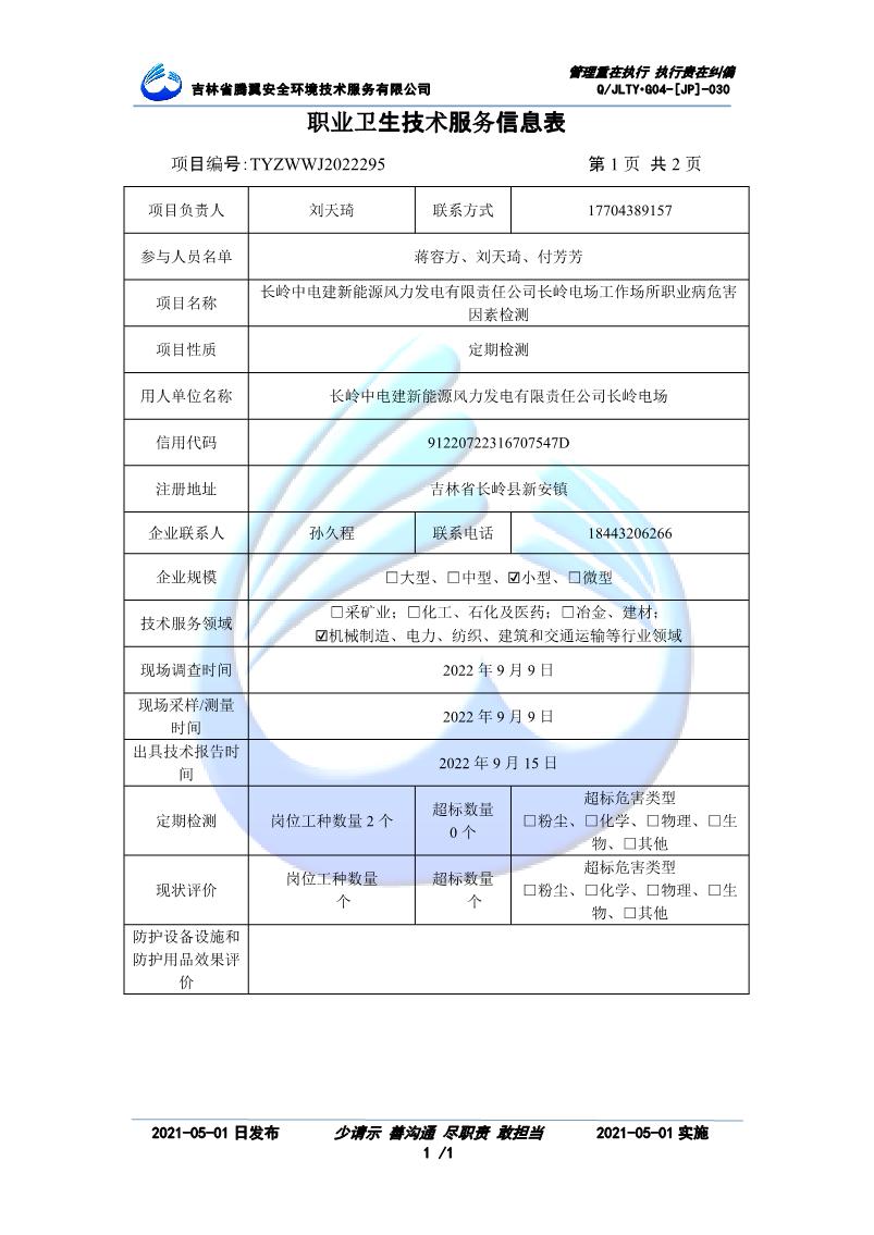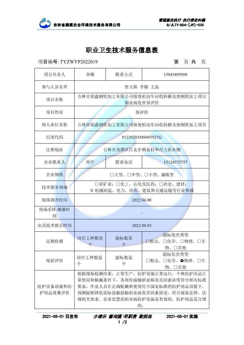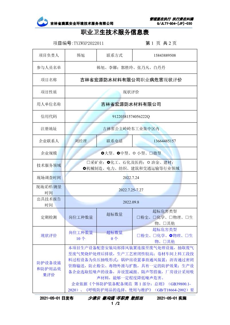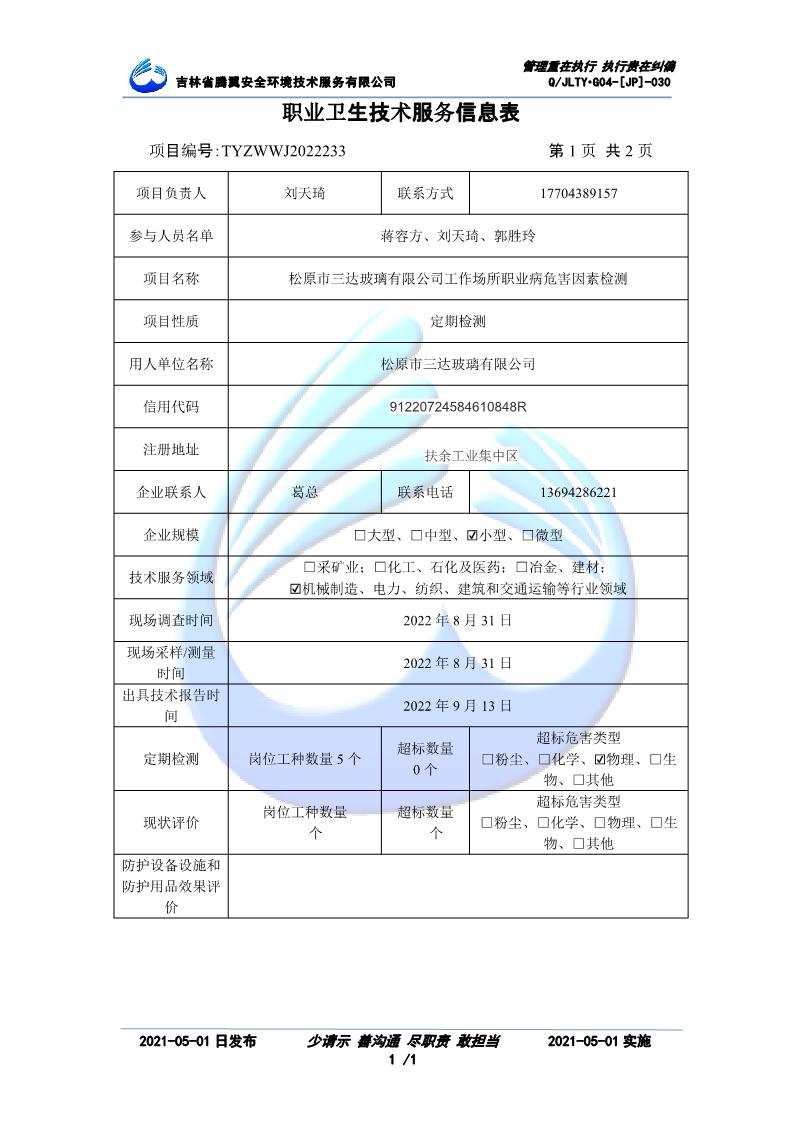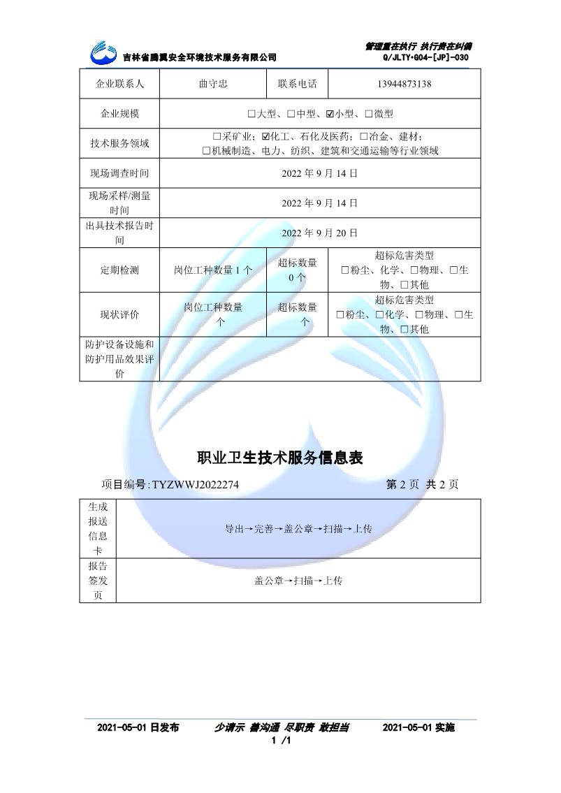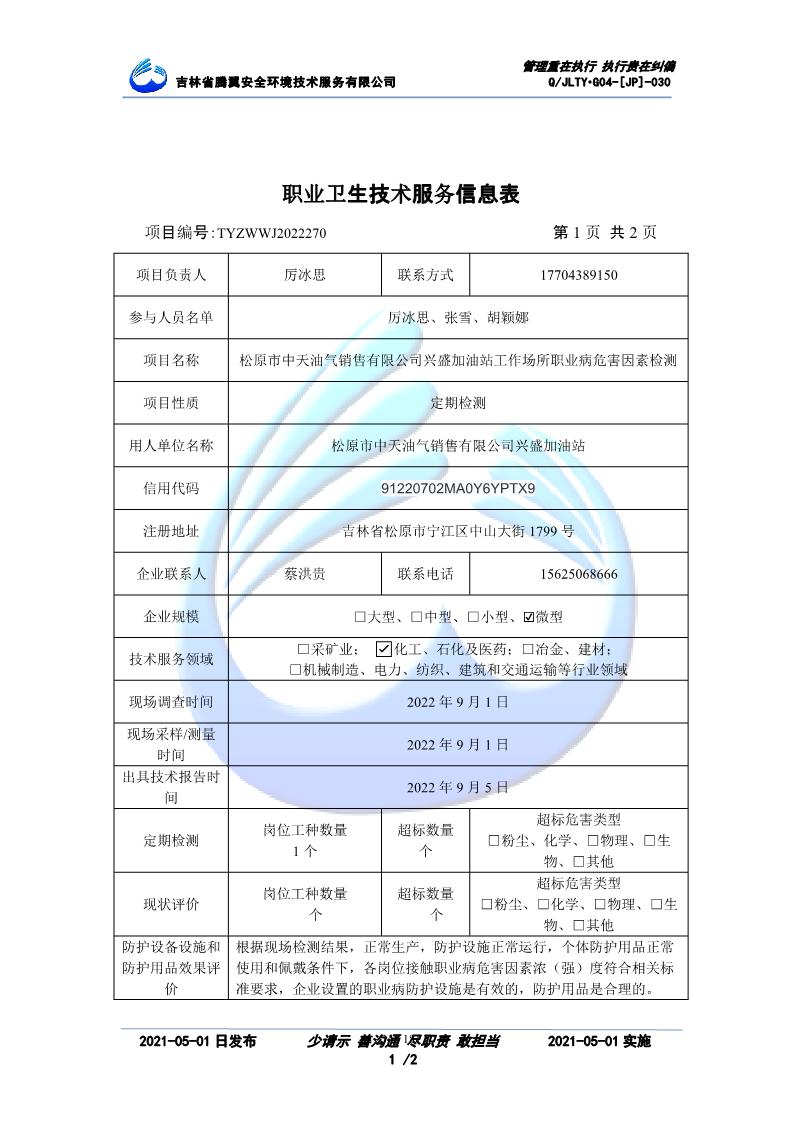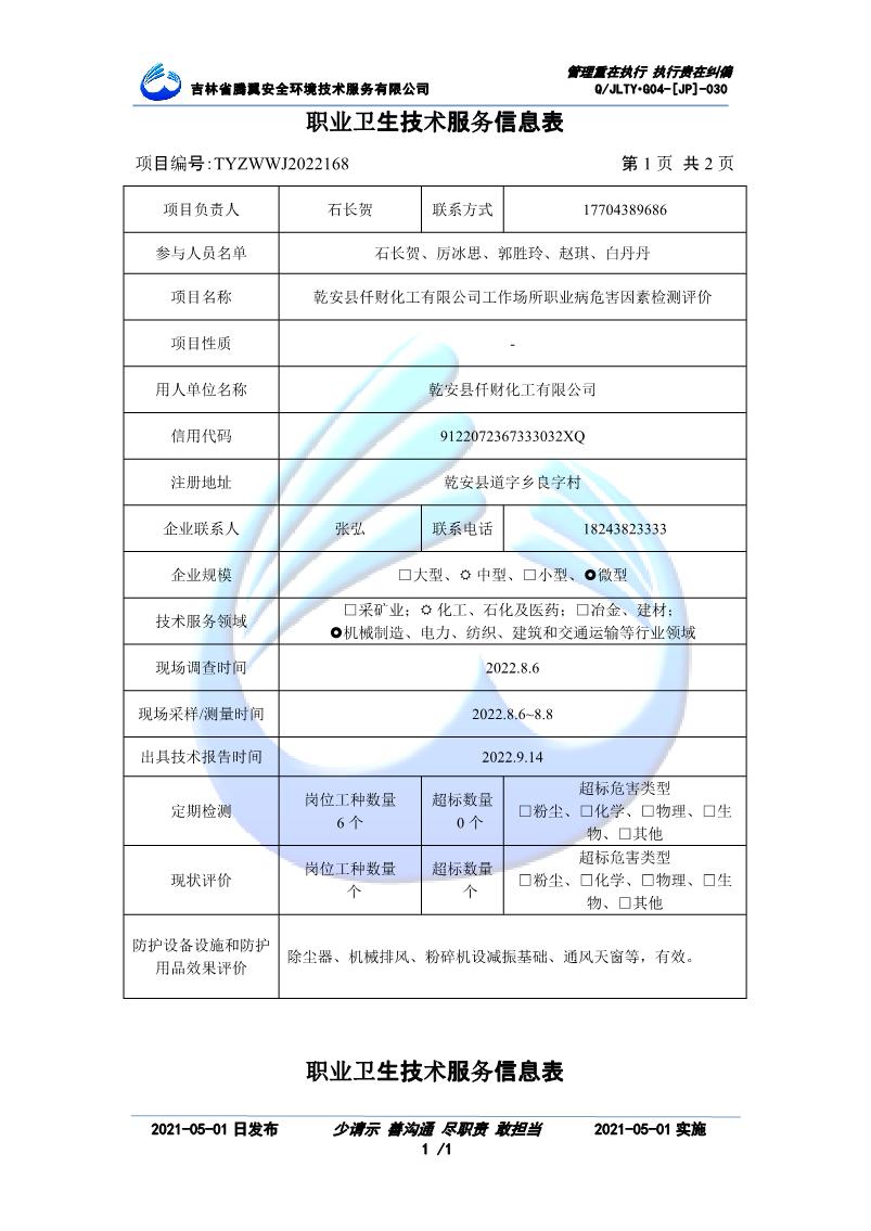 吉林省騰翼安全環(huán)境技術(shù)服務(wù)有限公司于2007年10月30日在松原市注冊(cè)成立,現(xiàn)總部位于長春北湖科技園,2008年6月3日取得安全評(píng)價(jià)機(jī)構(gòu)乙級(jí)資質(zhì),2017年1月5日取得職業(yè)衛(wèi)生技術(shù)服務(wù)機(jī)構(gòu)乙級(jí)資質(zhì),自相繼獲取安評(píng)和職評(píng)資質(zhì)至2020年間,公司以打造“中國首屈一指的安全生產(chǎn)、職業(yè)健康、生態(tài)環(huán)保一站式綜合服務(wù)體”為發(fā)展目標(biāo)。目前,公司可為各類委托方提供安全與職業(yè)衛(wèi)生評(píng)價(jià),職業(yè)衛(wèi)生與...