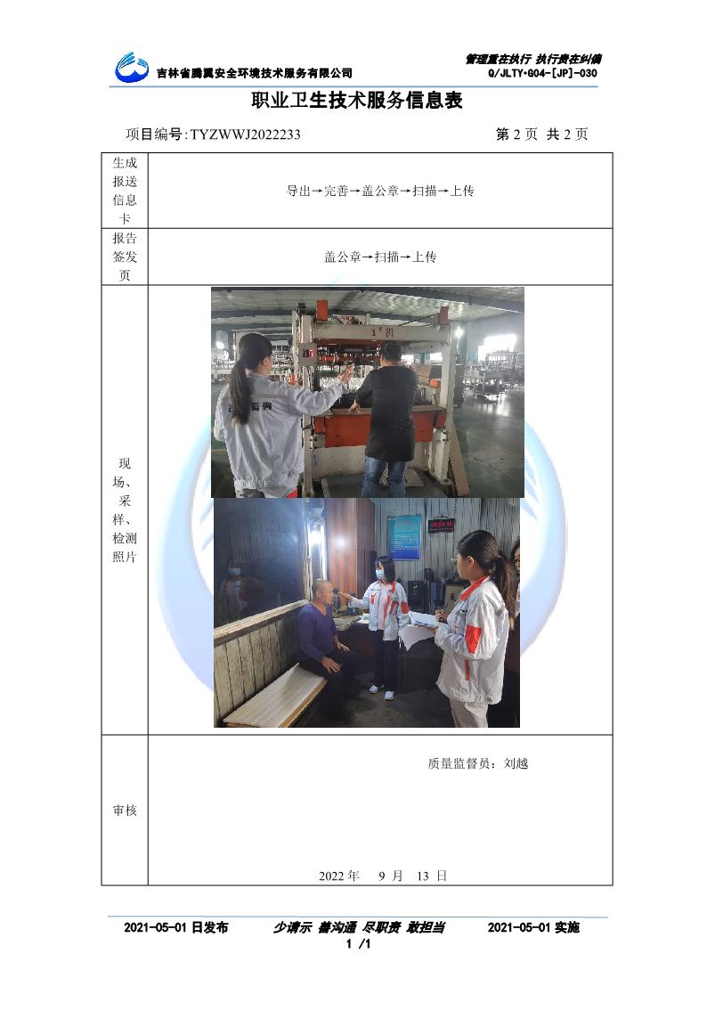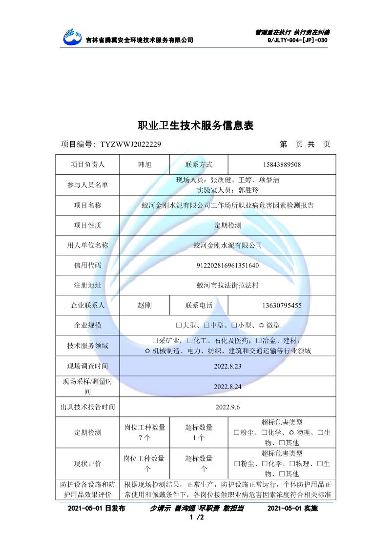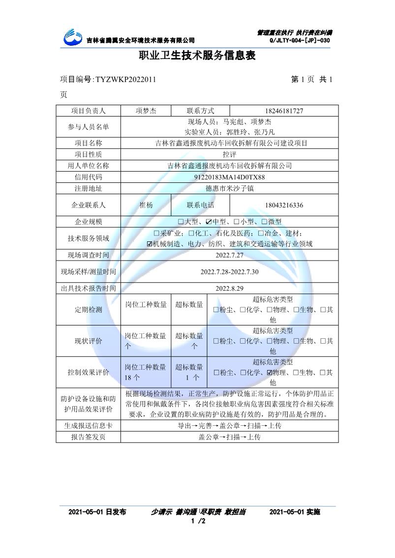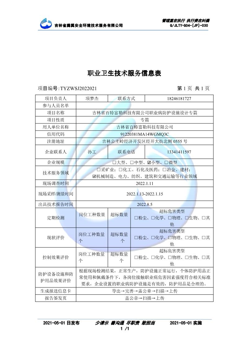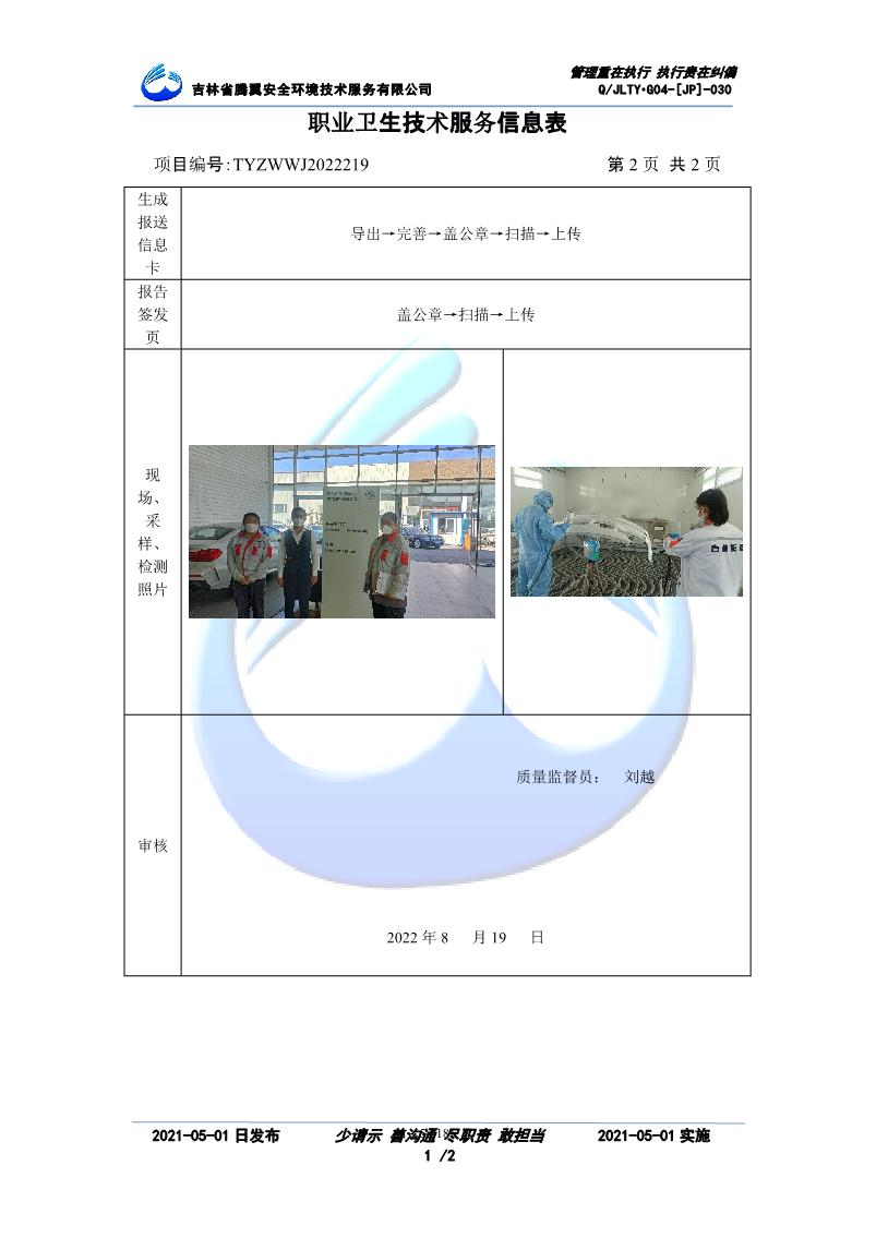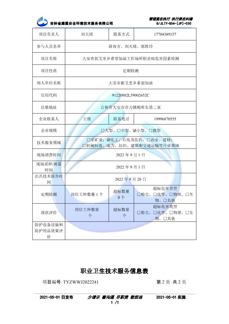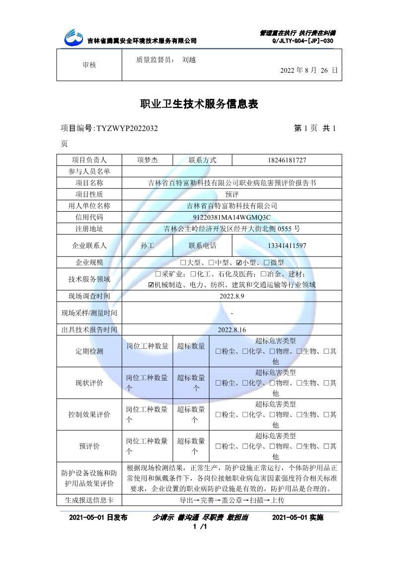 吉林省騰翼安全環(huán)境技術(shù)服務(wù)有限公司于2007年10月30日在松原市注冊(cè)成立,現(xiàn)總部位于長春北湖科技園,2008年6月3日取得安全評(píng)價(jià)機(jī)構(gòu)乙級(jí)資質(zhì),2017年1月5日取得職業(yè)衛(wèi)生技術(shù)服務(wù)機(jī)構(gòu)乙級(jí)資質(zhì),自相繼獲取安評(píng)和職評(píng)資質(zhì)至2020年間,公司以打造“中國首屈一指的安全生產(chǎn)、職業(yè)健康、生態(tài)環(huán)保一站式綜合服務(wù)體”為發(fā)展目標(biāo)。目前,公司可為各類委托方提供安全與職業(yè)衛(wèi)生評(píng)價(jià),職業(yè)衛(wèi)生與...