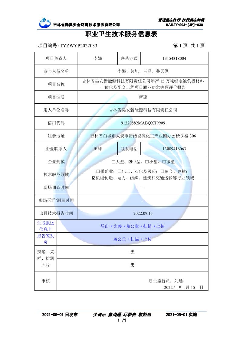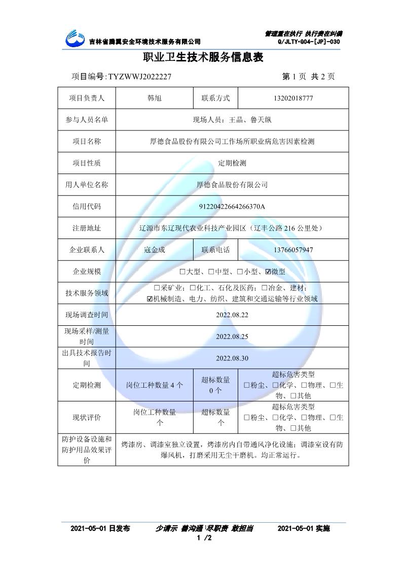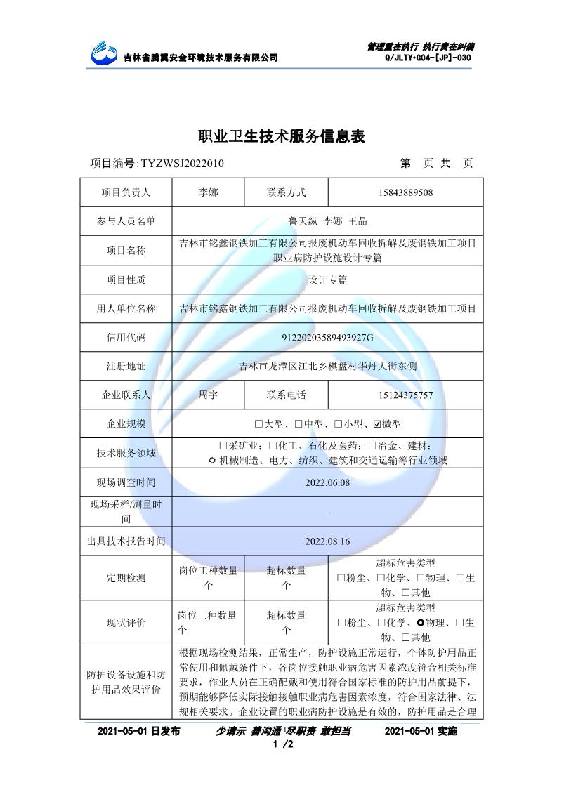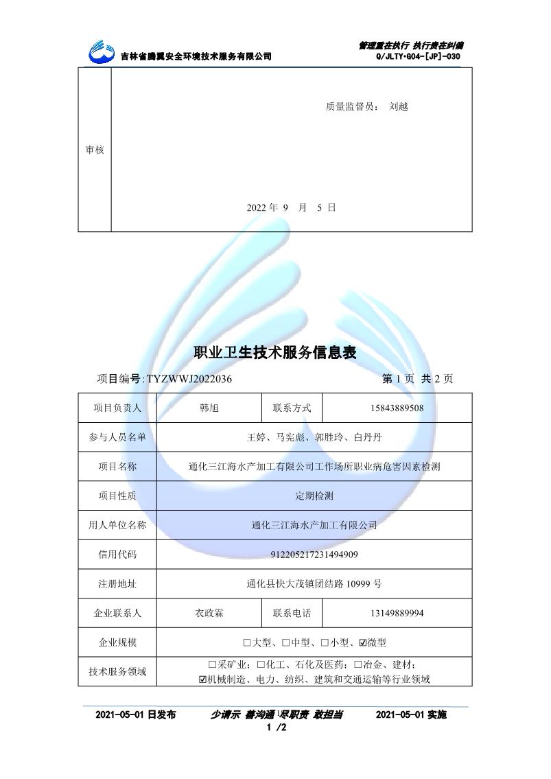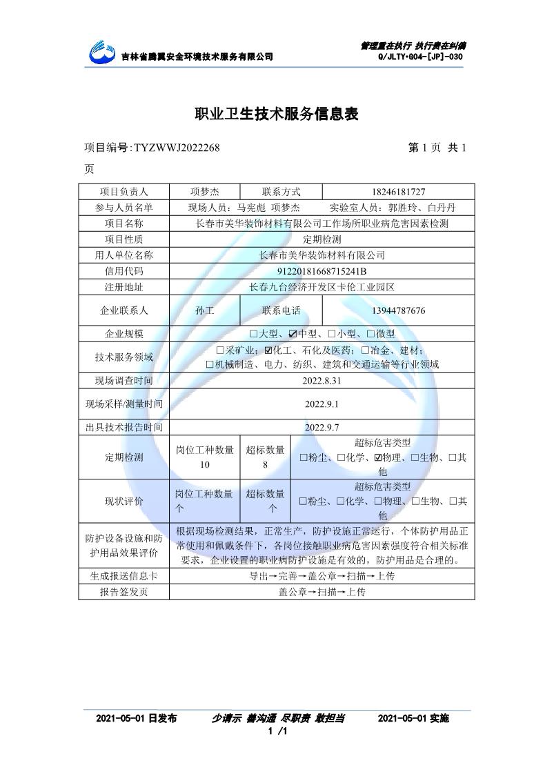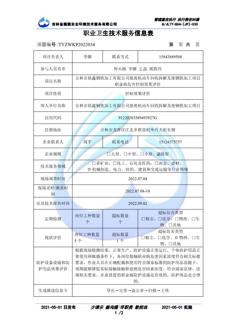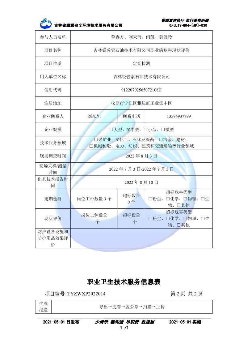 吉林省騰翼安全環(huán)境技術(shù)服務(wù)有限公司于2007年10月30日在松原市注冊(cè)成立,現(xiàn)總部位于長春北湖科技園,2008年6月3日取得安全評(píng)價(jià)機(jī)構(gòu)乙級(jí)資質(zhì),2017年1月5日取得職業(yè)衛(wèi)生技術(shù)服務(wù)機(jī)構(gòu)乙級(jí)資質(zhì),自相繼獲取安評(píng)和職評(píng)資質(zhì)至2020年間,公司以打造“中國首屈一指的安全生產(chǎn)、職業(yè)健康、生態(tài)環(huán)保一站式綜合服務(wù)體”為發(fā)展目標(biāo)。目前,公司可為各類委托方提供安全與職業(yè)衛(wèi)生評(píng)價(jià),職業(yè)衛(wèi)生與...