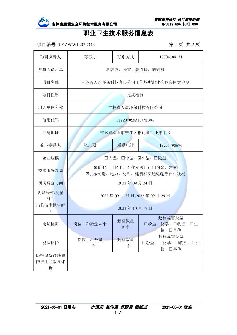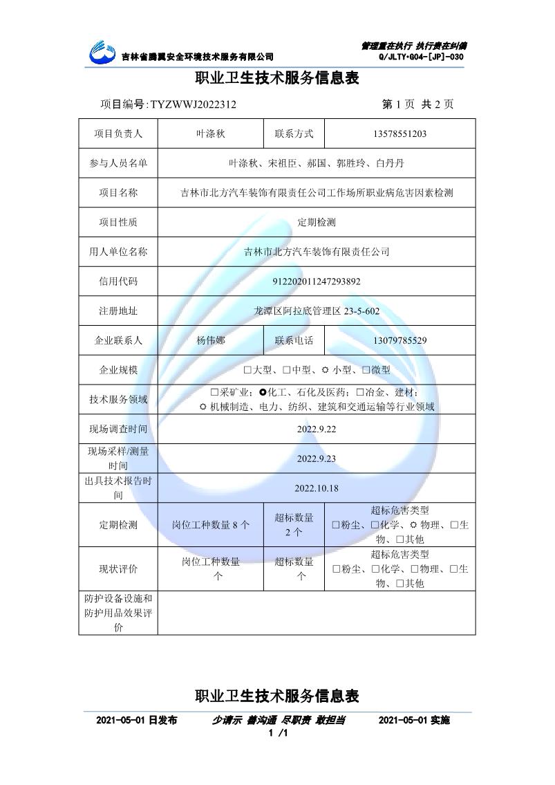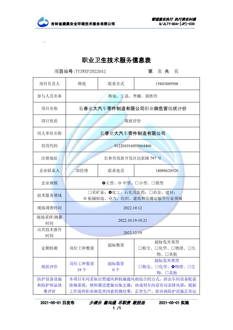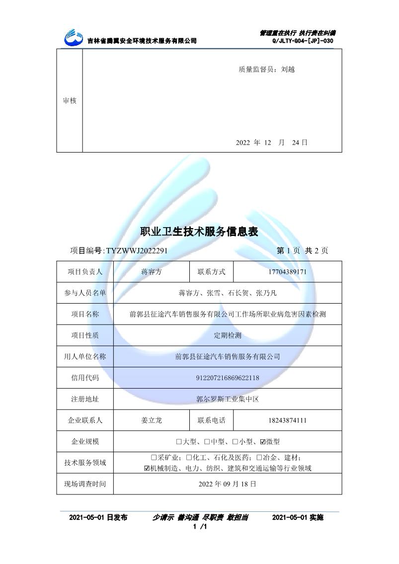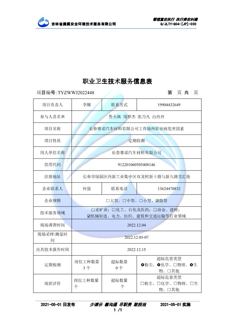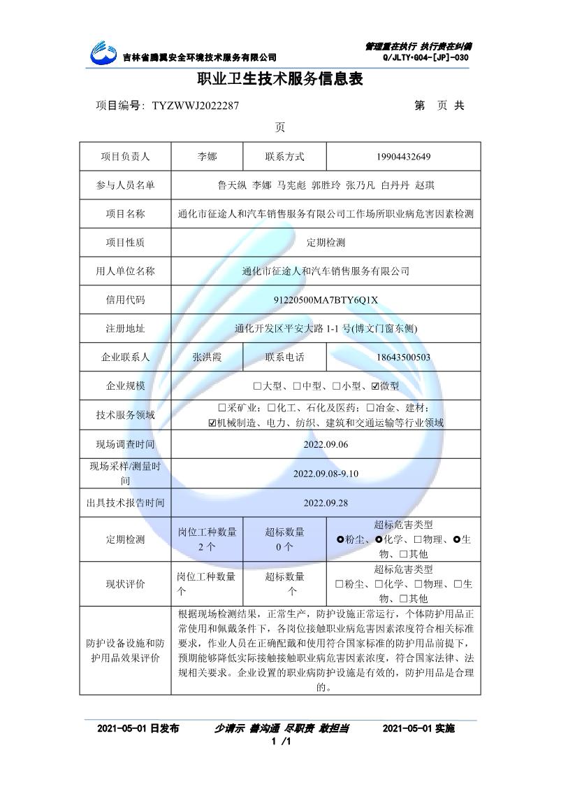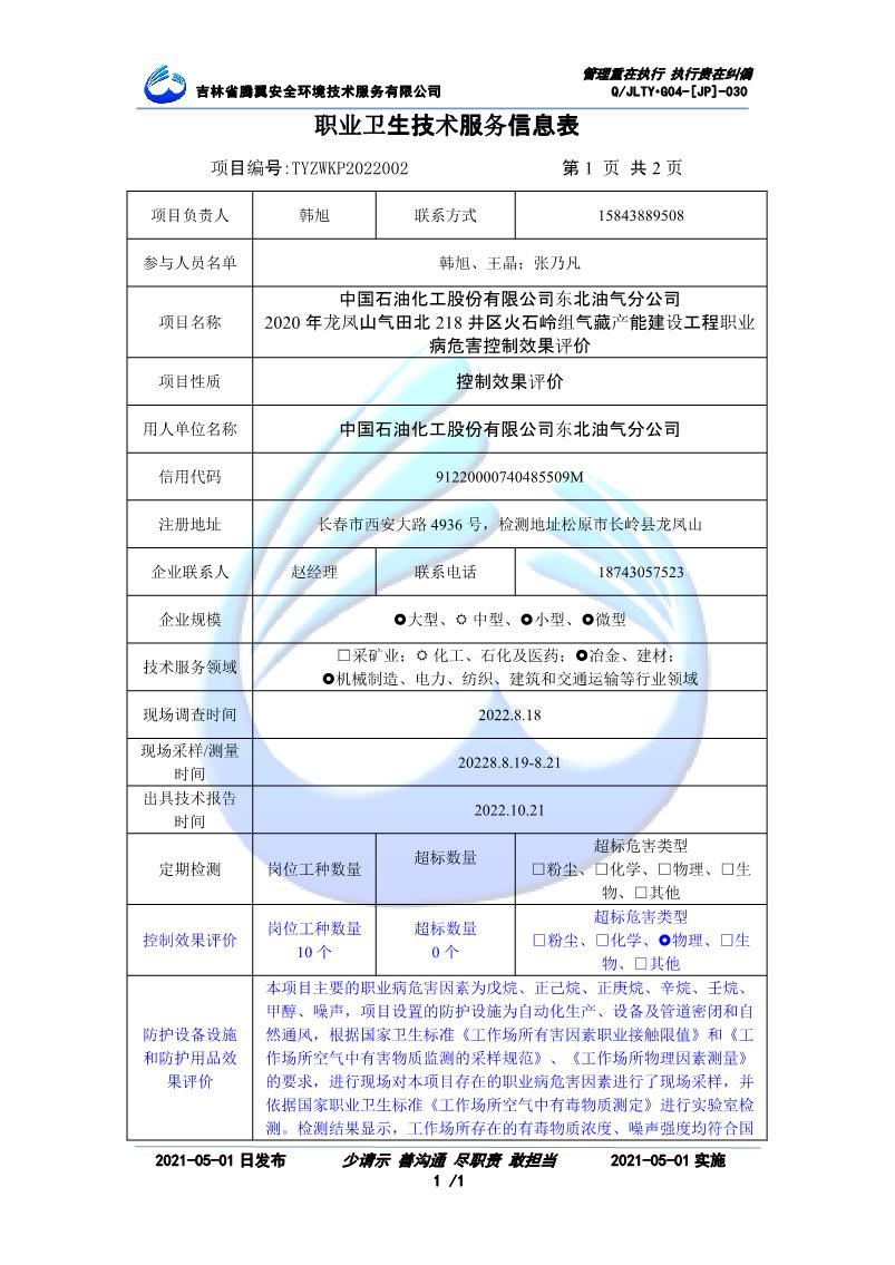 吉林省騰翼安全環(huán)境技術服務有限公司于2007年10月30日在松原市注冊成立,現總部位于長春北湖科技園,2008年6月3日取得安全評價機構乙級資質,2017年1月5日取得職業(yè)衛(wèi)生技術服務機構乙級資質,自相繼獲取安評和職評資質至2020年間,公司以打造“中國首屈一指的安全生產、職業(yè)健康、生態(tài)環(huán)保一站式綜合服務體”為發(fā)展目標。目前,公司可為各類委托方提供安全與職業(yè)衛(wèi)生評價,職業(yè)衛(wèi)生與...