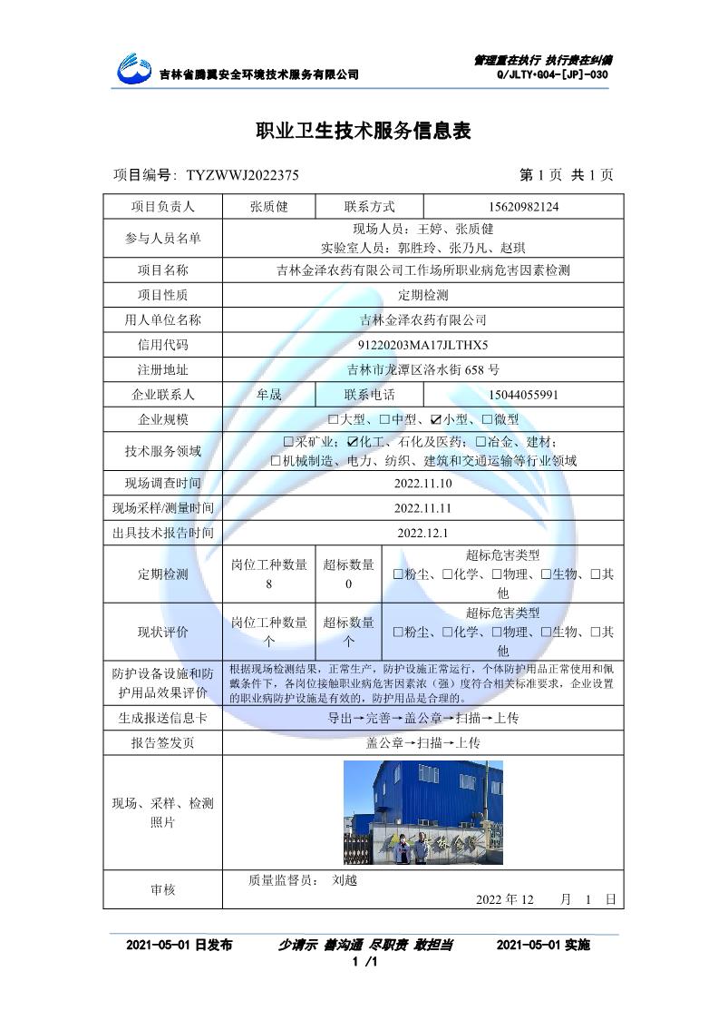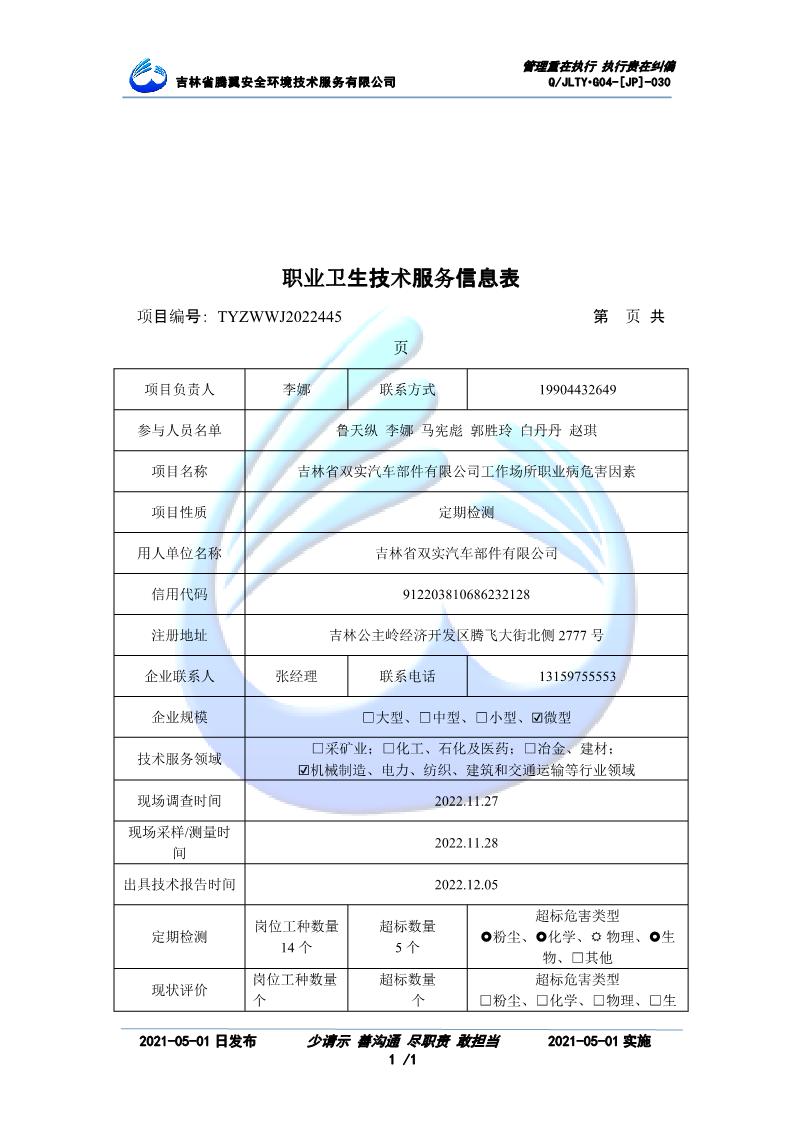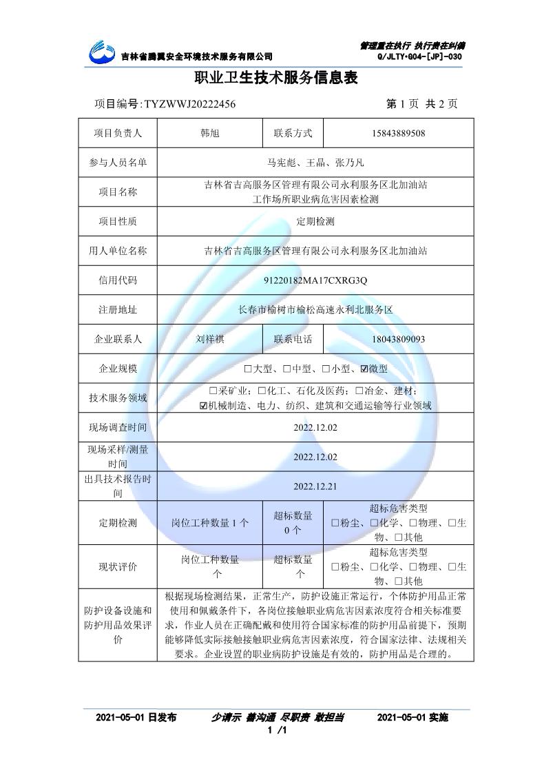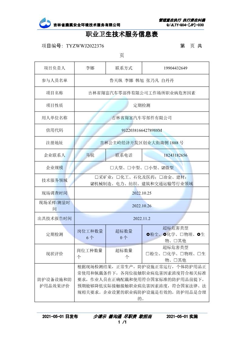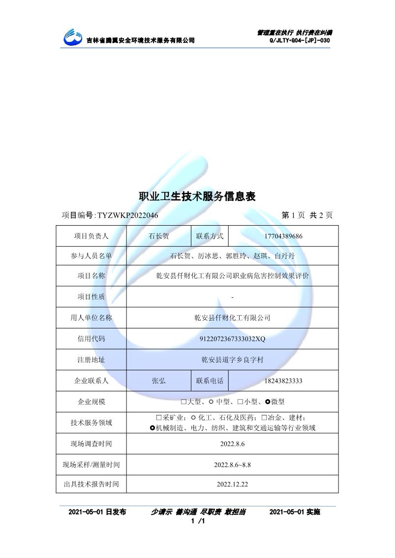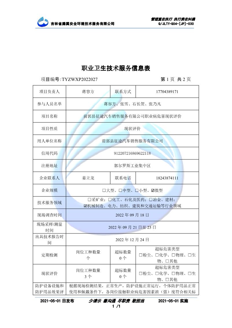 吉林省騰翼安全環(huán)境技術服務有限公司于2007年10月30日在松原市注冊成立,現總部位于長春北湖科技園,2008年6月3日取得安全評價機構乙級資質,2017年1月5日取得職業(yè)衛(wèi)生技術服務機構乙級資質,自相繼獲取安評和職評資質至2020年間,公司以打造“中國首屈一指的安全生產、職業(yè)健康、生態(tài)環(huán)保一站式綜合服務體”為發(fā)展目標。目前,公司可為各類委托方提供安全與職業(yè)衛(wèi)生評價,職業(yè)衛(wèi)生與...