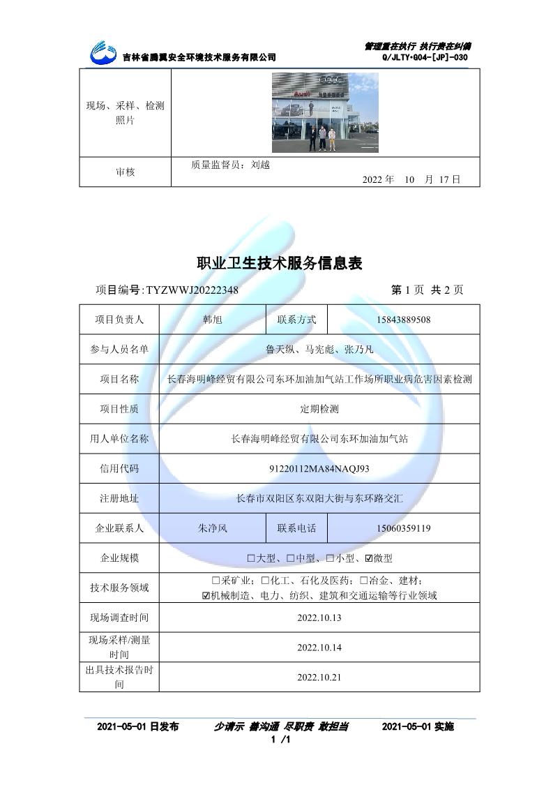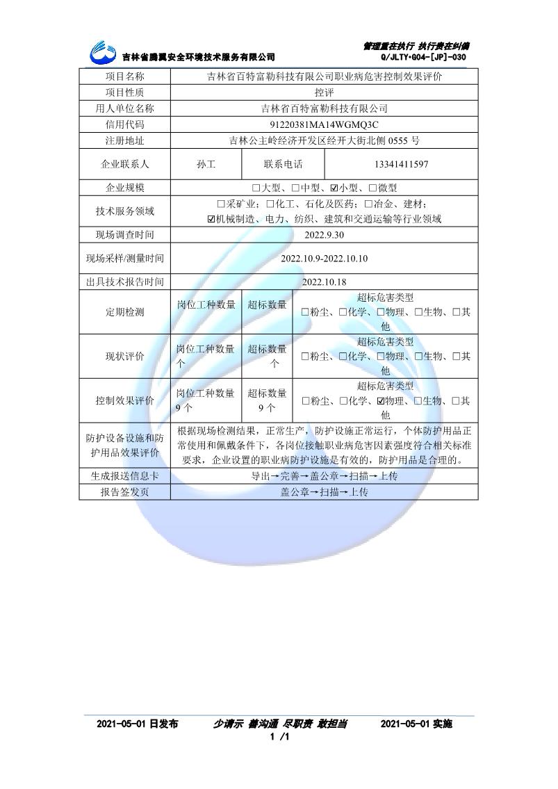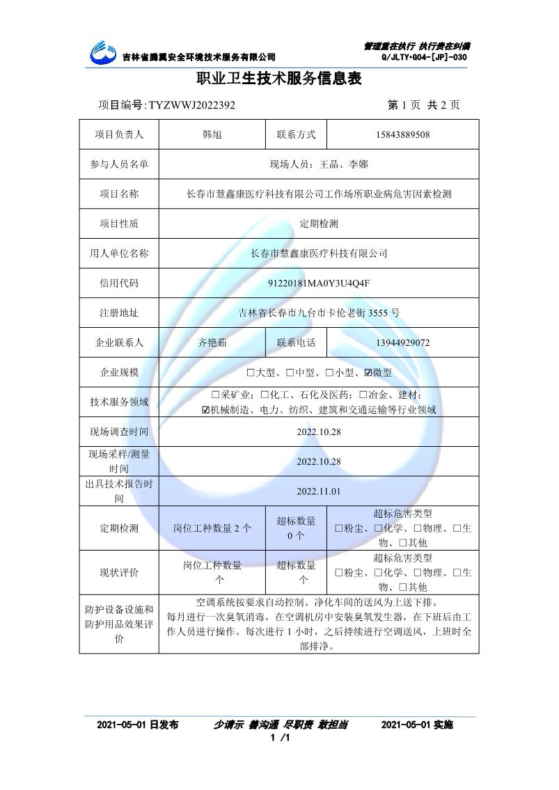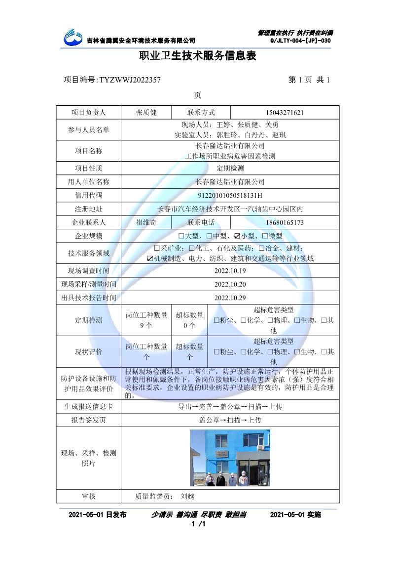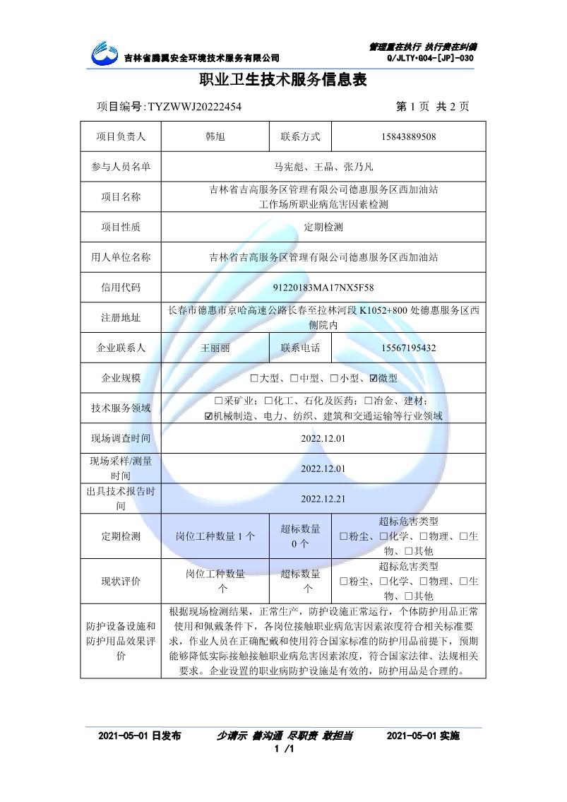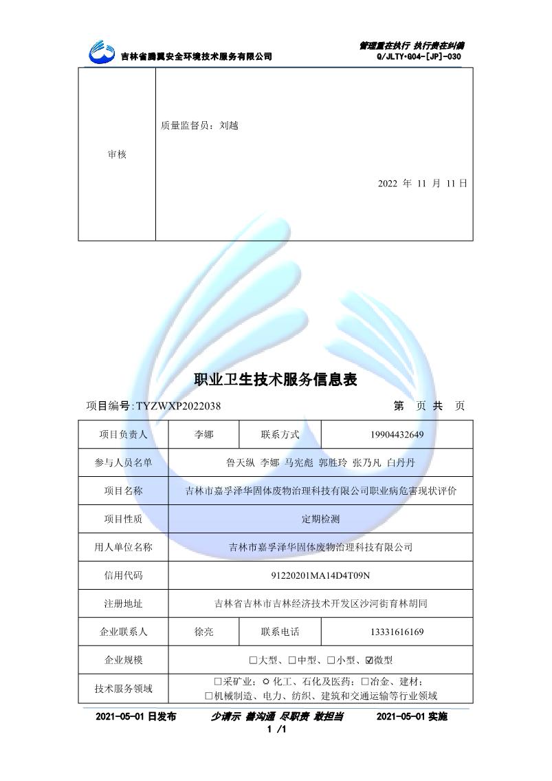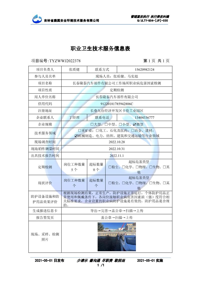 吉林省騰翼安全環(huán)境技術服務有限公司于2007年10月30日在松原市注冊成立,現總部位于長春北湖科技園,2008年6月3日取得安全評價機構乙級資質,2017年1月5日取得職業(yè)衛(wèi)生技術服務機構乙級資質,自相繼獲取安評和職評資質至2020年間,公司以打造“中國首屈一指的安全生產、職業(yè)健康、生態(tài)環(huán)保一站式綜合服務體”為發(fā)展目標。目前,公司可為各類委托方提供安全與職業(yè)衛(wèi)生評價,職業(yè)衛(wèi)生與...