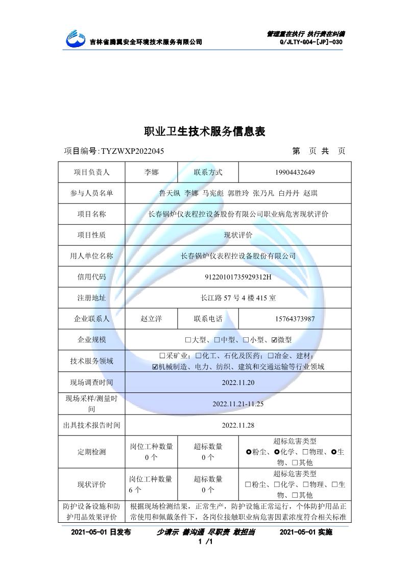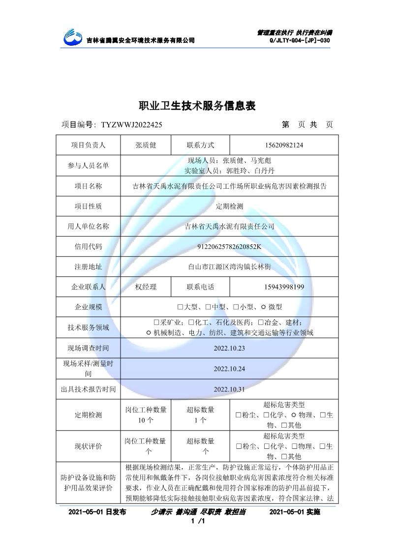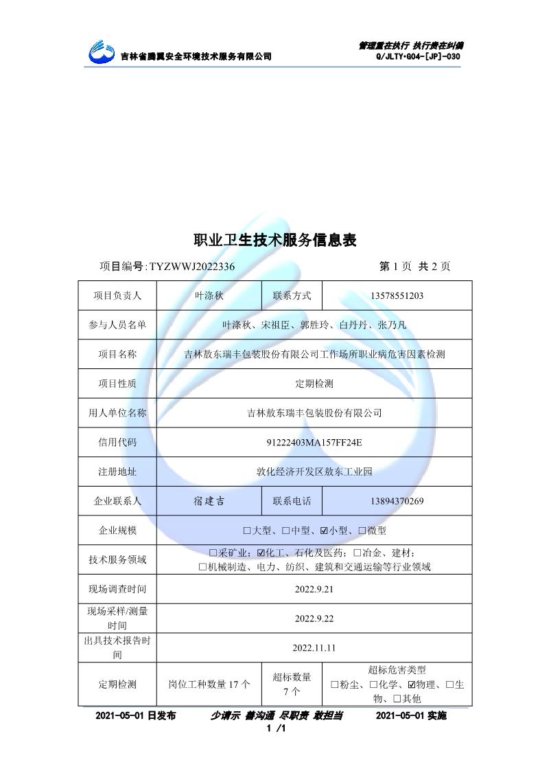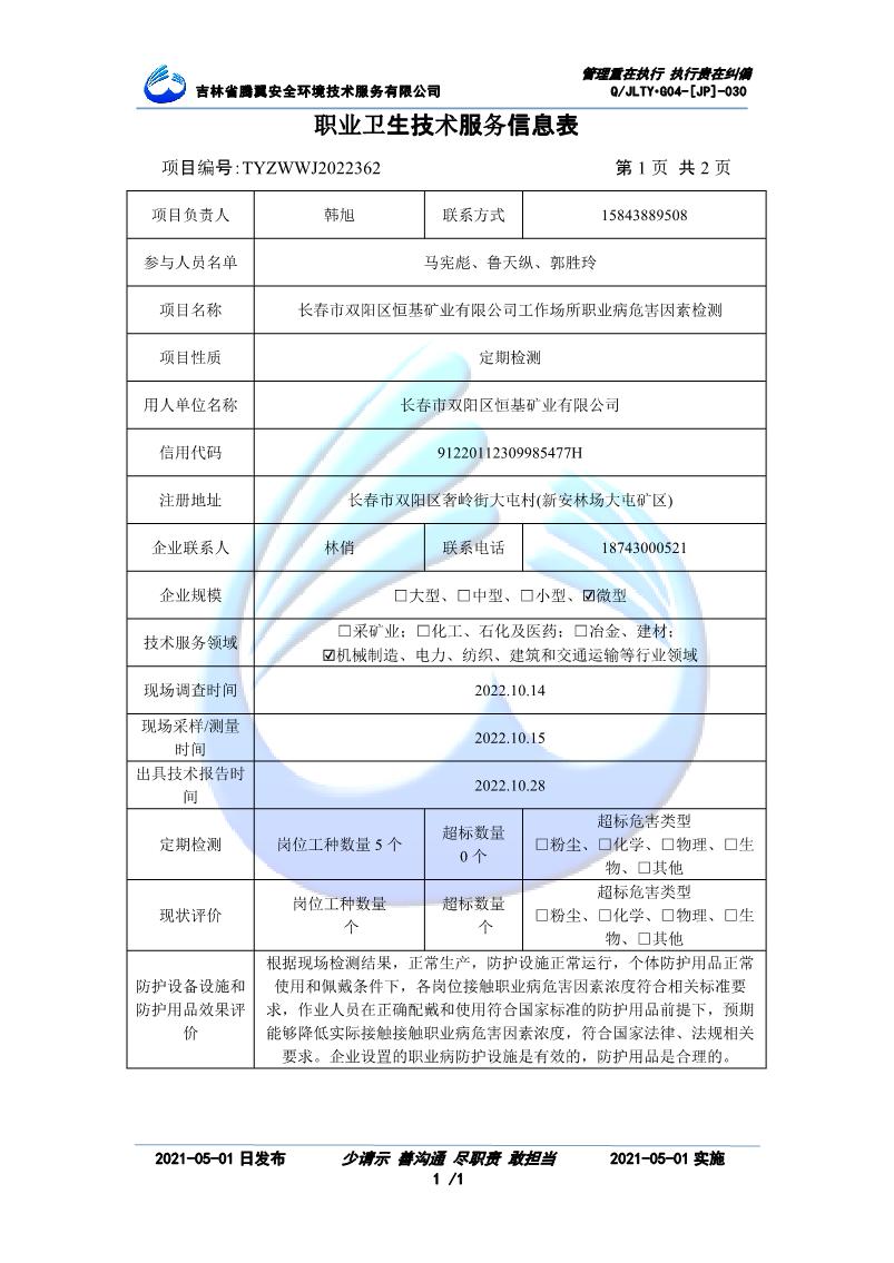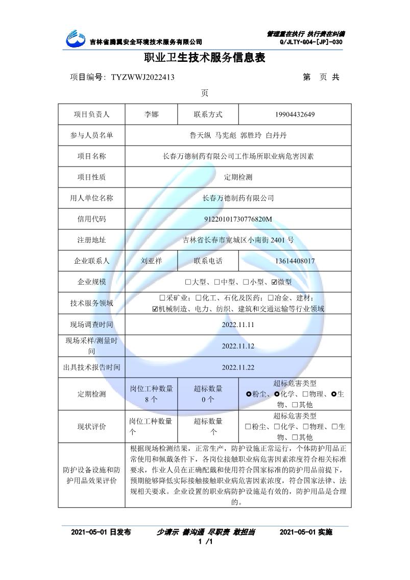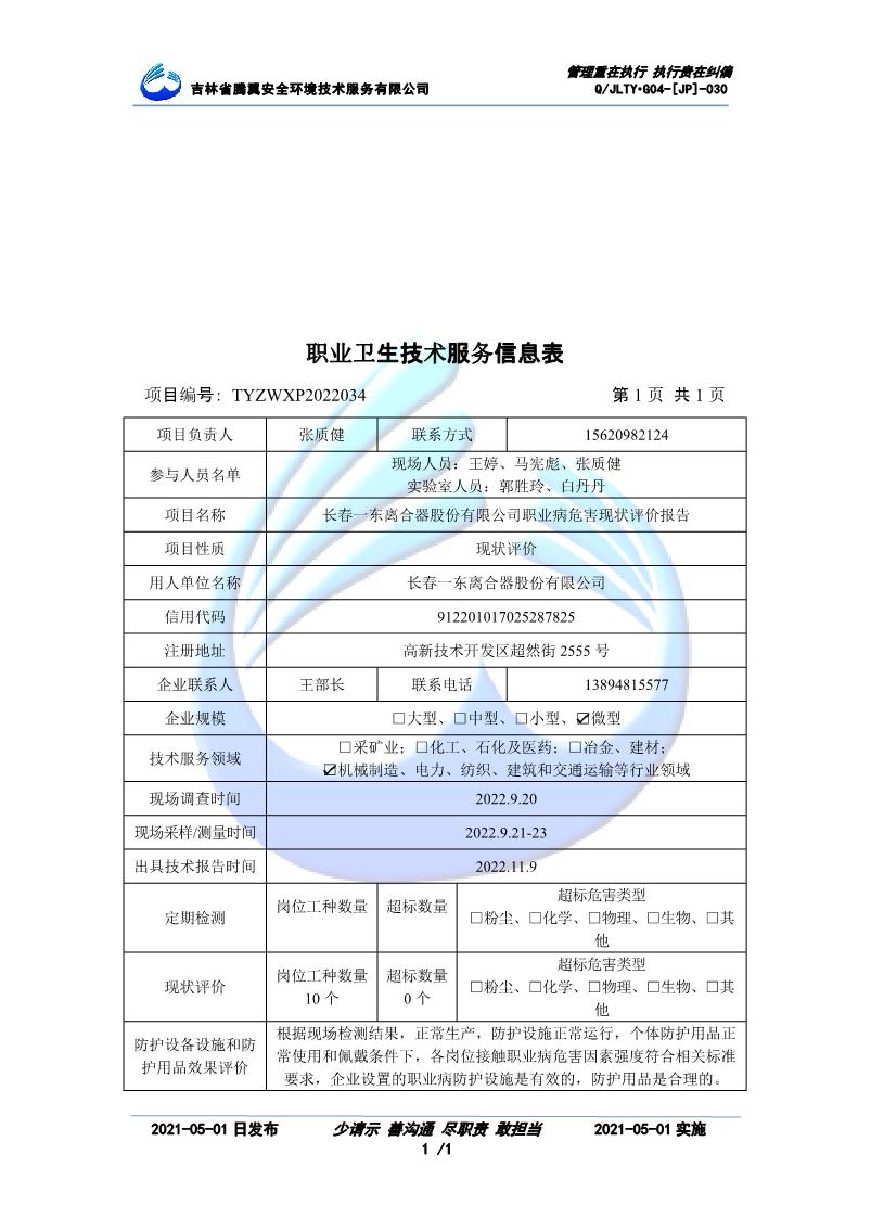 吉林省騰翼安全環(huán)境技術服務有限公司于2007年10月30日在松原市注冊成立,現總部位于長春北湖科技園,2008年6月3日取得安全評價機構乙級資質,2017年1月5日取得職業(yè)衛(wèi)生技術服務機構乙級資質,自相繼獲取安評和職評資質至2020年間,公司以打造“中國首屈一指的安全生產、職業(yè)健康、生態(tài)環(huán)保一站式綜合服務體”為發(fā)展目標。目前,公司可為各類委托方提供安全與職業(yè)衛(wèi)生評價,職業(yè)衛(wèi)生與...