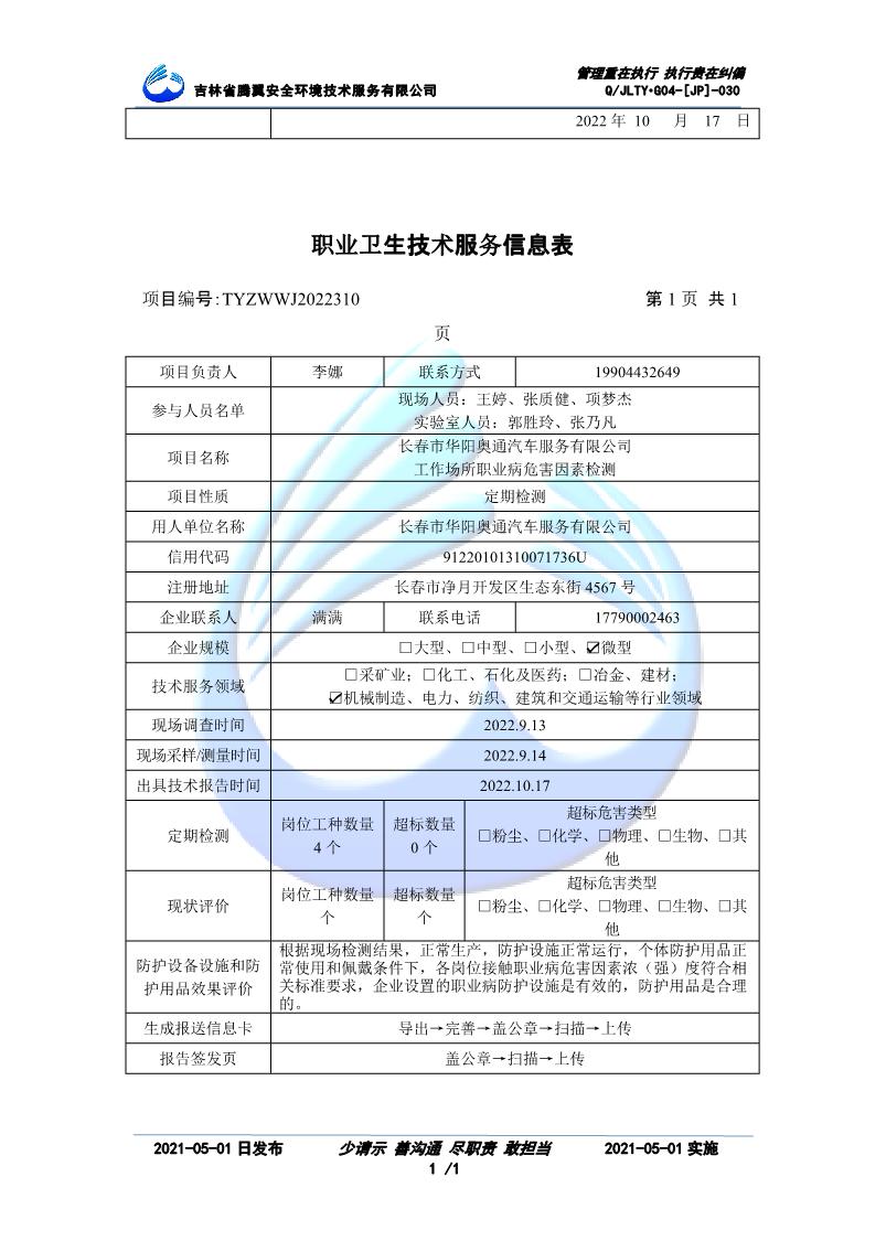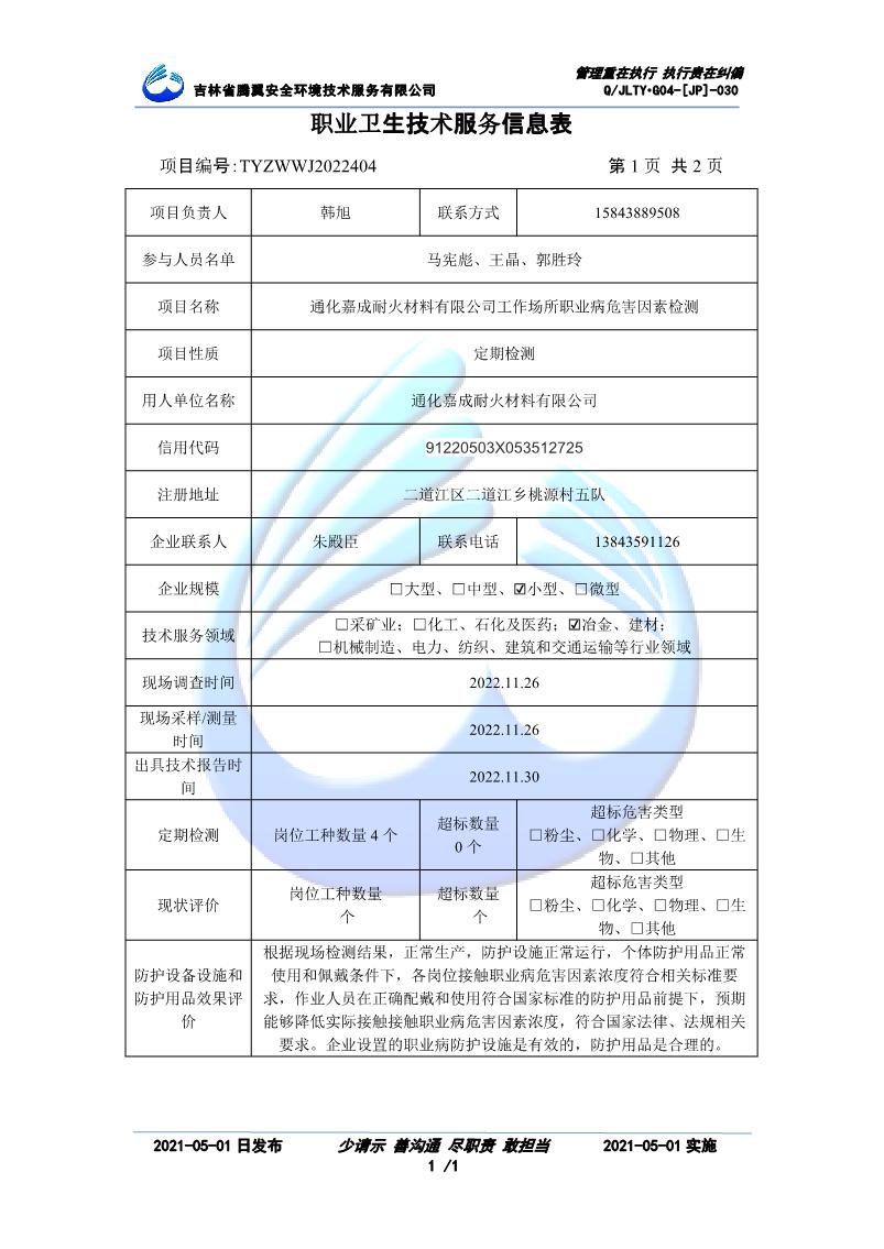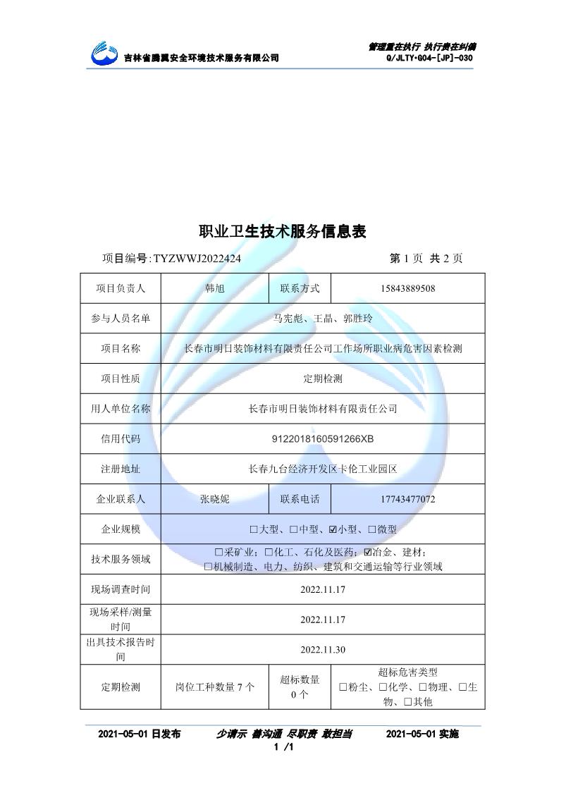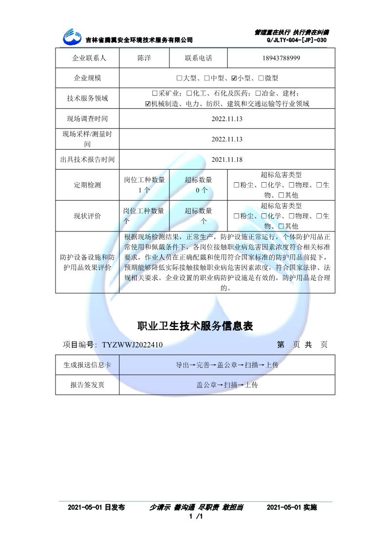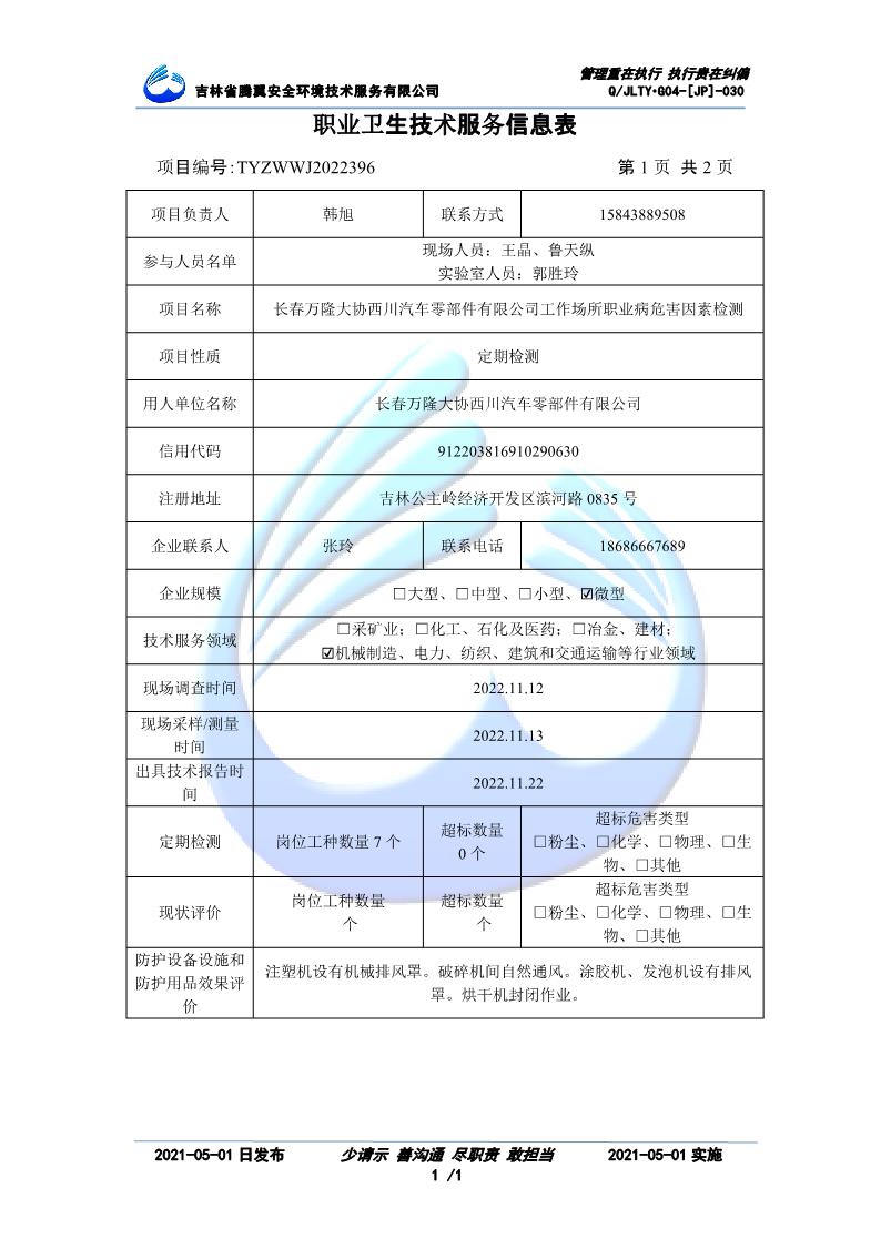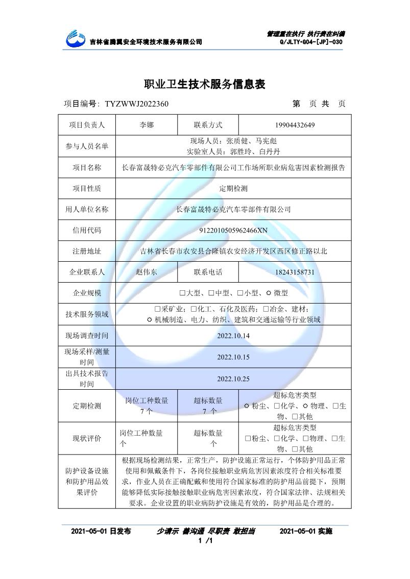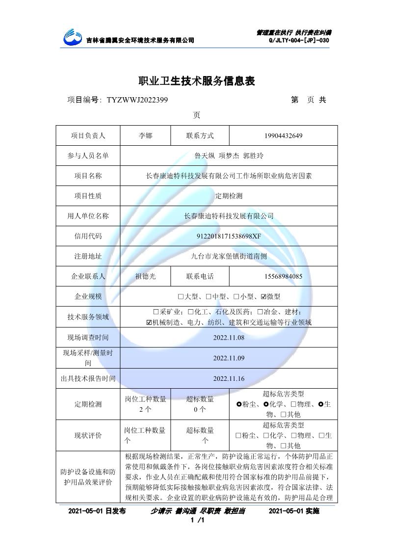 吉林省騰翼安全環(huán)境技術服務有限公司于2007年10月30日在松原市注冊成立,現總部位于長春北湖科技園,2008年6月3日取得安全評價機構乙級資質,2017年1月5日取得職業(yè)衛(wèi)生技術服務機構乙級資質,自相繼獲取安評和職評資質至2020年間,公司以打造“中國首屈一指的安全生產、職業(yè)健康、生態(tài)環(huán)保一站式綜合服務體”為發(fā)展目標。目前,公司可為各類委托方提供安全與職業(yè)衛(wèi)生評價,職業(yè)衛(wèi)生與...