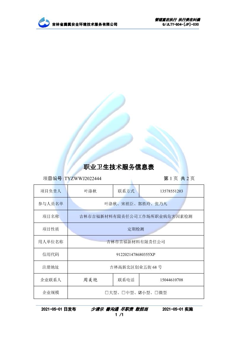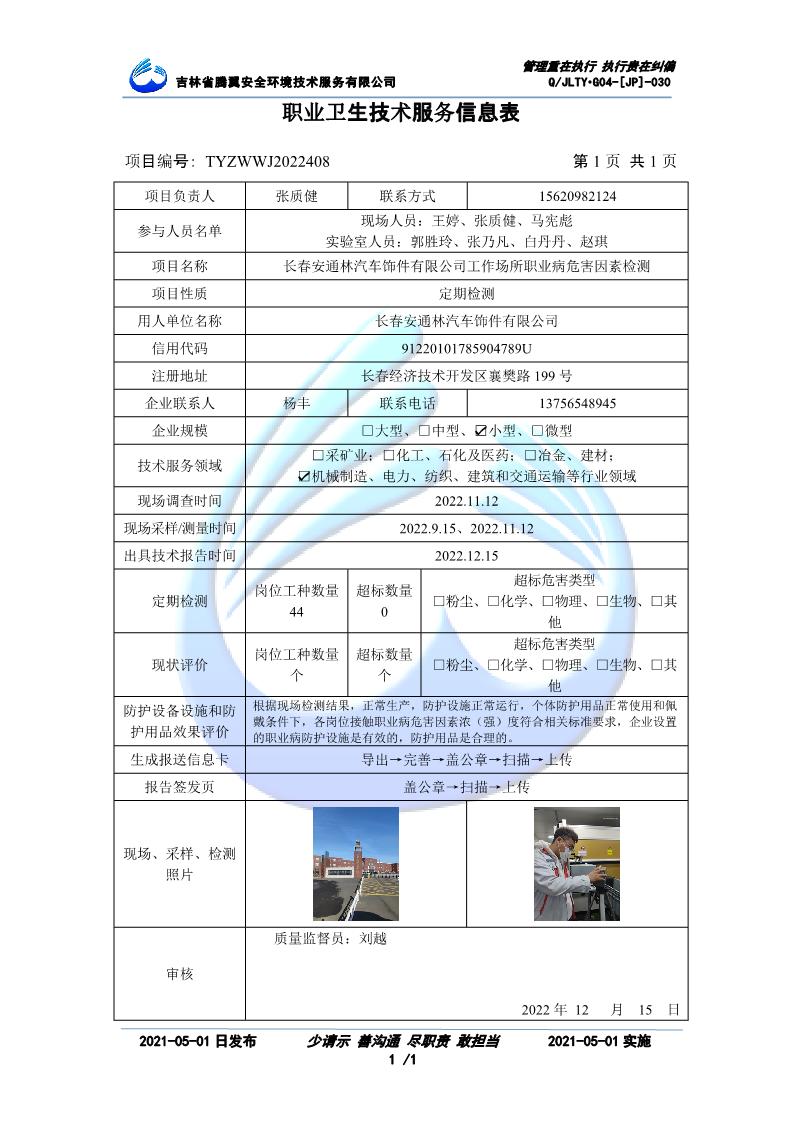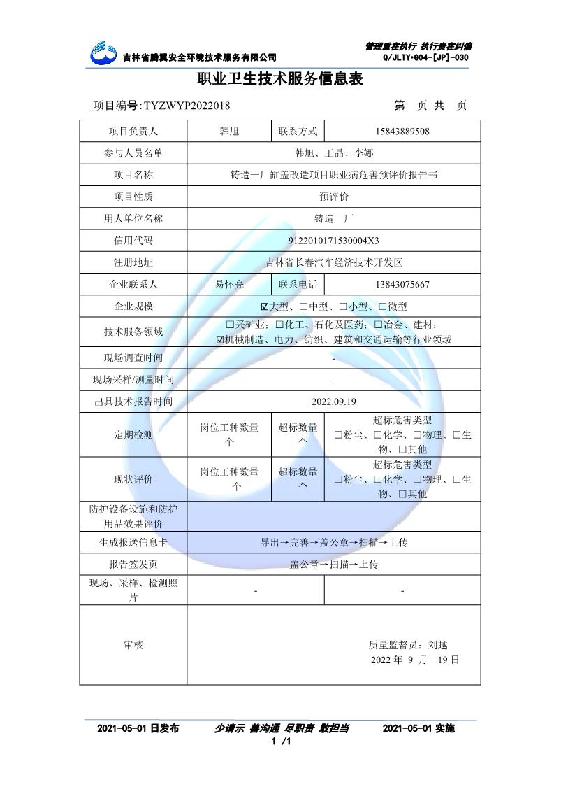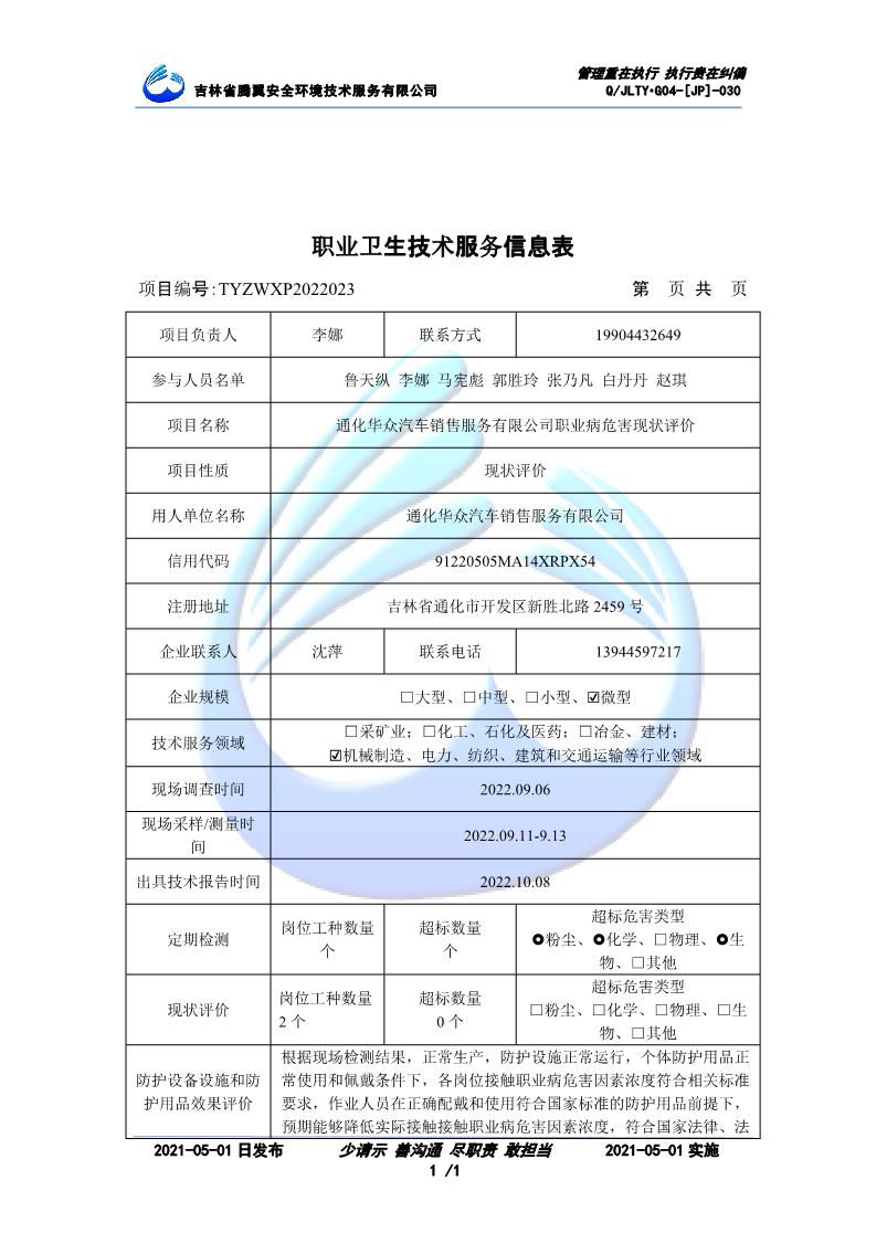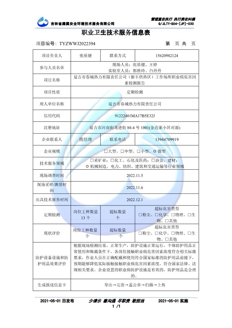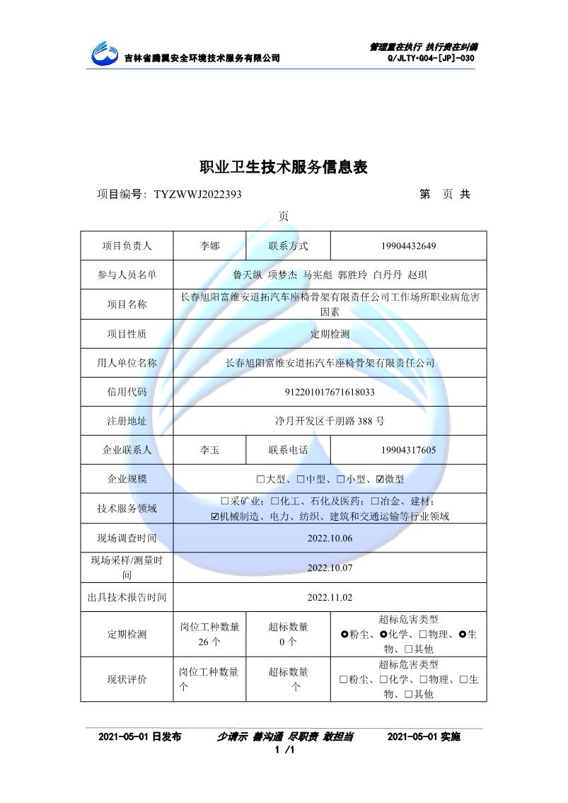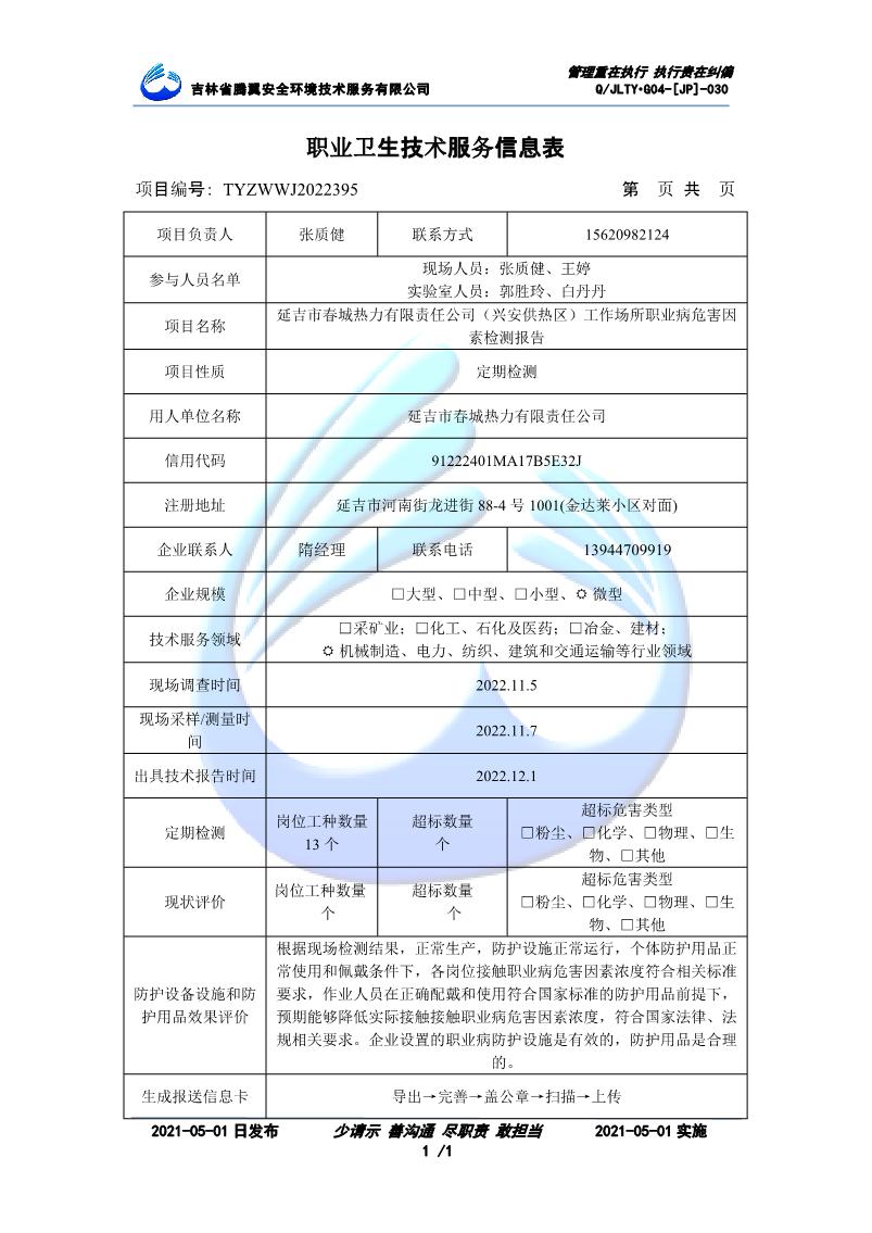 吉林省騰翼安全環(huán)境技術服務有限公司于2007年10月30日在松原市注冊成立,現總部位于長春北湖科技園,2008年6月3日取得安全評價機構乙級資質,2017年1月5日取得職業(yè)衛(wèi)生技術服務機構乙級資質,自相繼獲取安評和職評資質至2020年間,公司以打造“中國首屈一指的安全生產、職業(yè)健康、生態(tài)環(huán)保一站式綜合服務體”為發(fā)展目標。目前,公司可為各類委托方提供安全與職業(yè)衛(wèi)生評價,職業(yè)衛(wèi)生與...