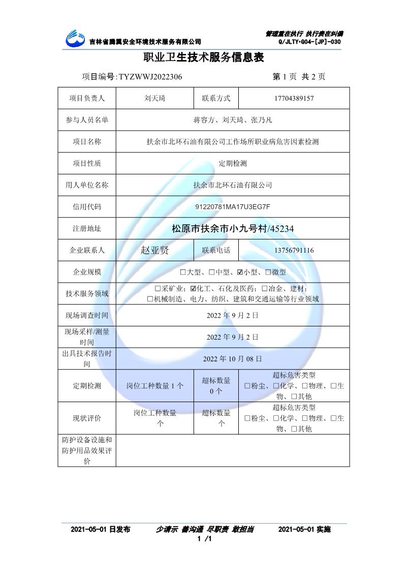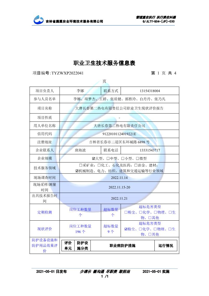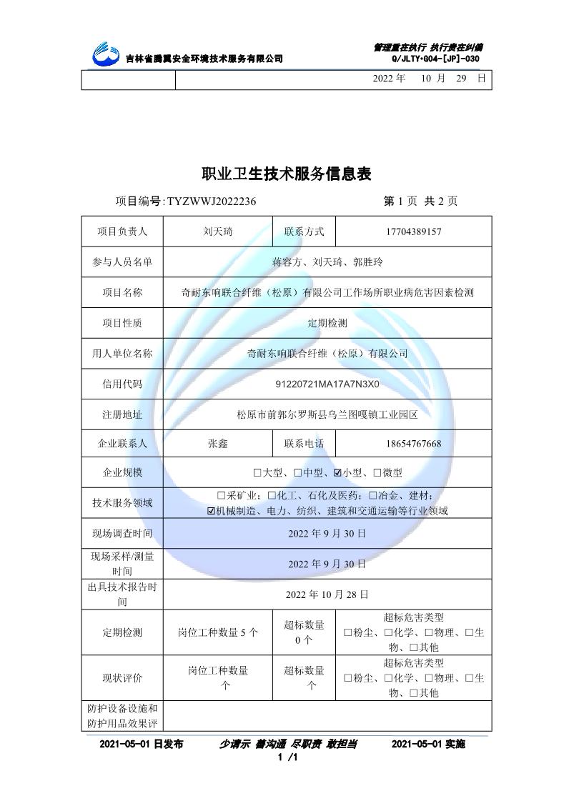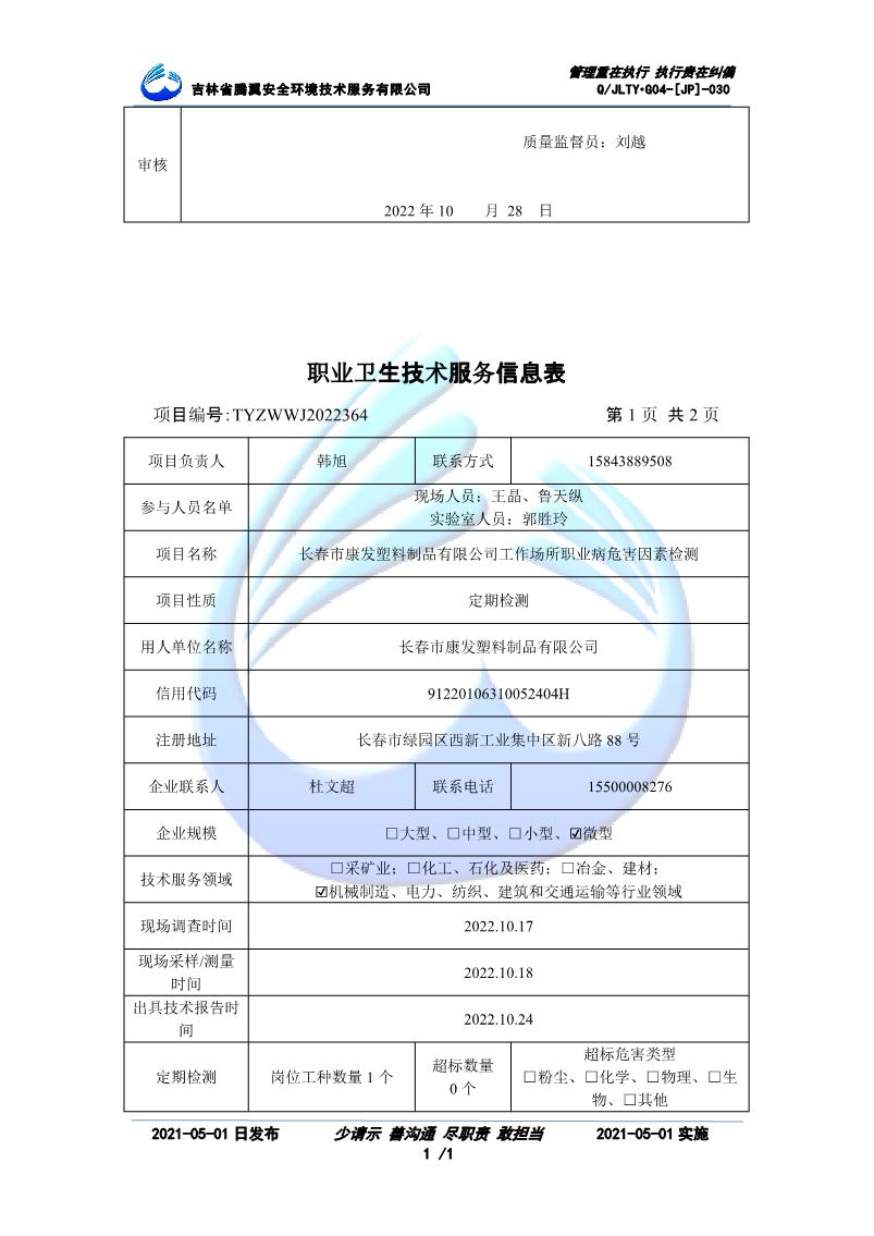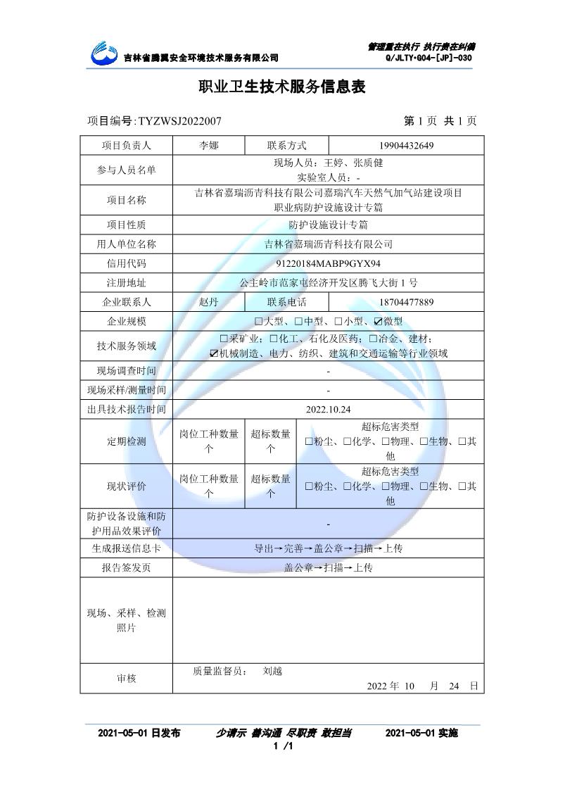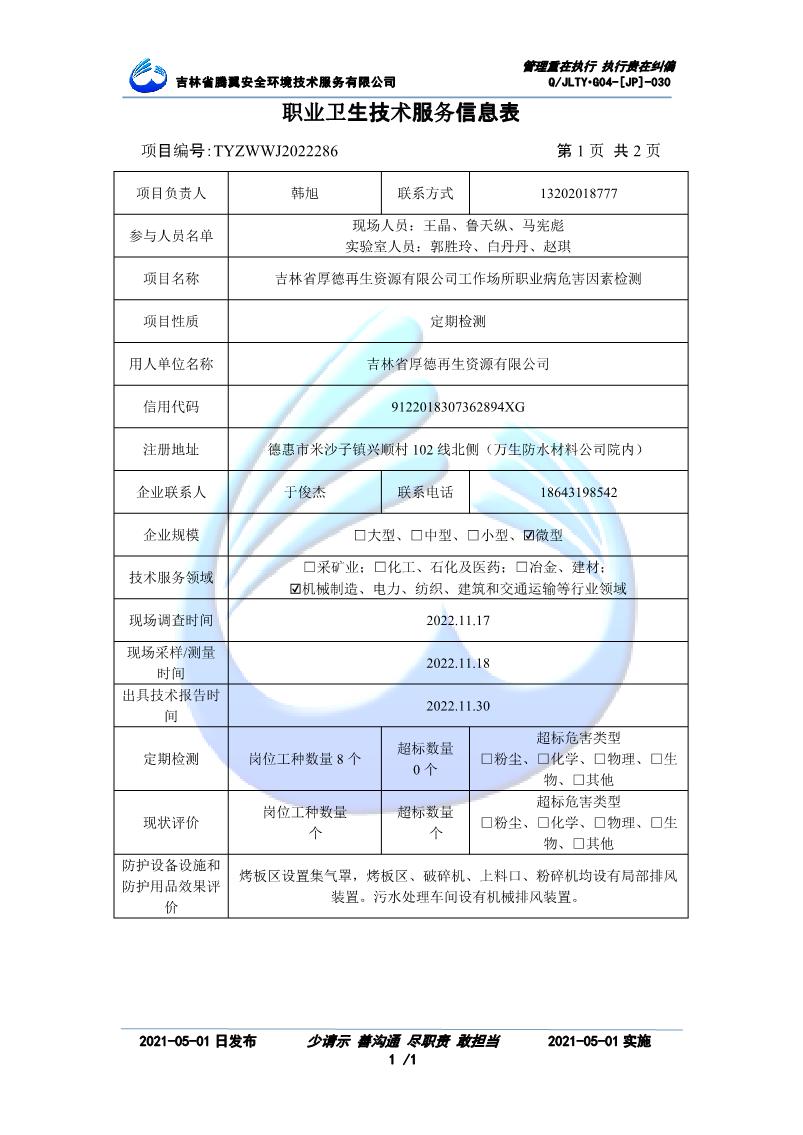 吉林省騰翼安全環(huán)境技術服務有限公司于2007年10月30日在松原市注冊成立,現總部位于長春北湖科技園,2008年6月3日取得安全評價機構乙級資質,2017年1月5日取得職業(yè)衛(wèi)生技術服務機構乙級資質,自相繼獲取安評和職評資質至2020年間,公司以打造“中國首屈一指的安全生產、職業(yè)健康、生態(tài)環(huán)保一站式綜合服務體”為發(fā)展目標。目前,公司可為各類委托方提供安全與職業(yè)衛(wèi)生評價,職業(yè)衛(wèi)生與...