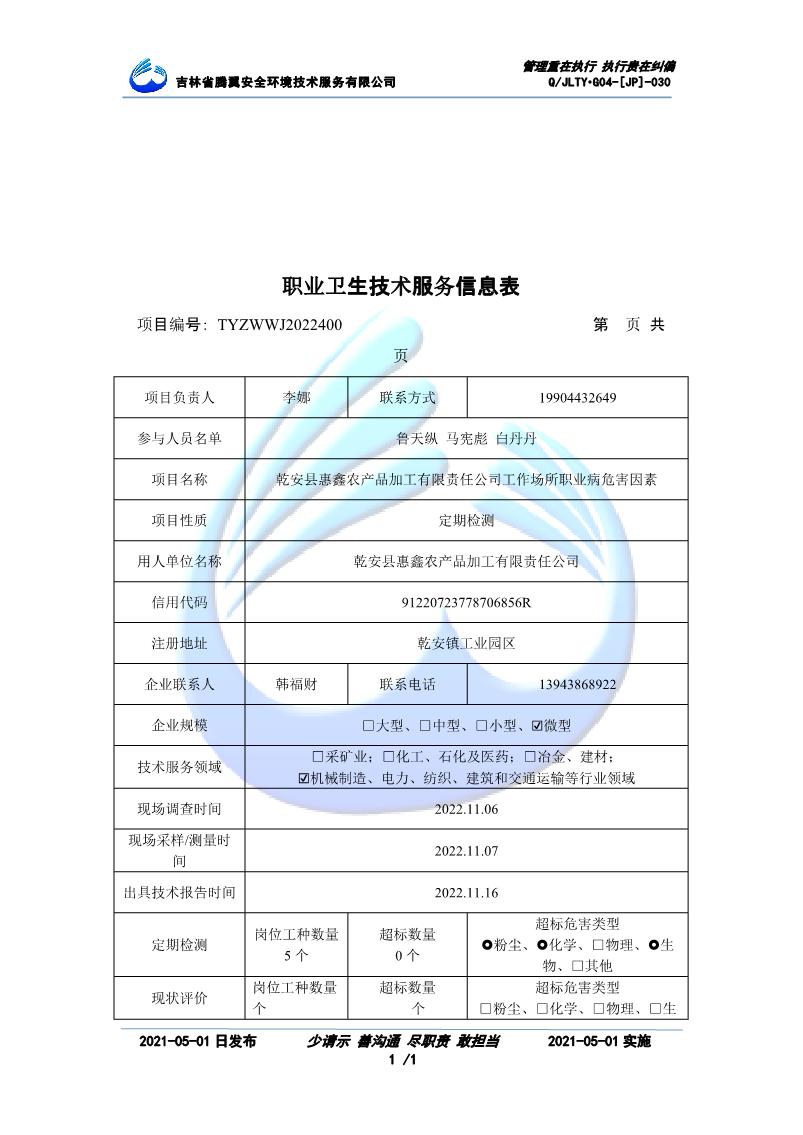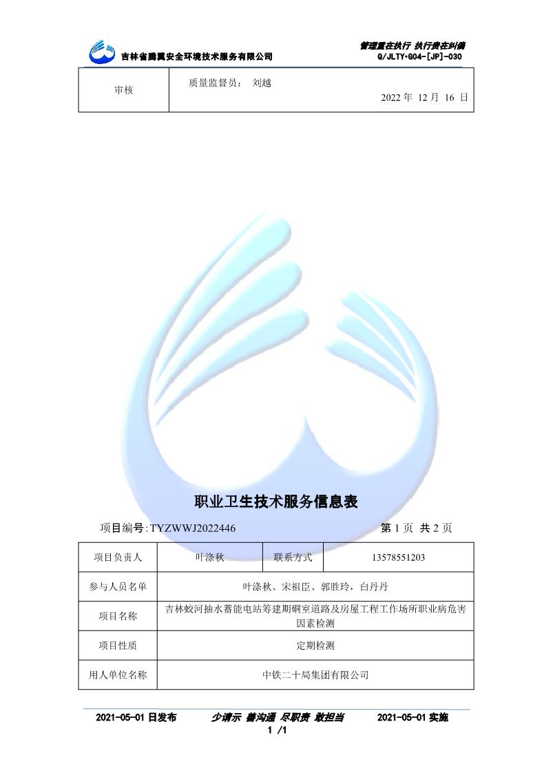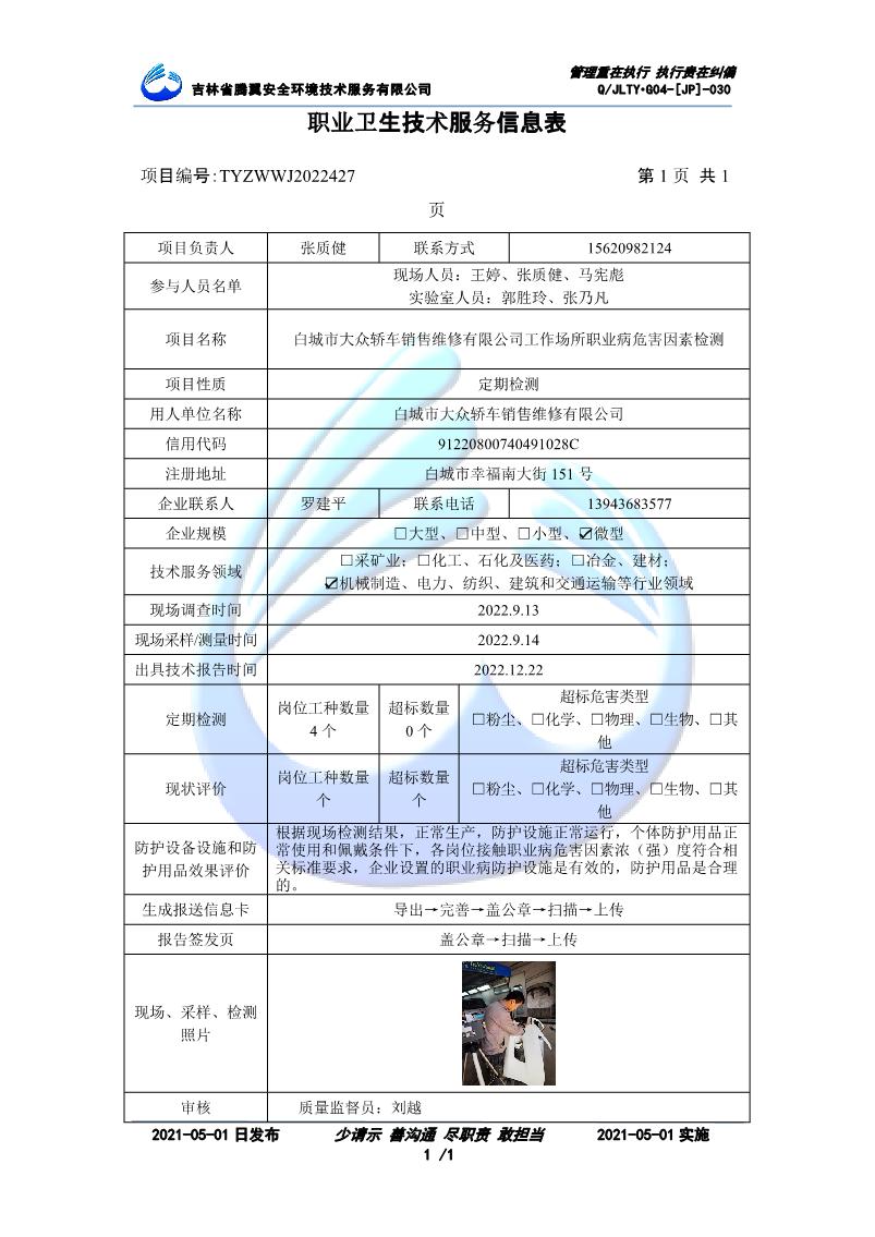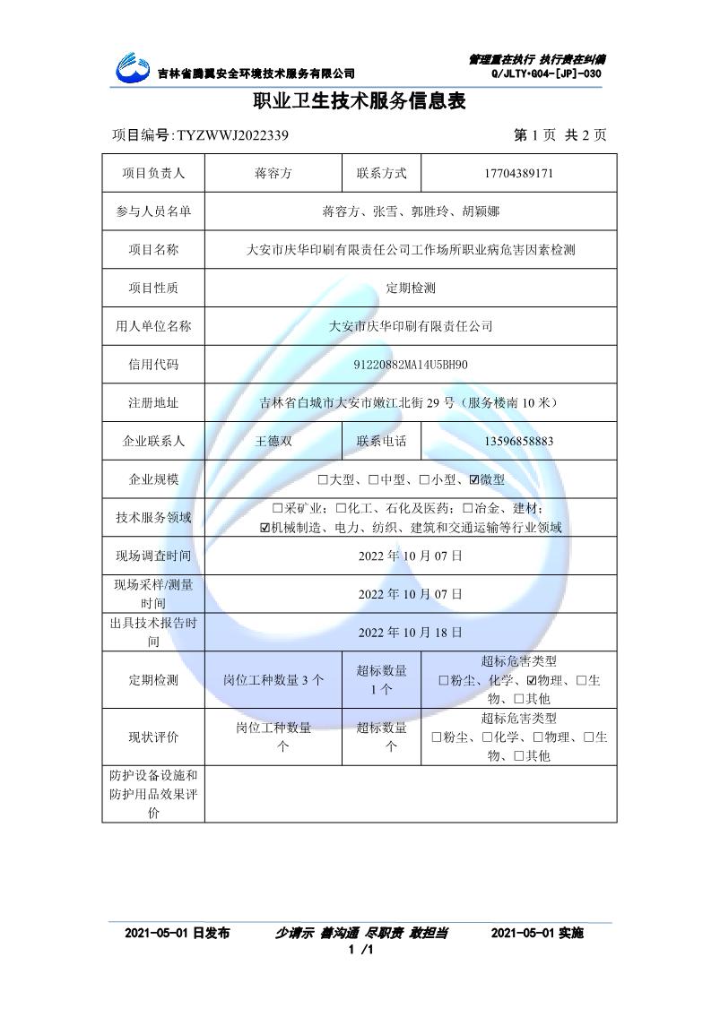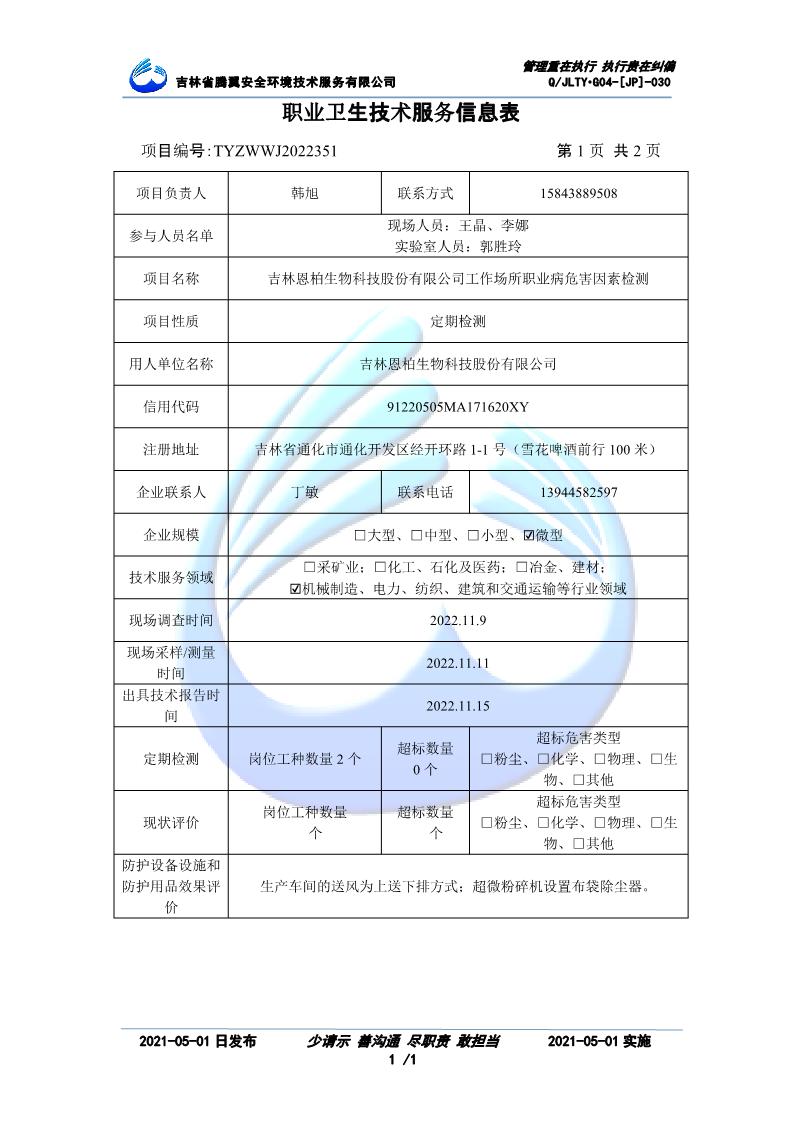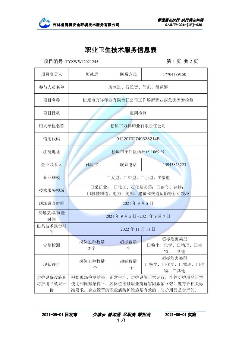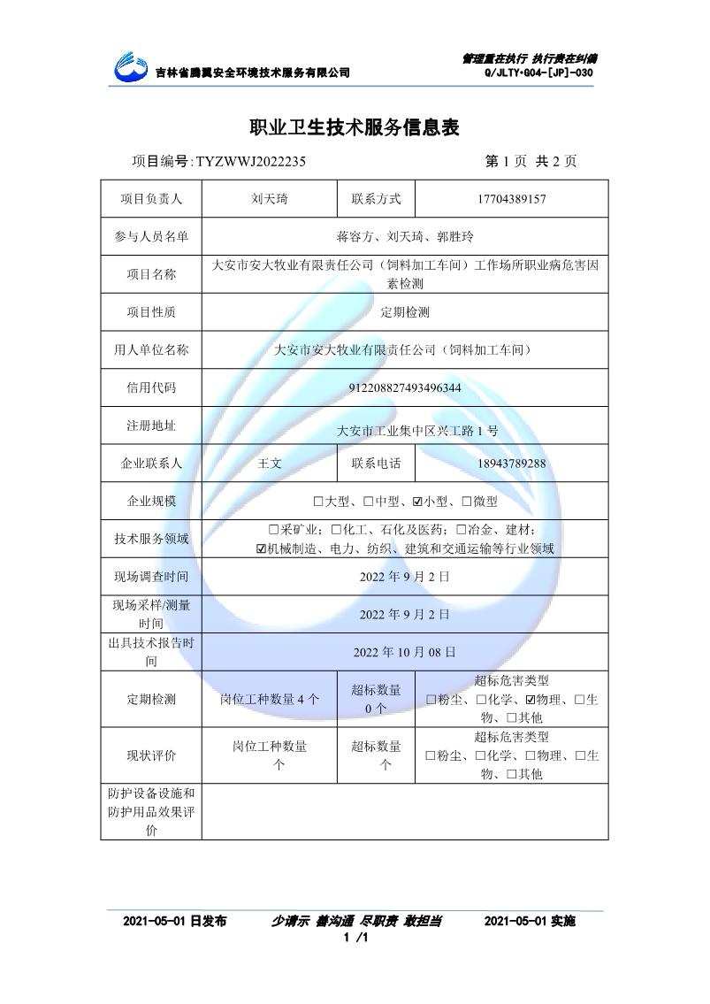 吉林省騰翼安全環(huán)境技術服務有限公司于2007年10月30日在松原市注冊成立,現總部位于長春北湖科技園,2008年6月3日取得安全評價機構乙級資質,2017年1月5日取得職業(yè)衛(wèi)生技術服務機構乙級資質,自相繼獲取安評和職評資質至2020年間,公司以打造“中國首屈一指的安全生產、職業(yè)健康、生態(tài)環(huán)保一站式綜合服務體”為發(fā)展目標。目前,公司可為各類委托方提供安全與職業(yè)衛(wèi)生評價,職業(yè)衛(wèi)生與...