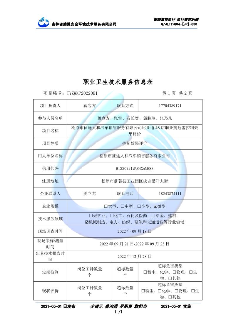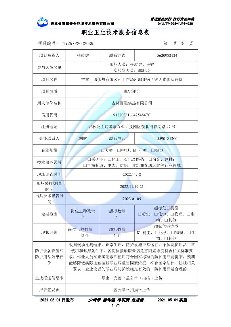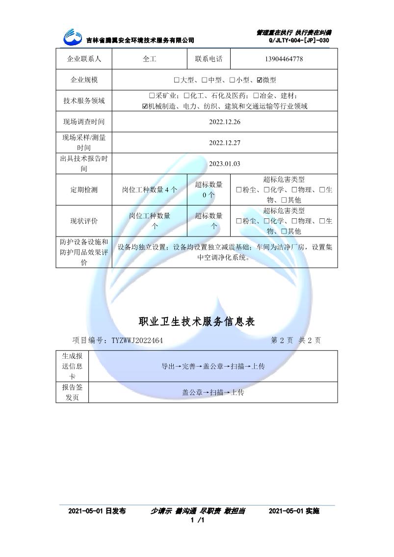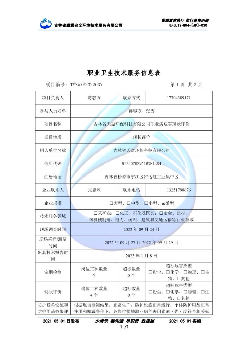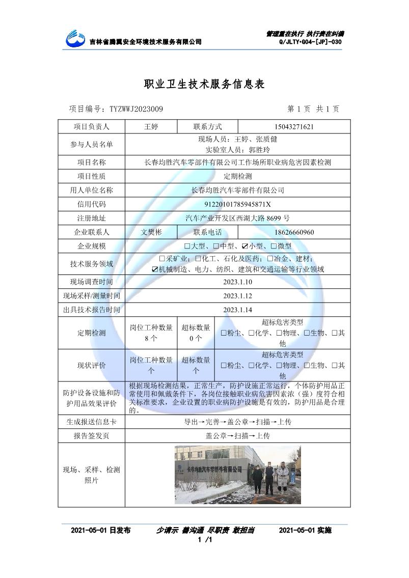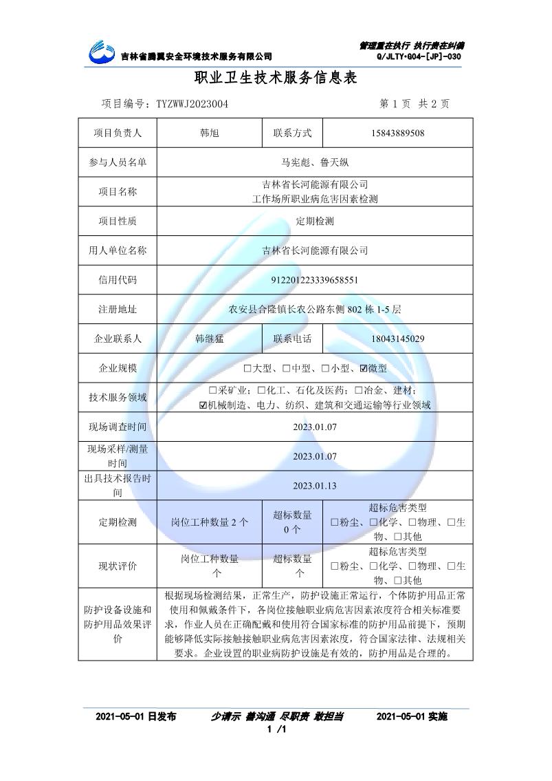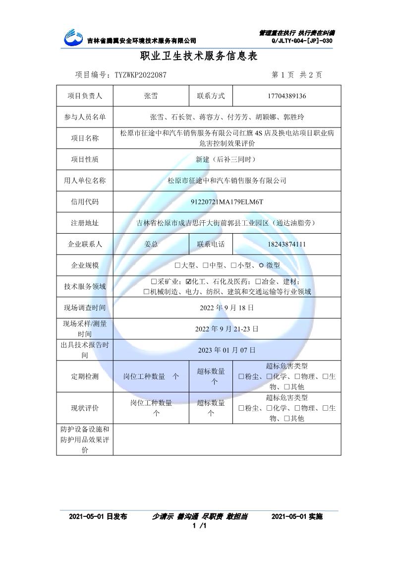 吉林省騰翼安全環(huán)境技術服務有限公司于2007年10月30日在松原市注冊成立,現總部位于長春北湖科技園,2008年6月3日取得安全評價機構乙級資質,2017年1月5日取得職業(yè)衛(wèi)生技術服務機構乙級資質,自相繼獲取安評和職評資質至2020年間,公司以打造“中國首屈一指的安全生產、職業(yè)健康、生態(tài)環(huán)保一站式綜合服務體”為發(fā)展目標。目前,公司可為各類委托方提供安全與職業(yè)衛(wèi)生評價,職業(yè)衛(wèi)生與...