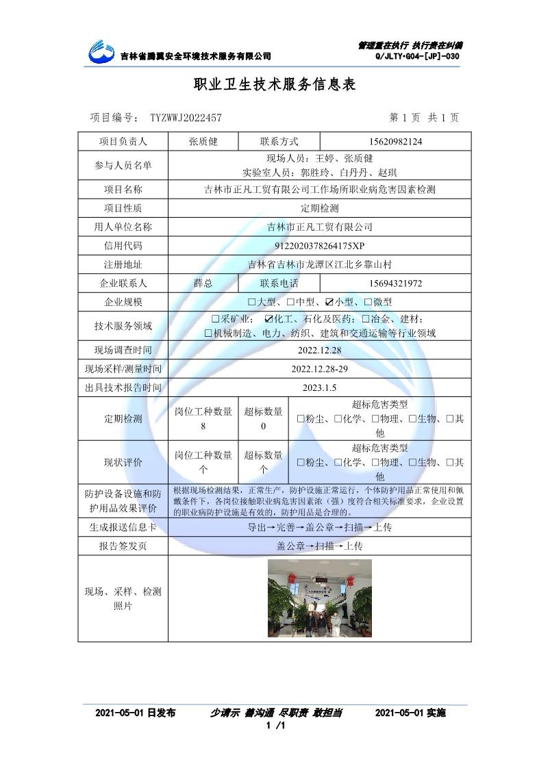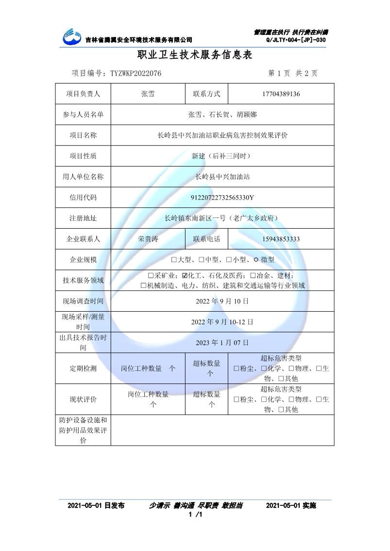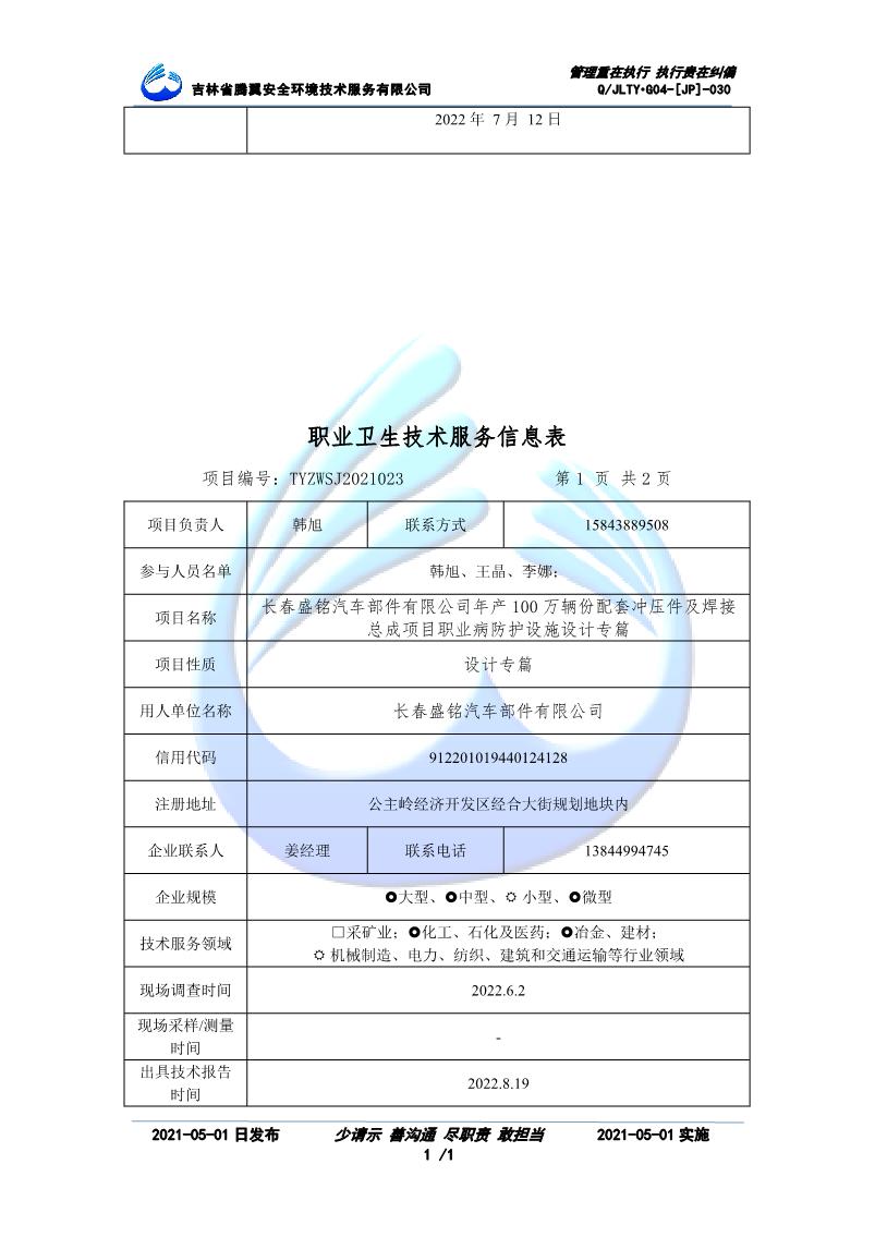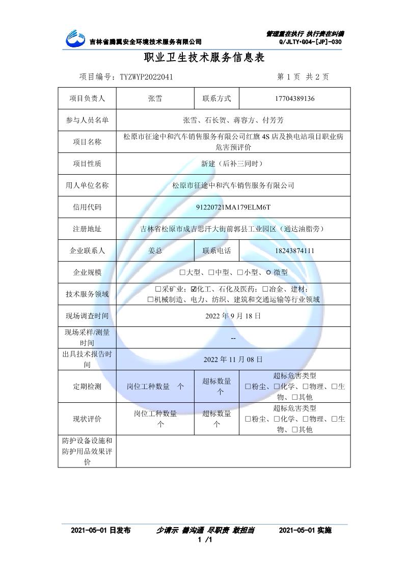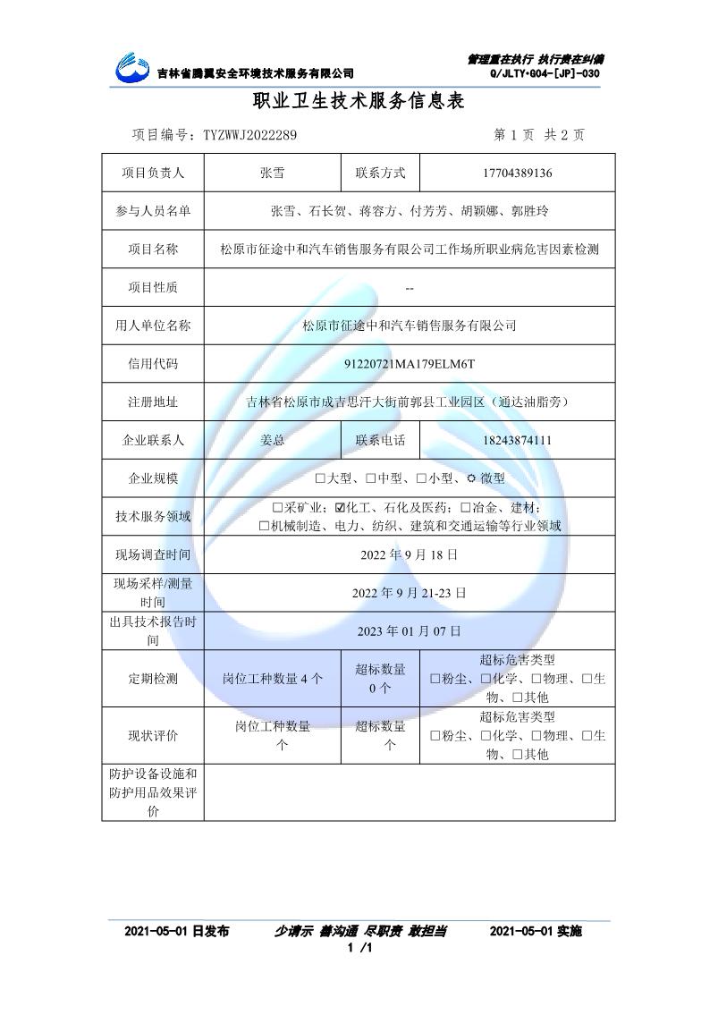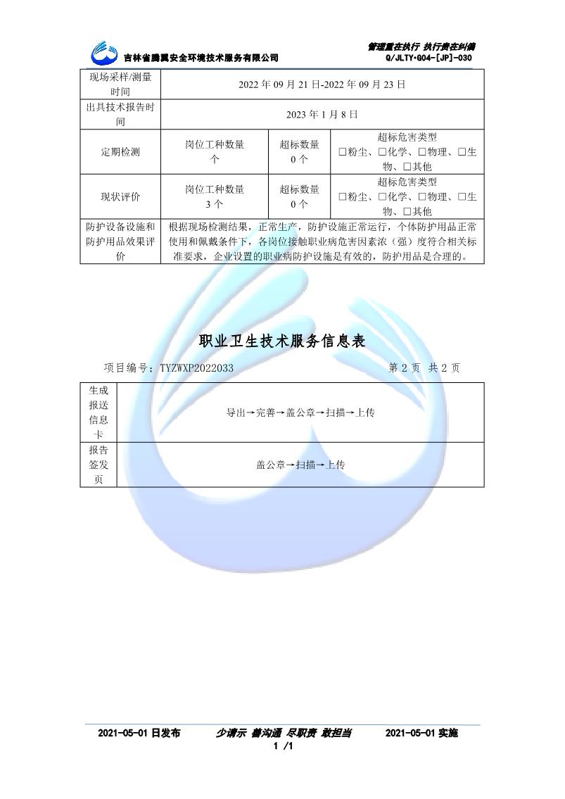 吉林省騰翼安全環(huán)境技術服務有限公司于2007年10月30日在松原市注冊成立,現總部位于長春北湖科技園,2008年6月3日取得安全評價機構乙級資質,2017年1月5日取得職業(yè)衛(wèi)生技術服務機構乙級資質,自相繼獲取安評和職評資質至2020年間,公司以打造“中國首屈一指的安全生產、職業(yè)健康、生態(tài)環(huán)保一站式綜合服務體”為發(fā)展目標。目前,公司可為各類委托方提供安全與職業(yè)衛(wèi)生評價,職業(yè)衛(wèi)生與...