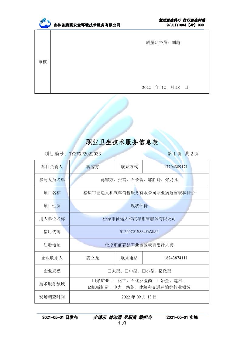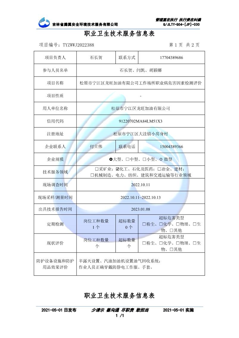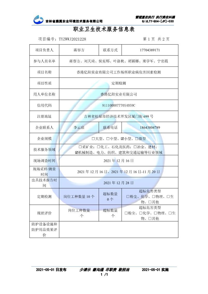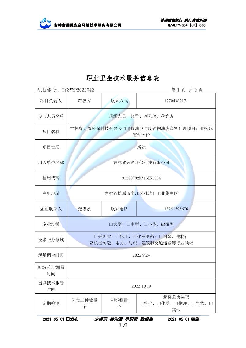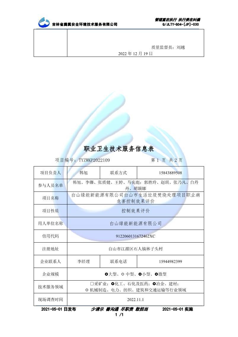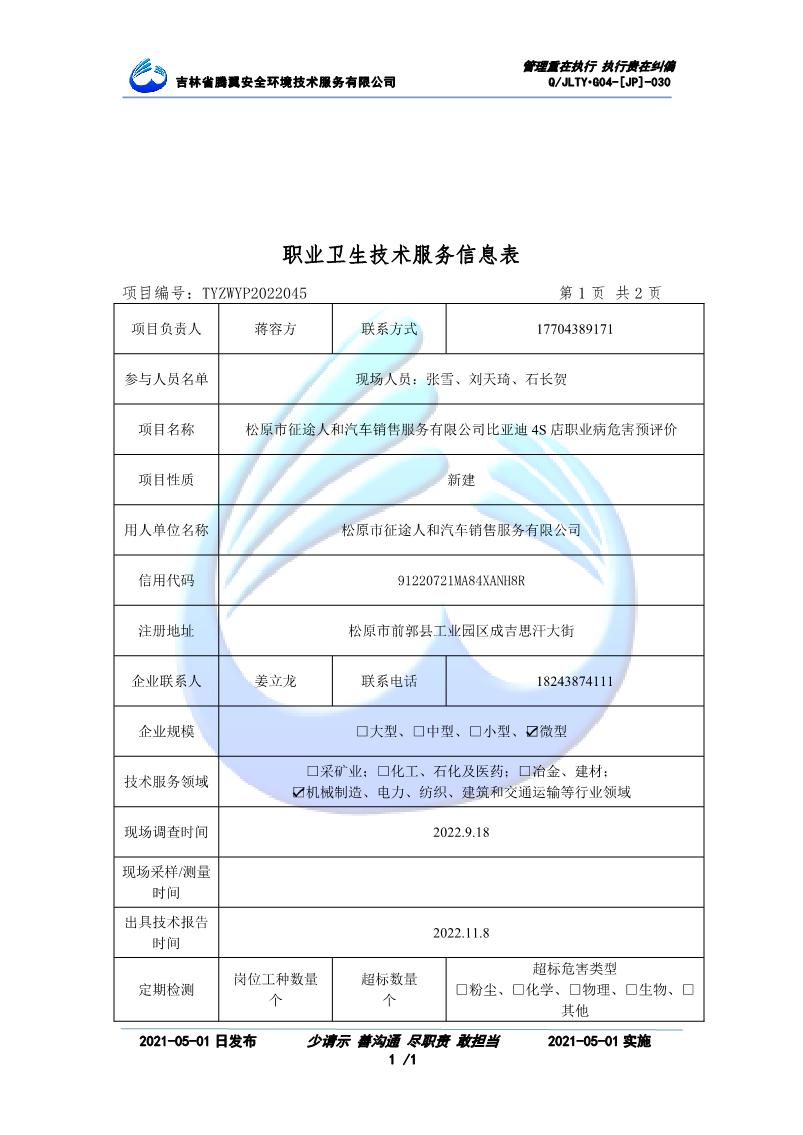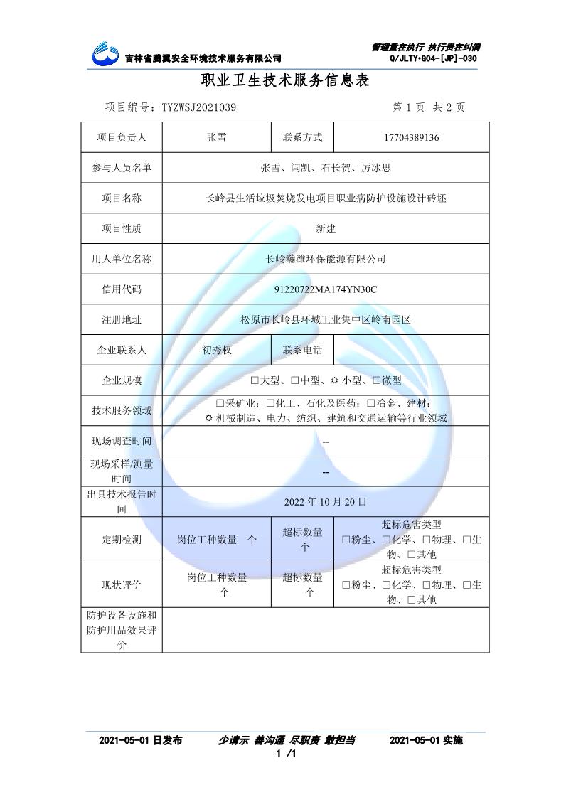 吉林省騰翼安全環(huán)境技術服務有限公司于2007年10月30日在松原市注冊成立,現總部位于長春北湖科技園,2008年6月3日取得安全評價機構乙級資質,2017年1月5日取得職業(yè)衛(wèi)生技術服務機構乙級資質,自相繼獲取安評和職評資質至2020年間,公司以打造“中國首屈一指的安全生產、職業(yè)健康、生態(tài)環(huán)保一站式綜合服務體”為發(fā)展目標。目前,公司可為各類委托方提供安全與職業(yè)衛(wèi)生評價,職業(yè)衛(wèi)生與...