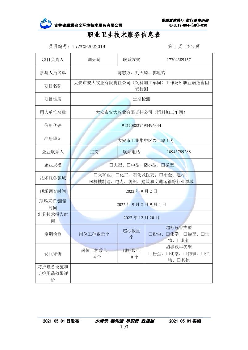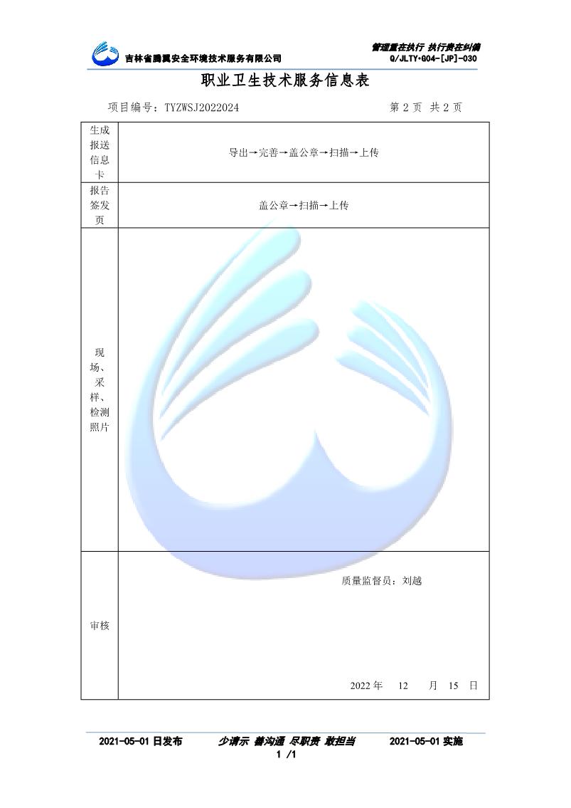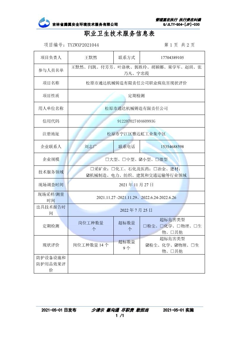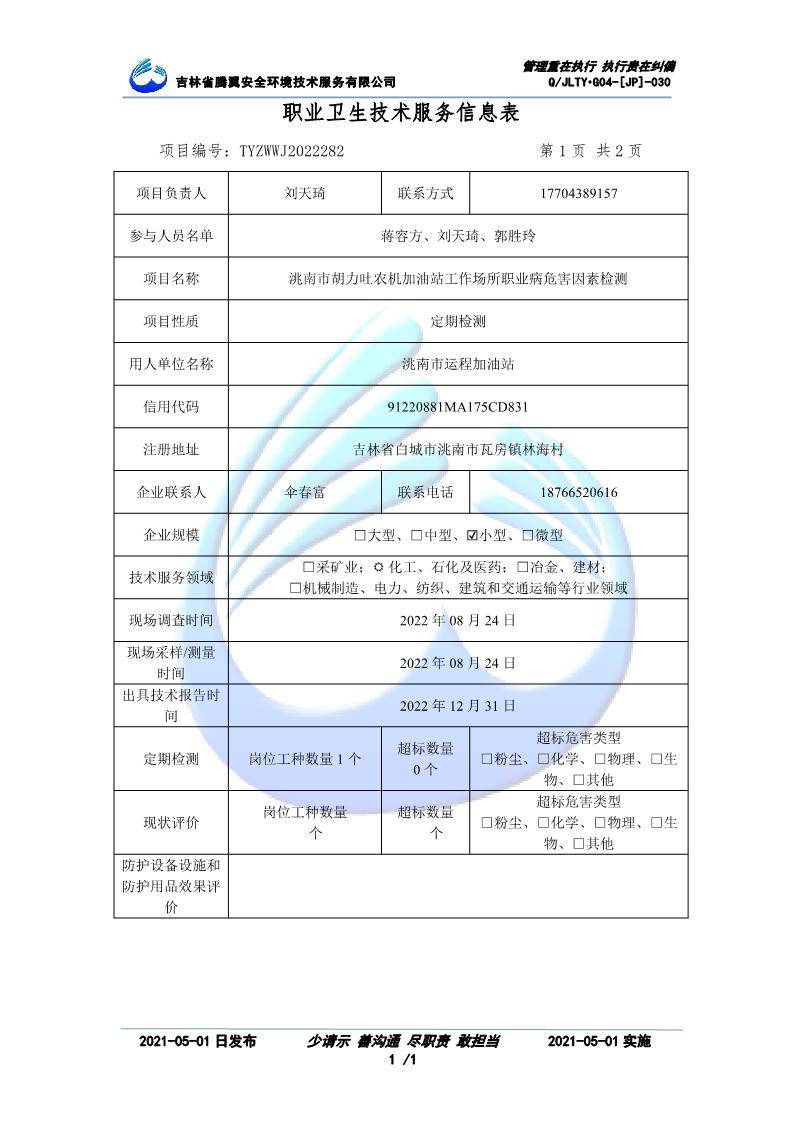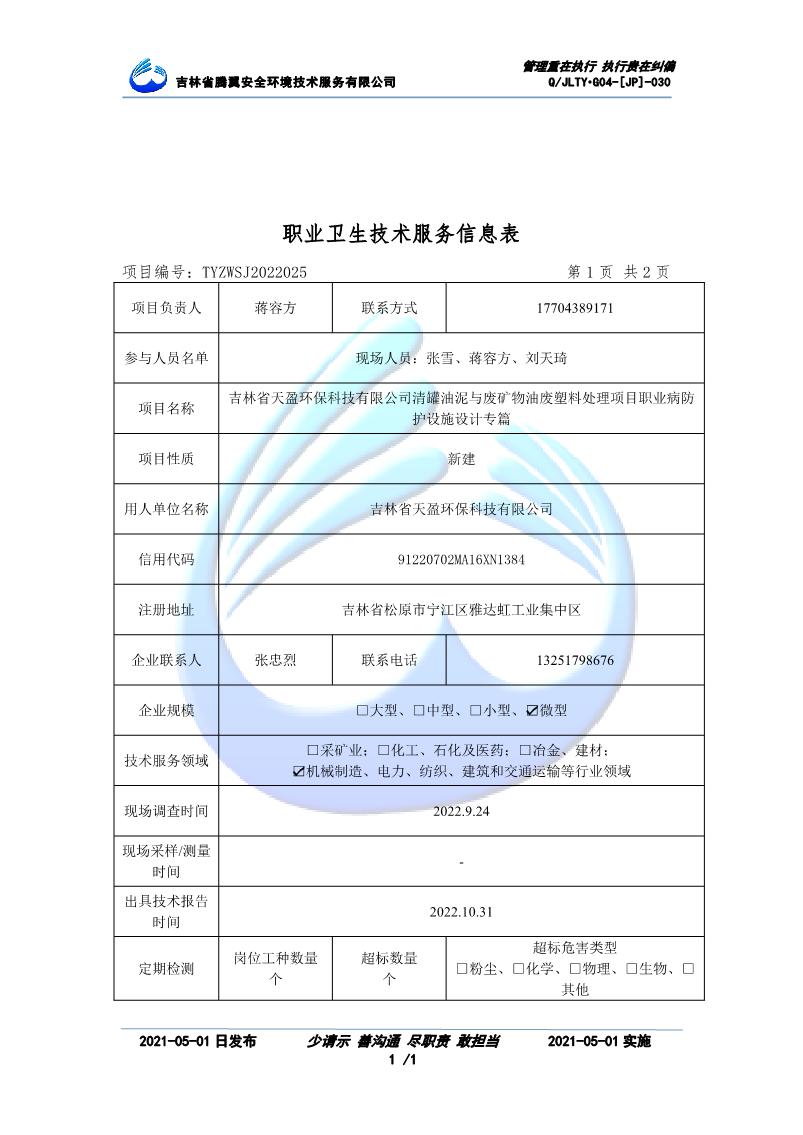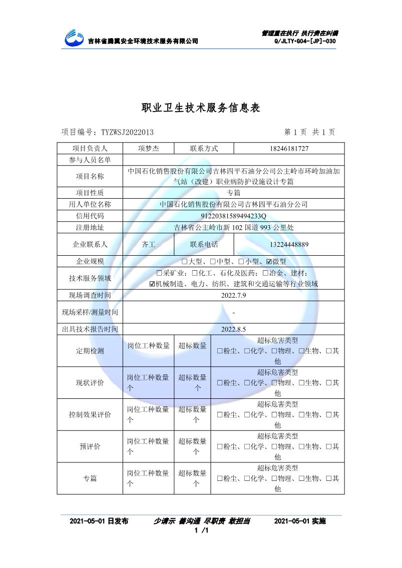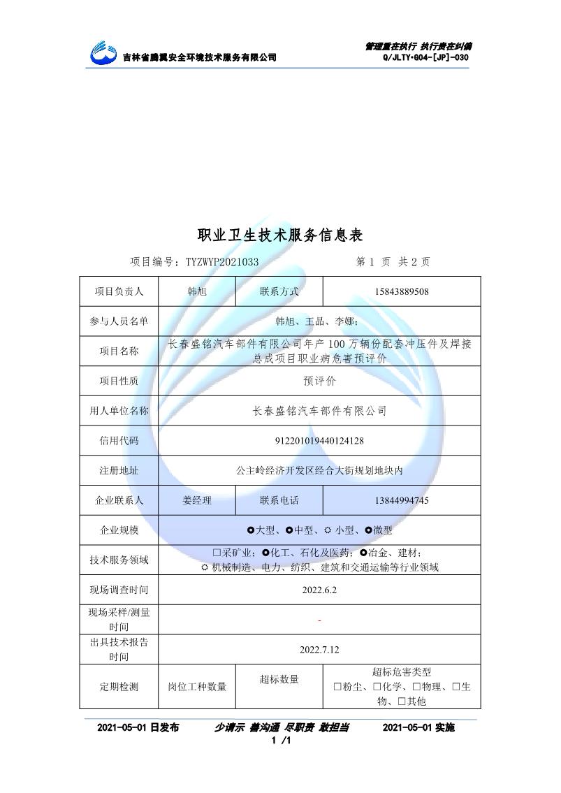 吉林省騰翼安全環(huán)境技術服務有限公司于2007年10月30日在松原市注冊成立,現總部位于長春北湖科技園,2008年6月3日取得安全評價機構乙級資質,2017年1月5日取得職業(yè)衛(wèi)生技術服務機構乙級資質,自相繼獲取安評和職評資質至2020年間,公司以打造“中國首屈一指的安全生產、職業(yè)健康、生態(tài)環(huán)保一站式綜合服務體”為發(fā)展目標。目前,公司可為各類委托方提供安全與職業(yè)衛(wèi)生評價,職業(yè)衛(wèi)生與...