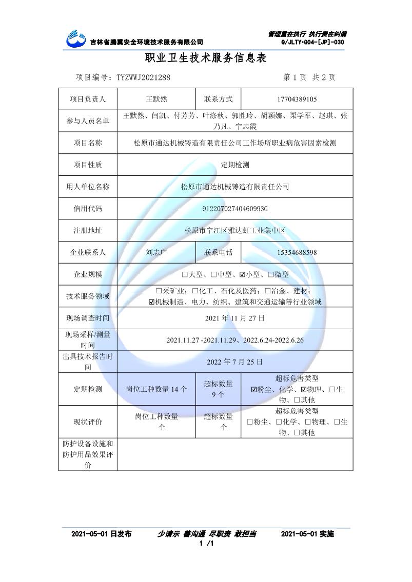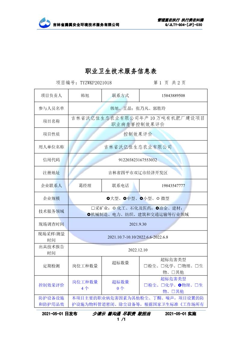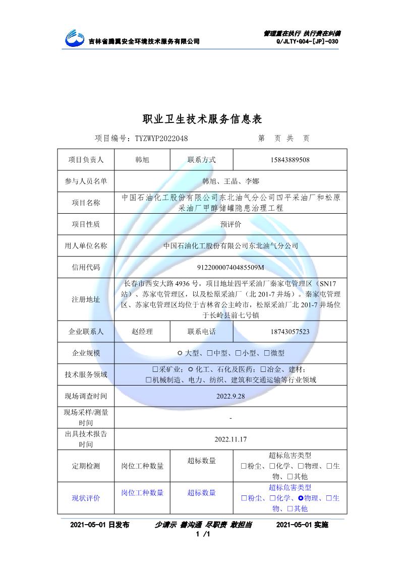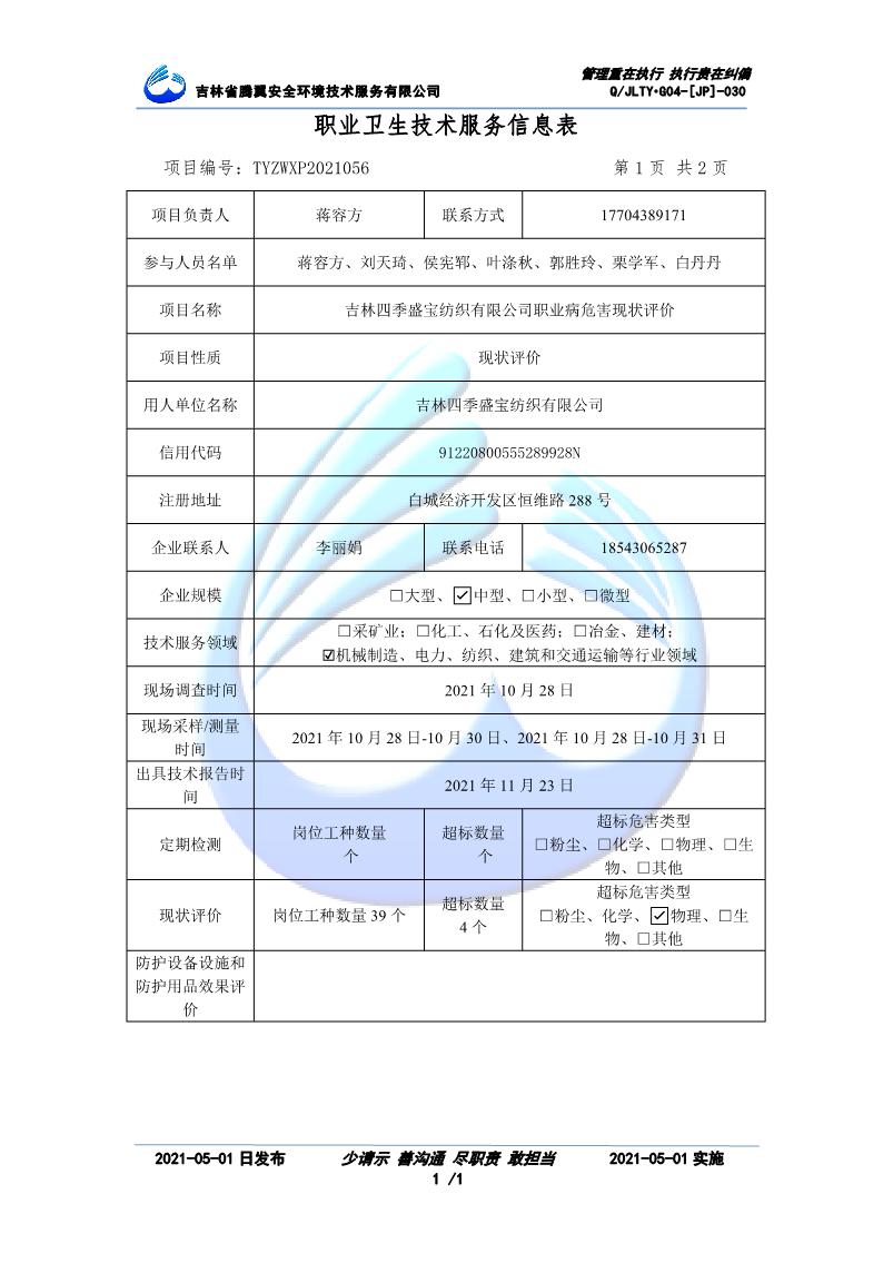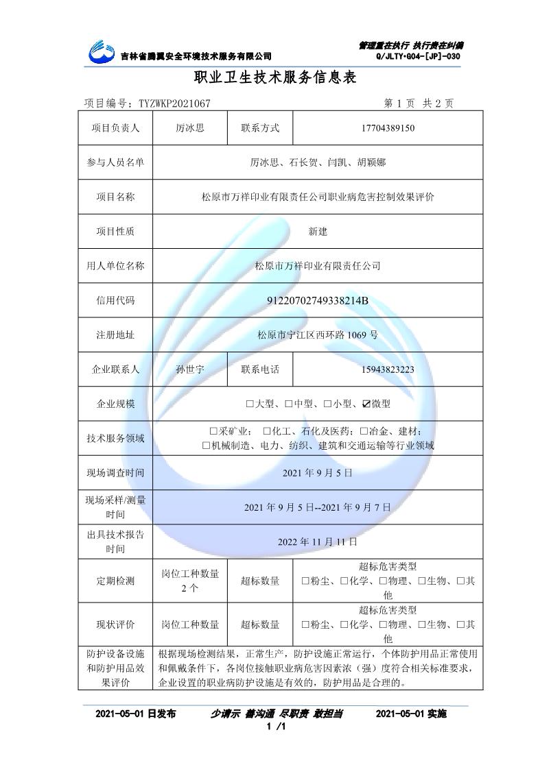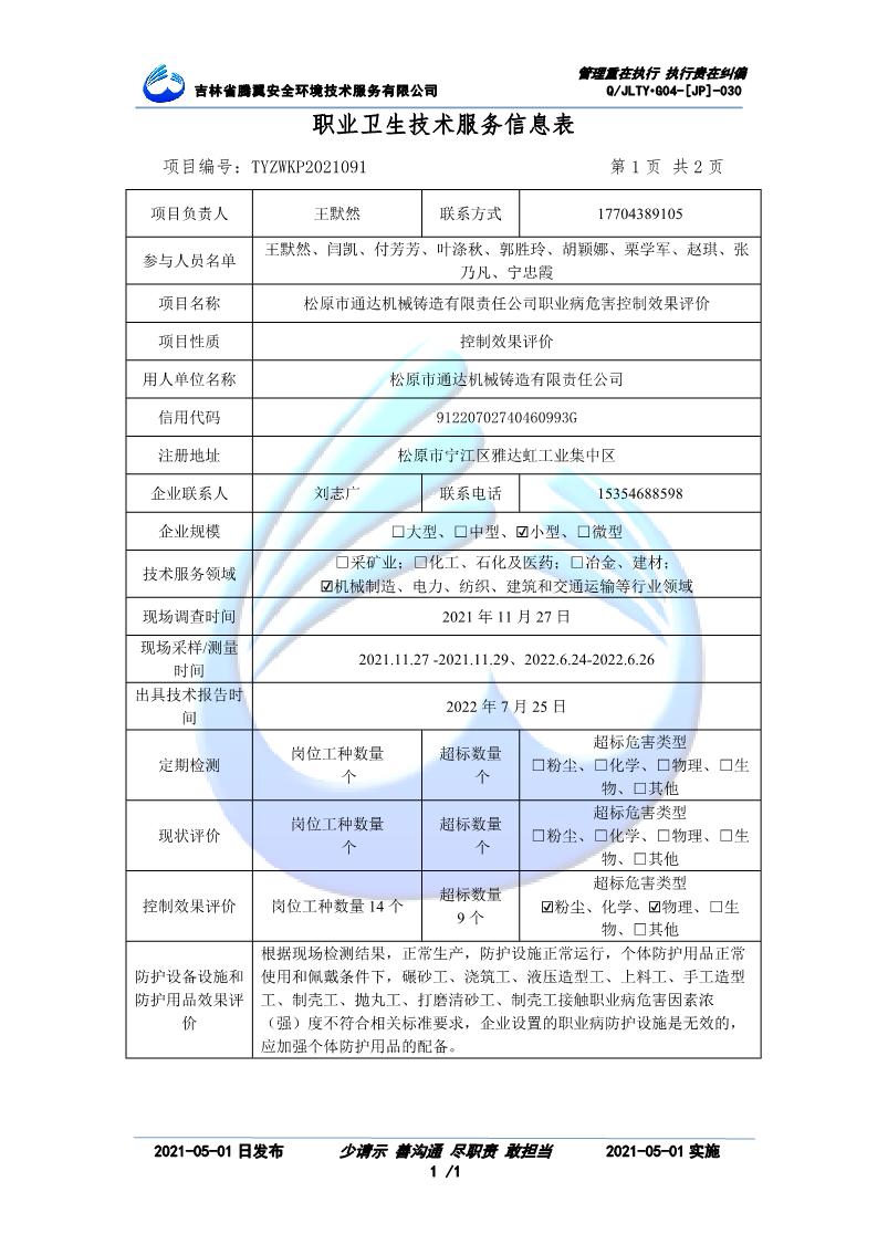 吉林省騰翼安全環(huán)境技術服務有限公司于2007年10月30日在松原市注冊成立,現總部位于長春北湖科技園,2008年6月3日取得安全評價機構乙級資質,2017年1月5日取得職業(yè)衛(wèi)生技術服務機構乙級資質,自相繼獲取安評和職評資質至2020年間,公司以打造“中國首屈一指的安全生產、職業(yè)健康、生態(tài)環(huán)保一站式綜合服務體”為發(fā)展目標。目前,公司可為各類委托方提供安全與職業(yè)衛(wèi)生評價,職業(yè)衛(wèi)生與...