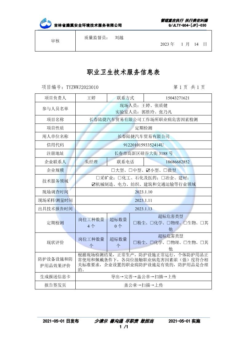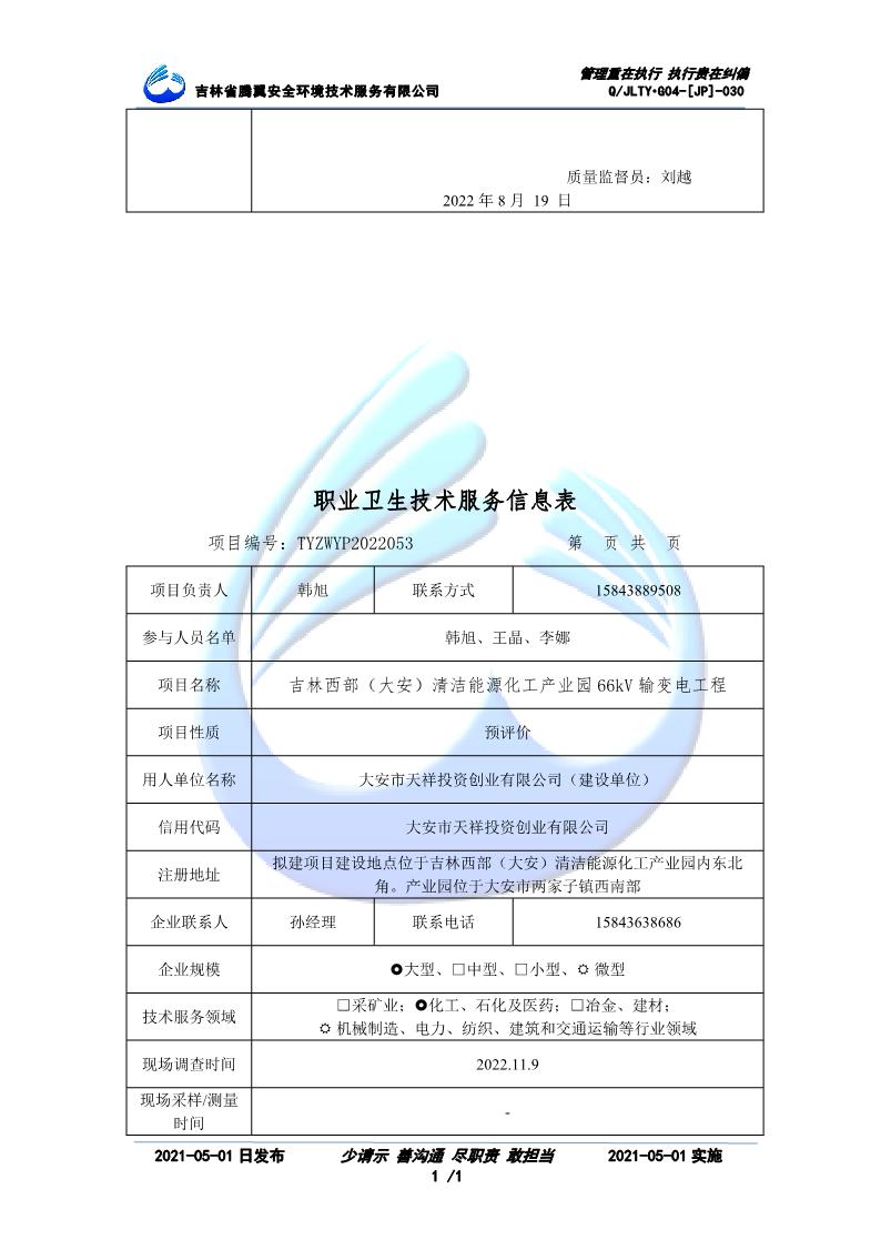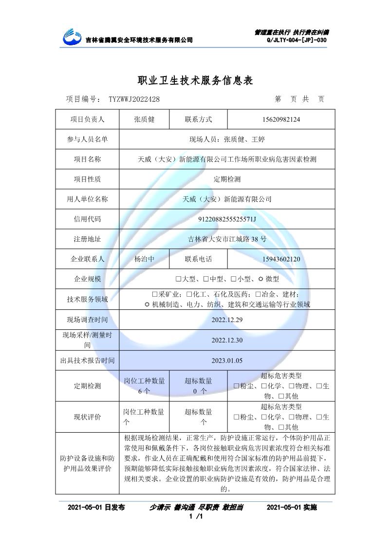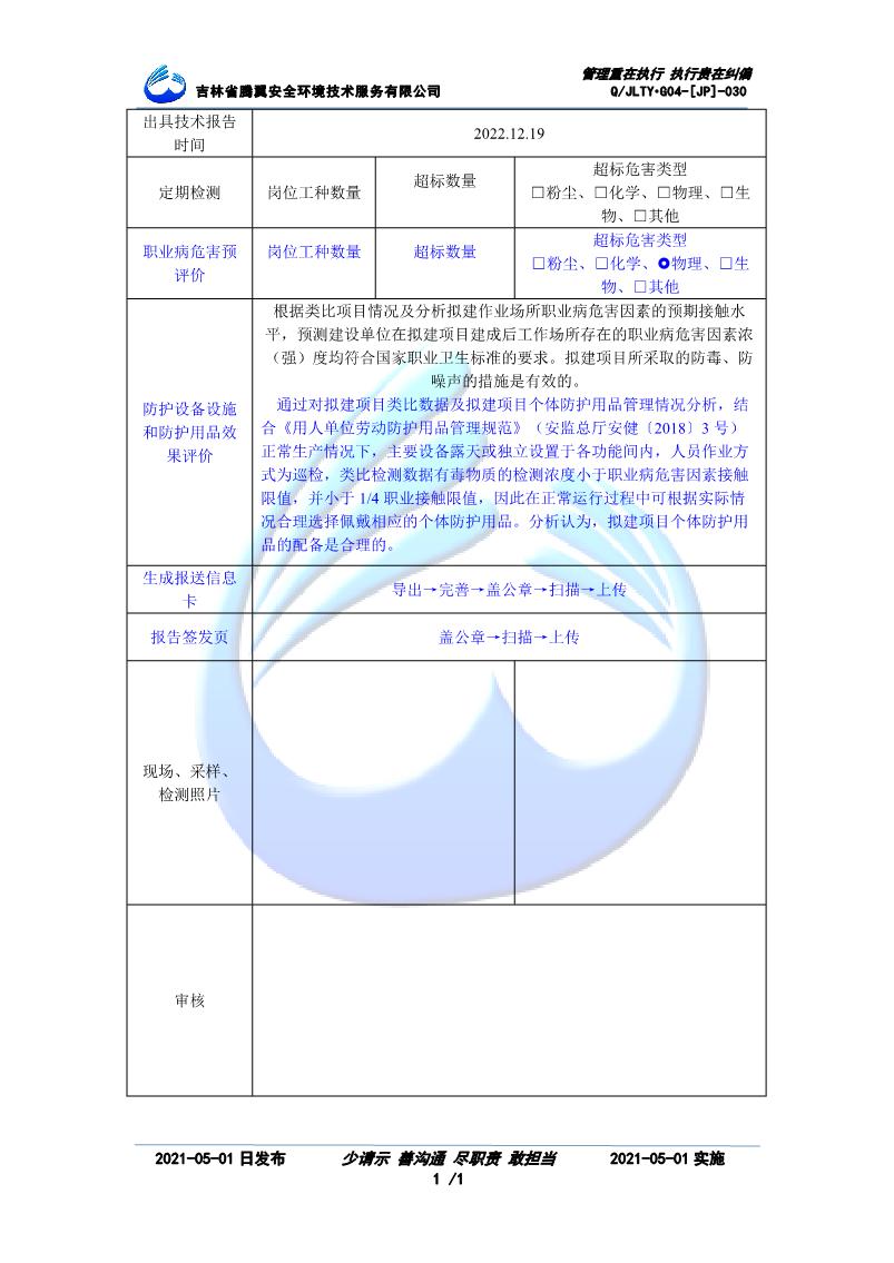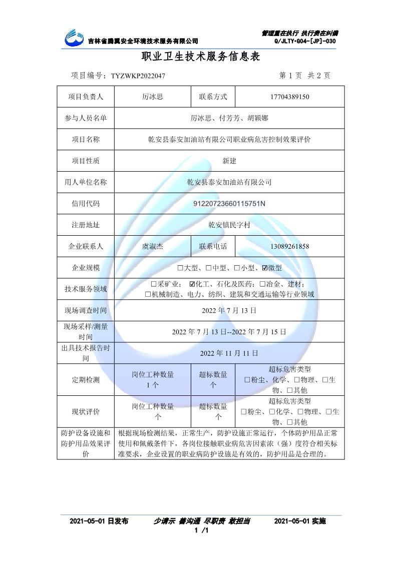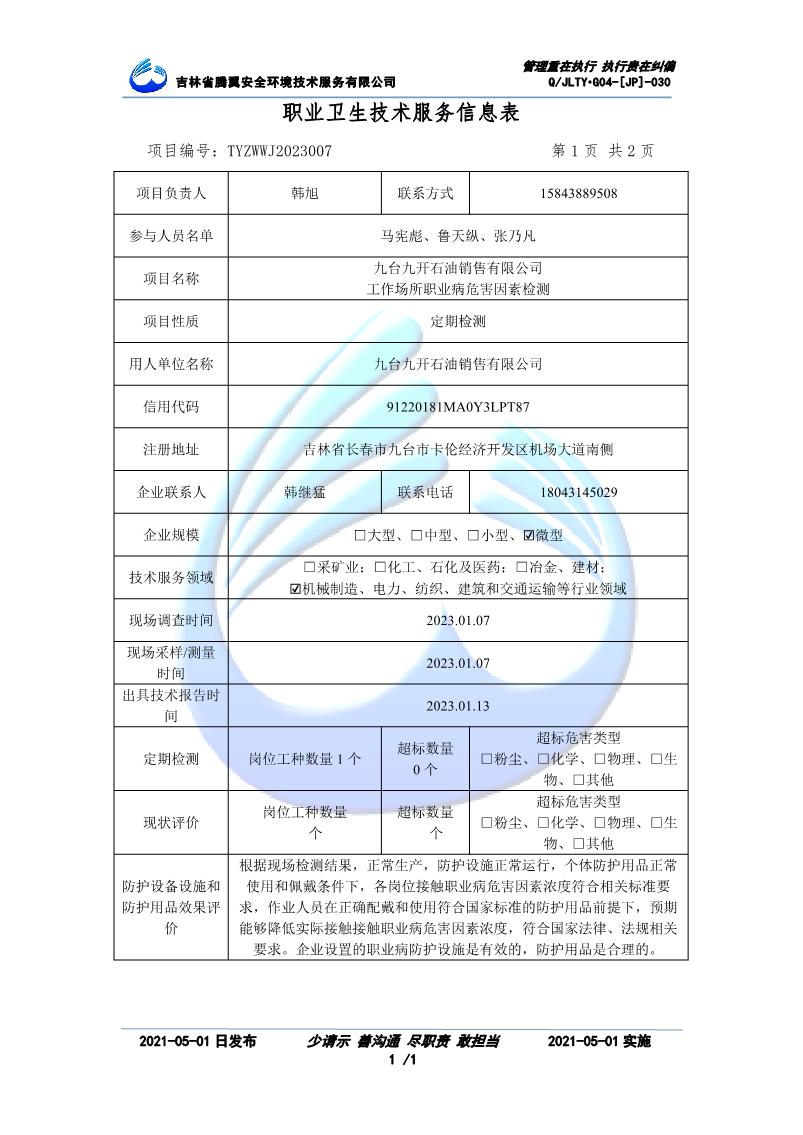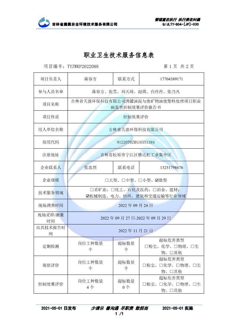吉林省騰翼安全環(huán)境技術服務有限公司于2007年10月30日在松原市注冊成立,現總部位于長春北湖科技園,2008年6月3日取得安全評價機構乙級資質,2017年1月5日取得職業(yè)衛(wèi)生技術服務機構乙級資質,自相繼獲取安評和職評資質至2020年間,公司以打造“中國首屈一指的安全生產、職業(yè)健康、生態(tài)環(huán)保一站式綜合服務體”為發(fā)展目標。目前,公司可為各類委托方提供安全與職業(yè)衛(wèi)生評價,職業(yè)衛(wèi)生與...