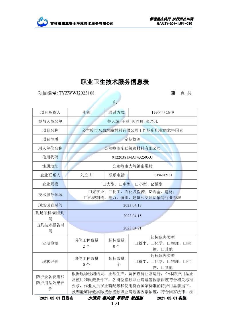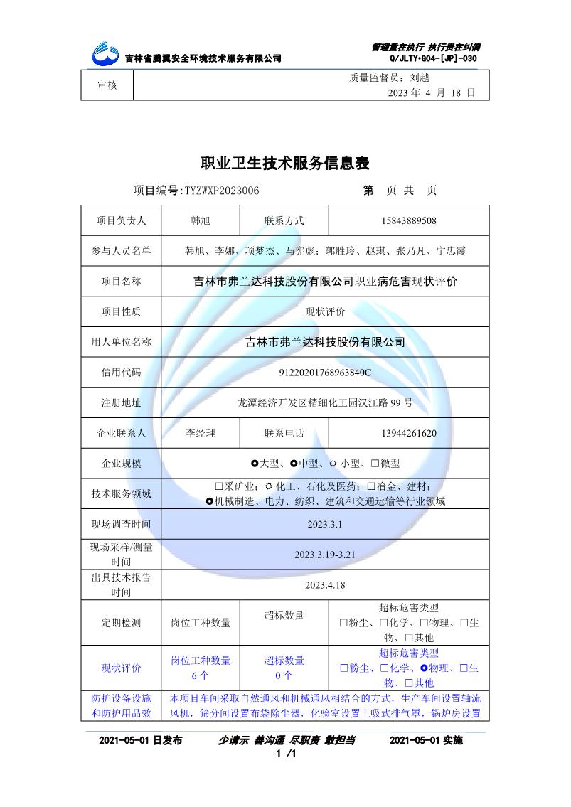 吉林省騰翼安全環(huán)境技術(shù)服務(wù)有限公司于2007年10月30日在松原市注冊成立,現(xiàn)總部位于長春北湖科技園,2008年6月3日取得安全評價機(jī)構(gòu)乙級資質(zhì),2017年1月5日取得職業(yè)衛(wèi)生技術(shù)服務(wù)機(jī)構(gòu)乙級資質(zhì),自相繼獲取安評和職評資質(zhì)至2020年間,公司以打造“中國首屈一指的安全生產(chǎn)、職業(yè)健康、生態(tài)環(huán)保一站式綜合服務(wù)體”為發(fā)展目標(biāo)。目前,公司可為各類委托方提供安全與職業(yè)衛(wèi)生評價,職業(yè)衛(wèi)生與...