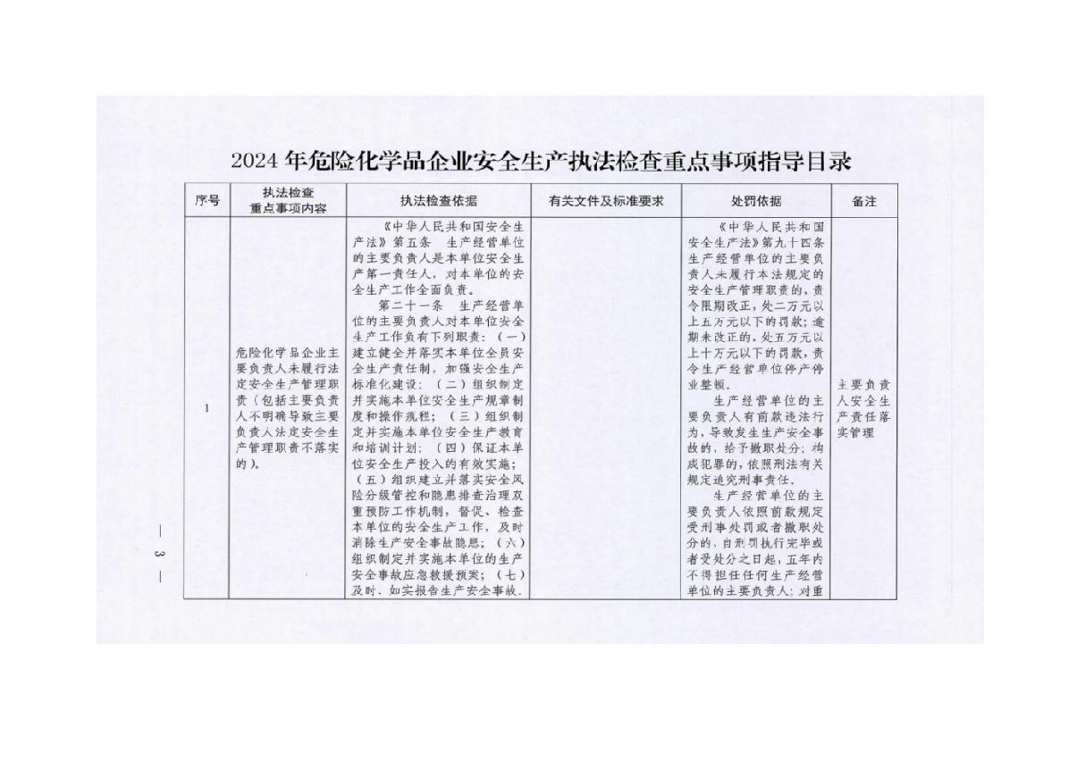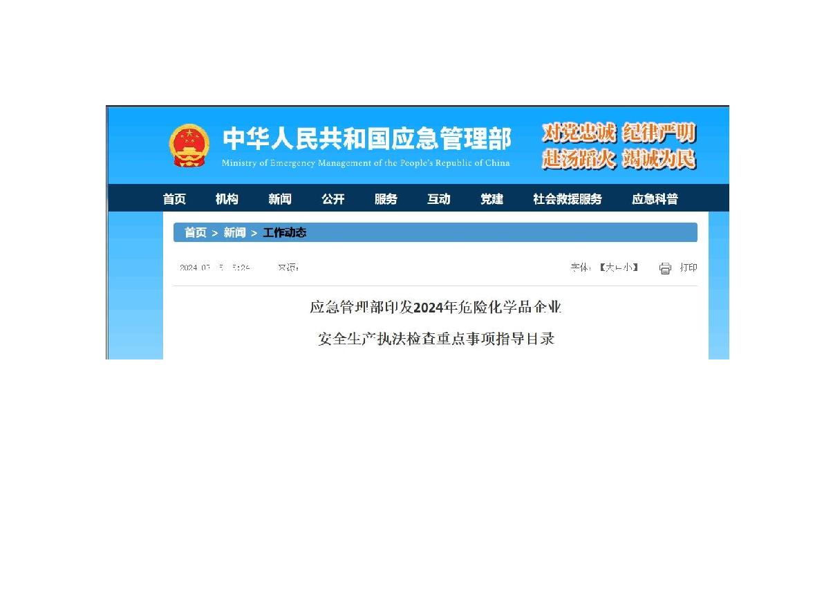 應(yīng)急管理部近日印發(fā)《2024年危險化學(xué)品企業(yè)安全生產(chǎn)執(zhí)法檢查重點事項指導(dǎo)目錄》
